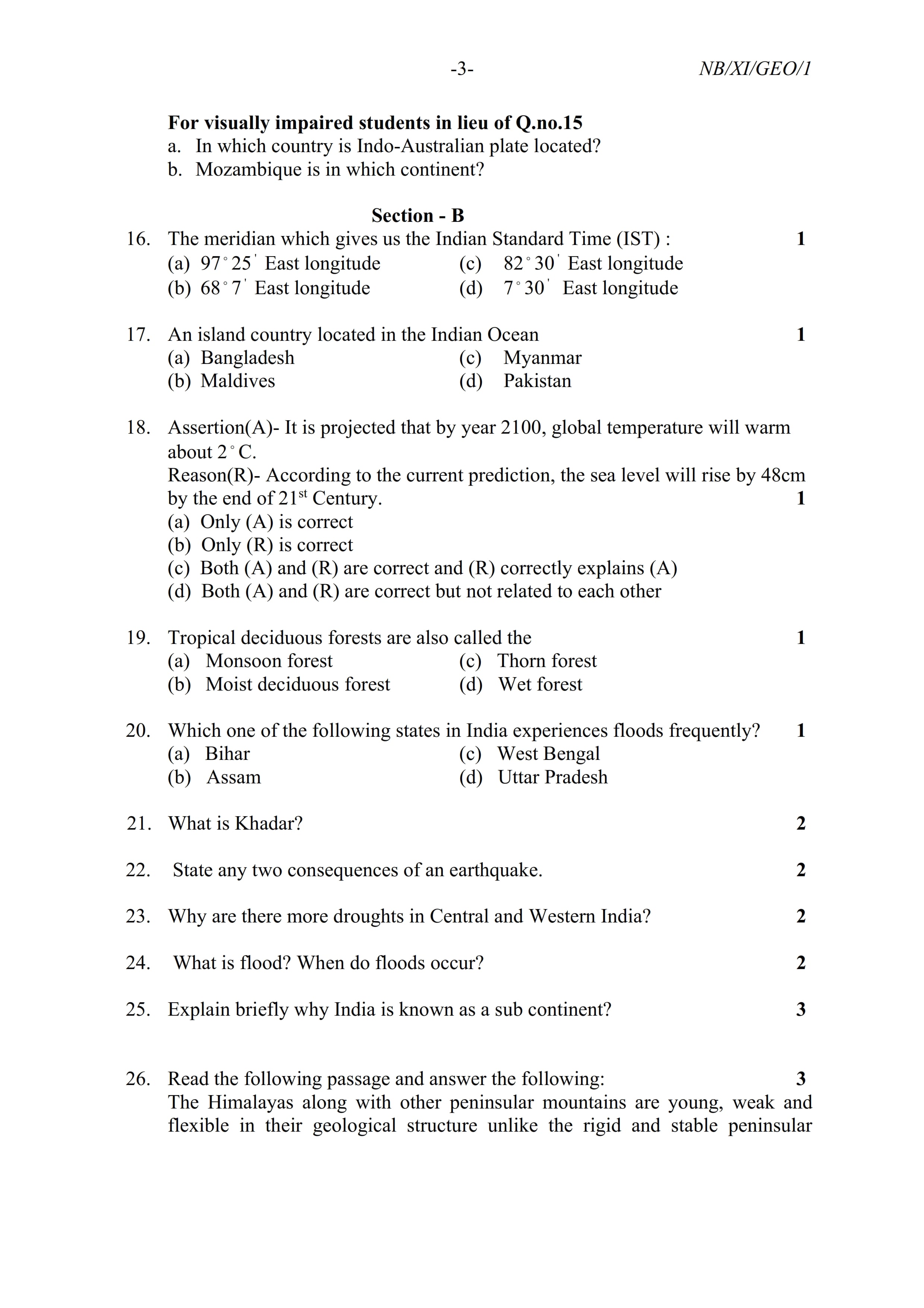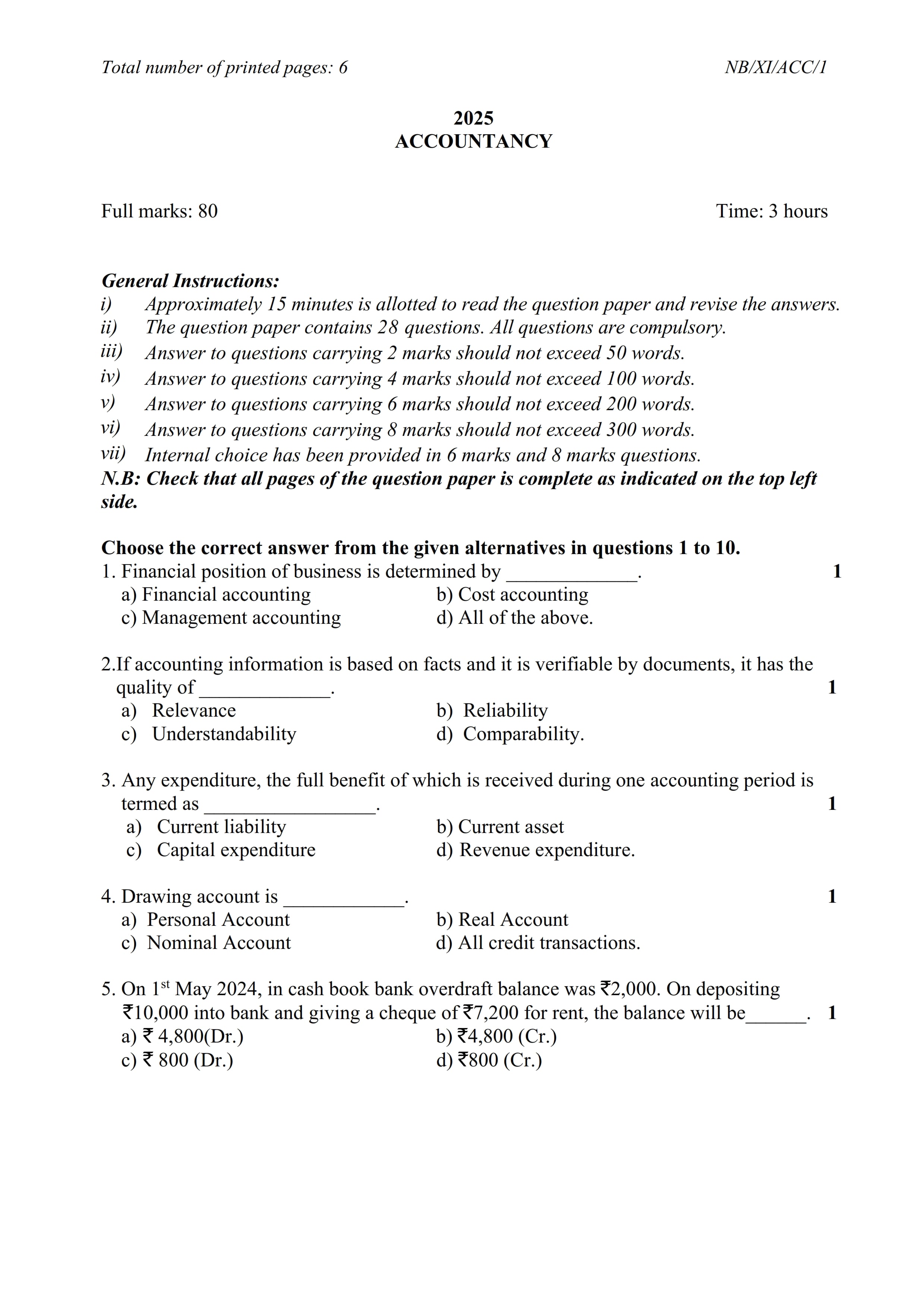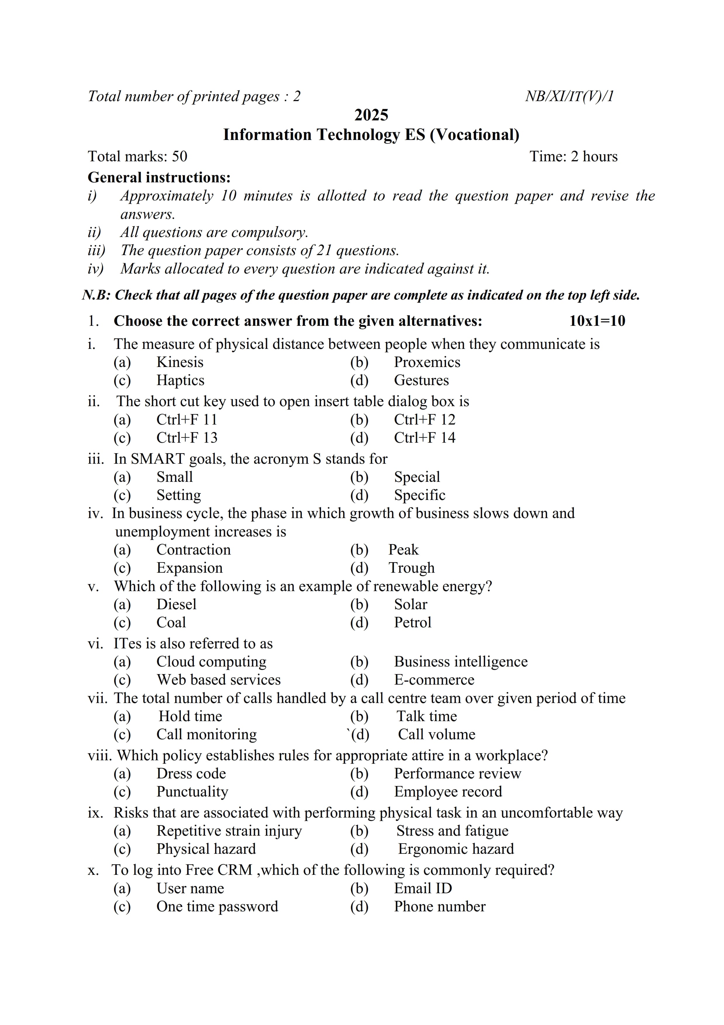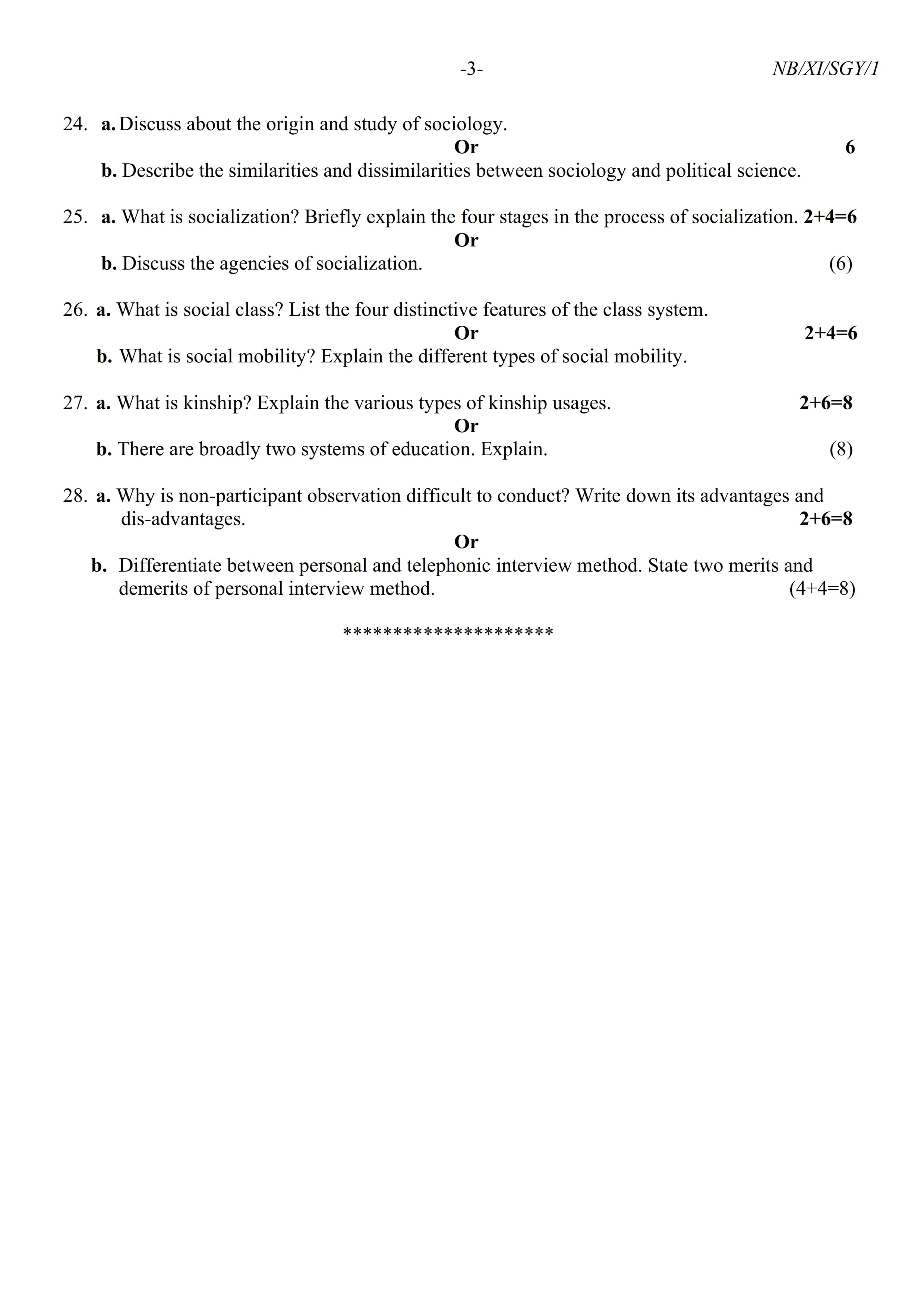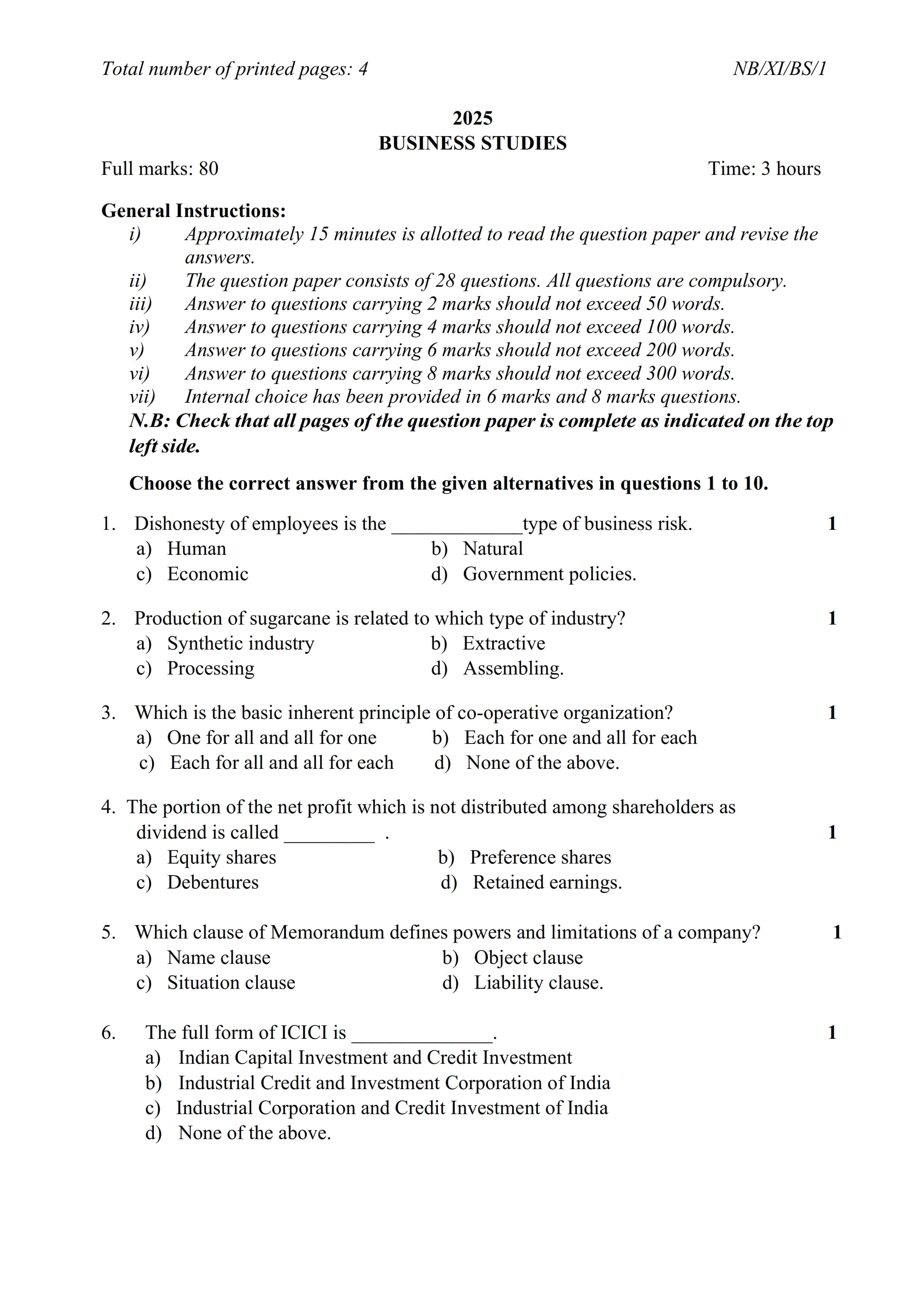 - NBSE Class 11 Question Paper