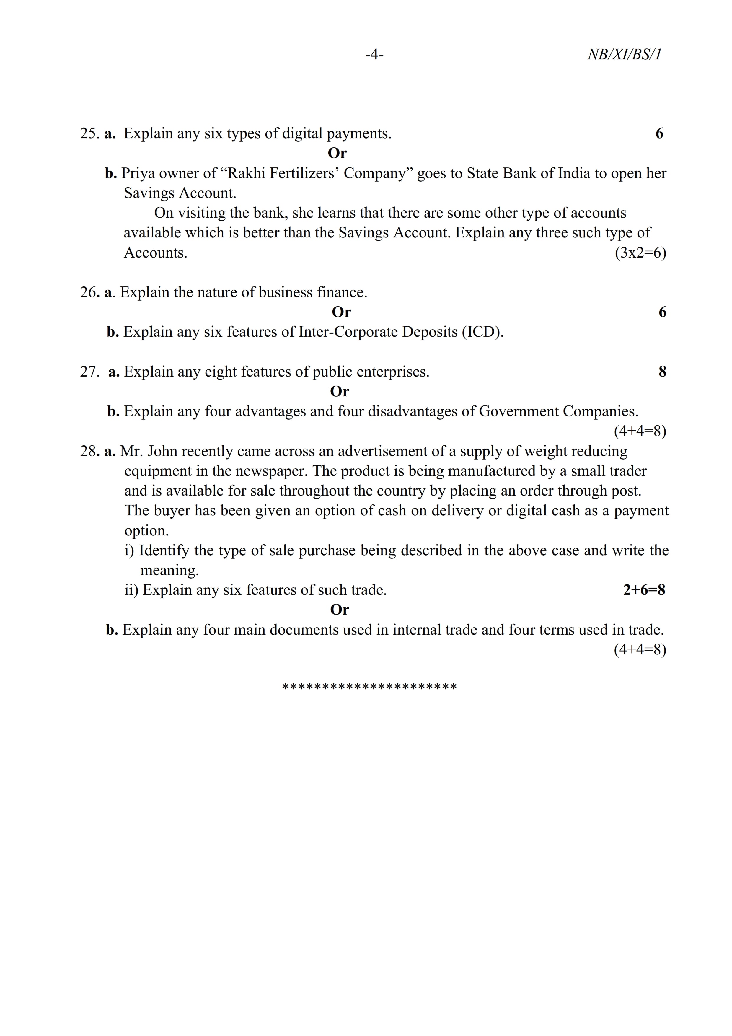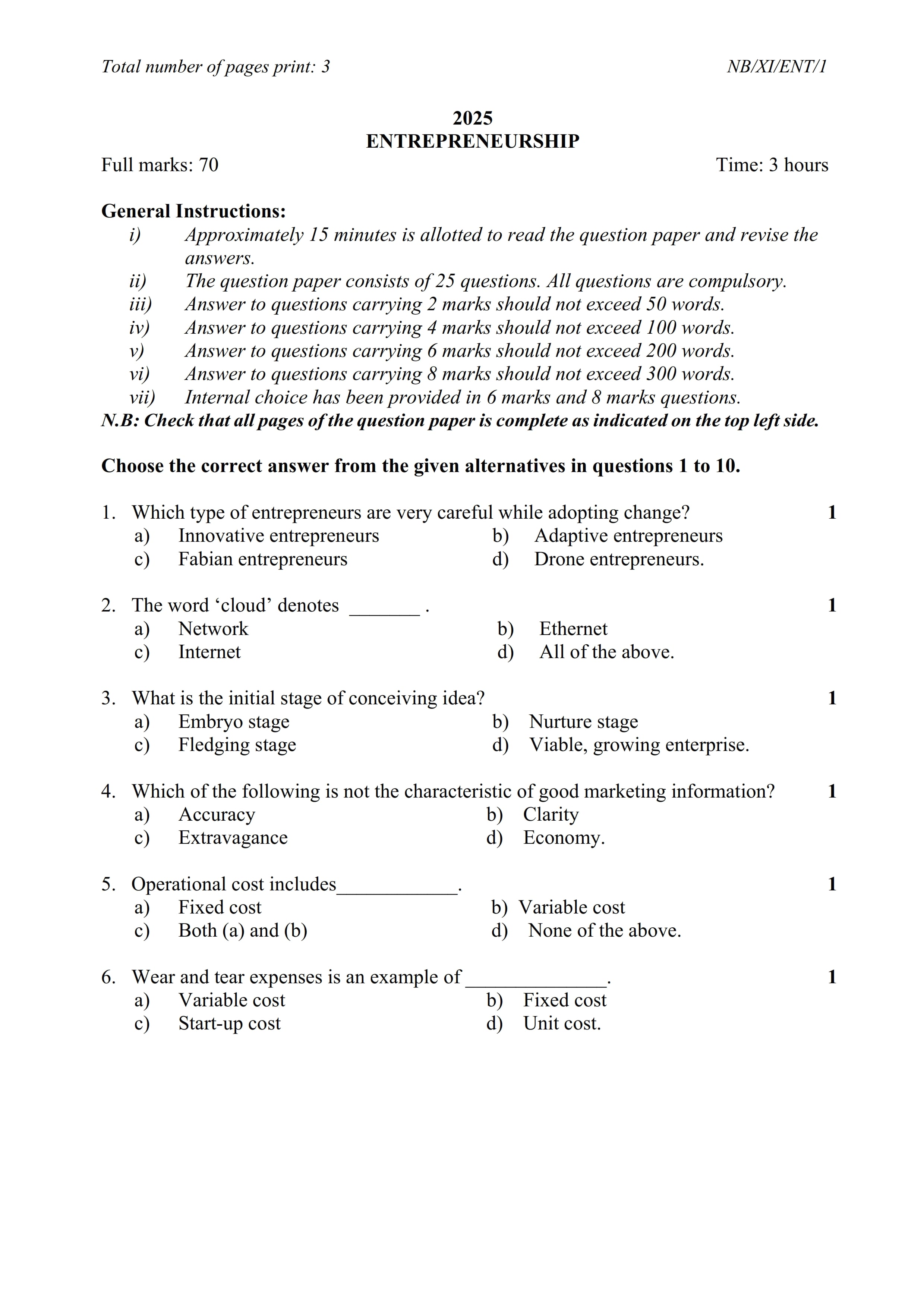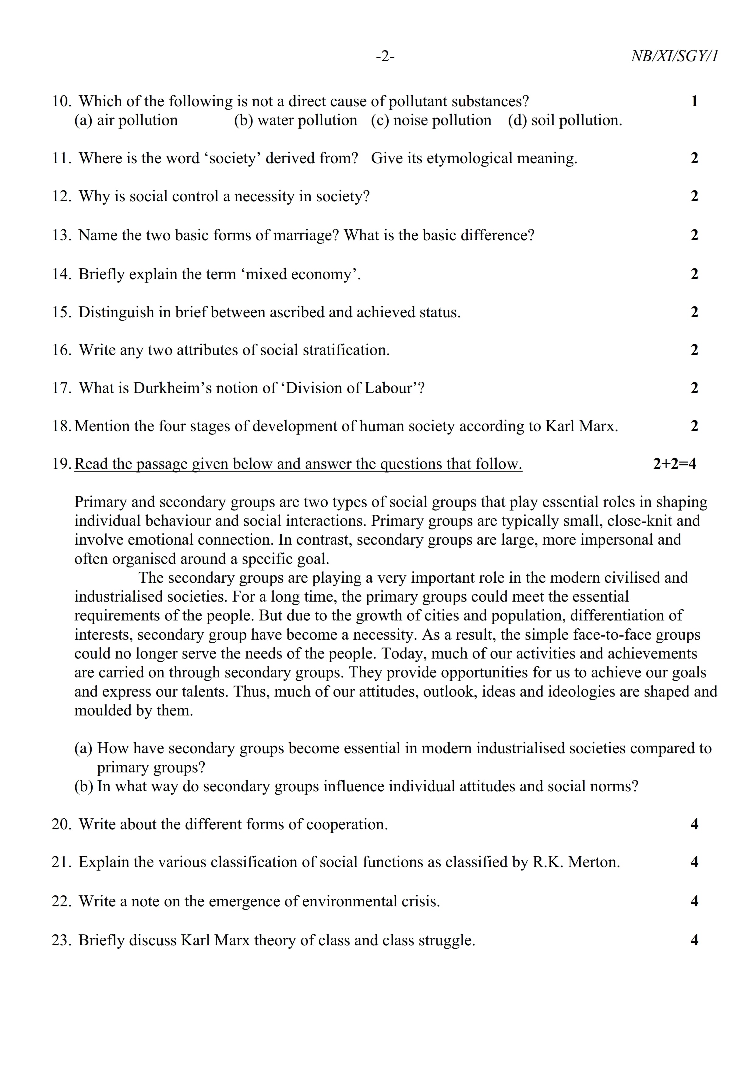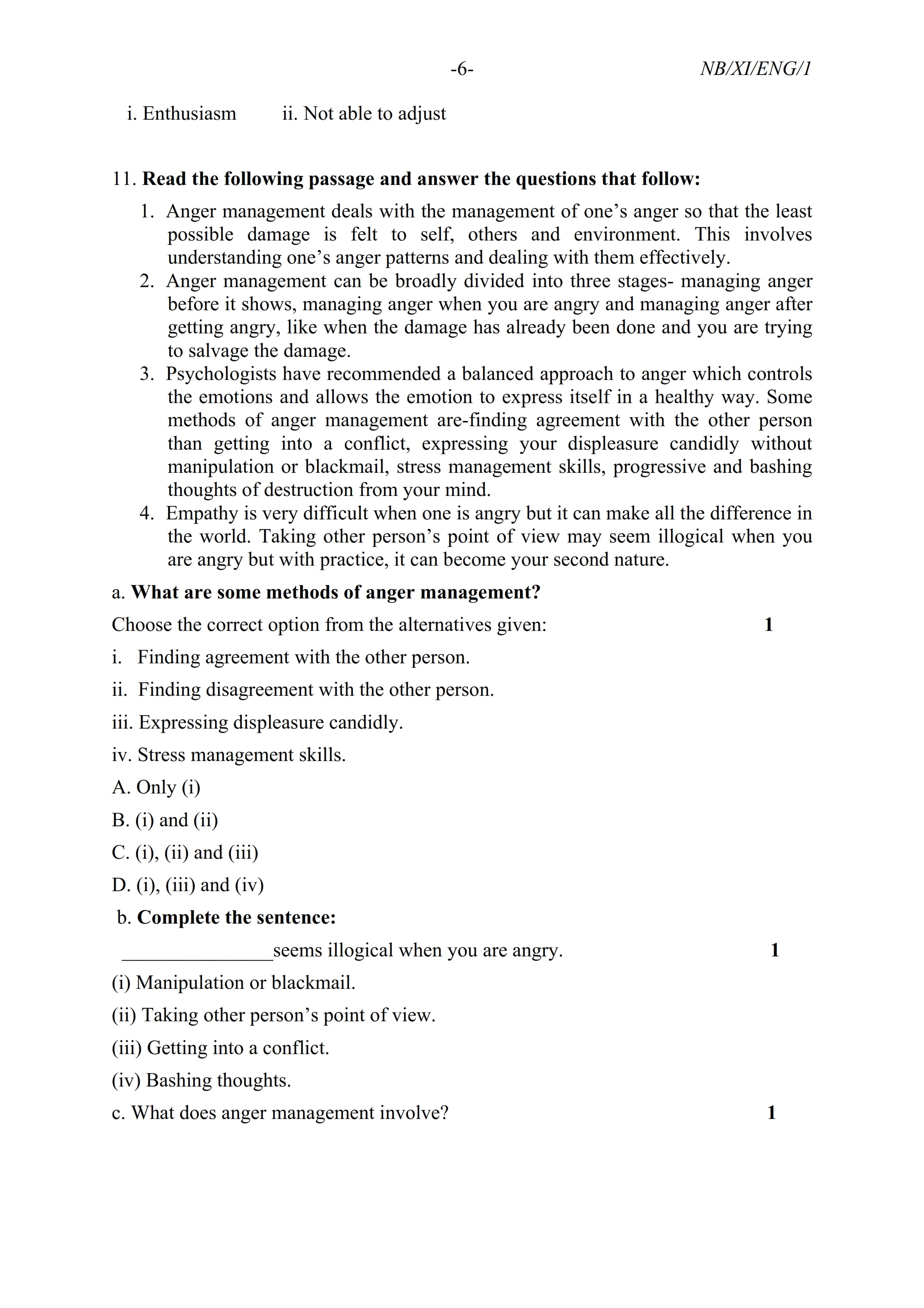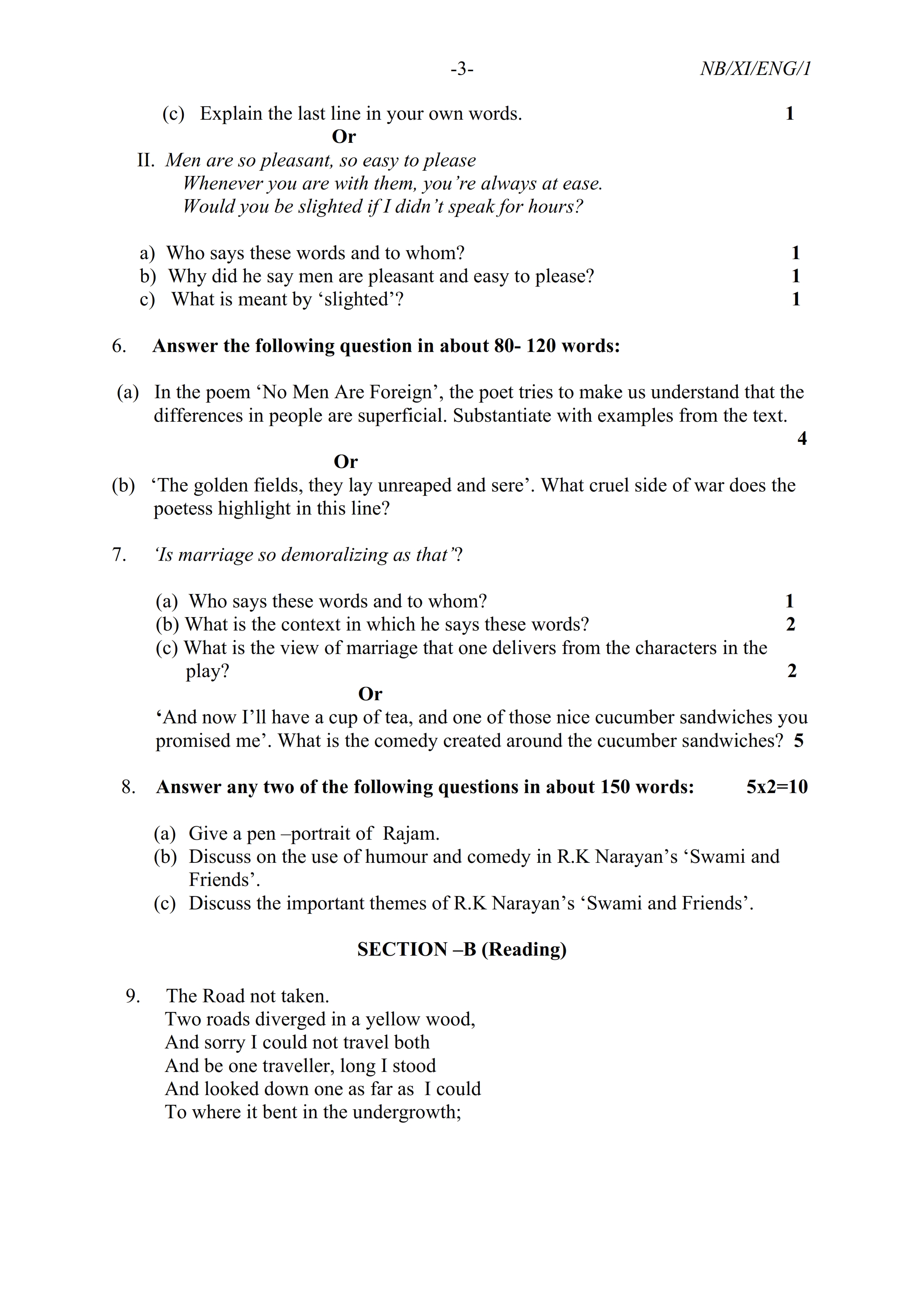 - NBSE Class 11 Question Paper