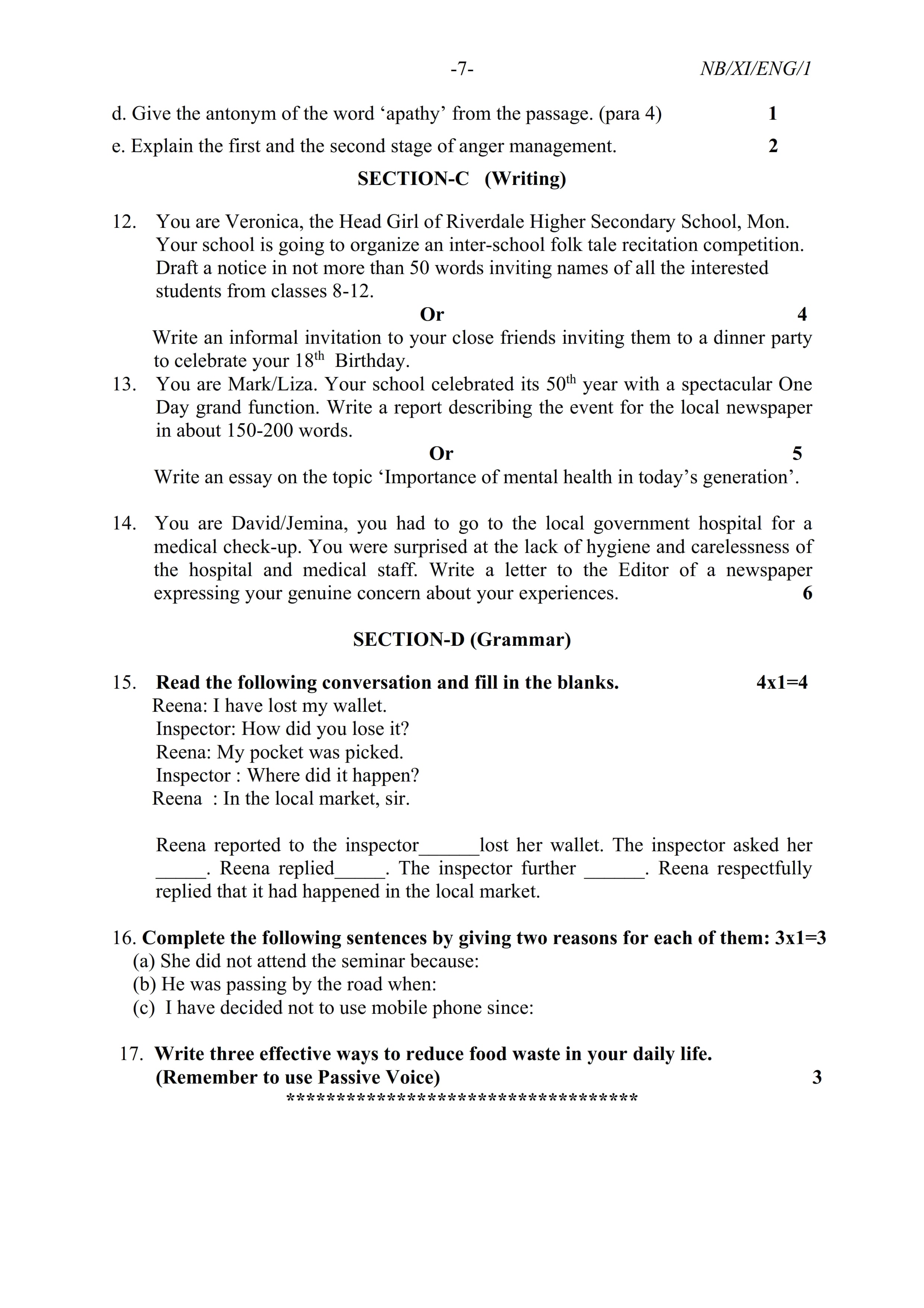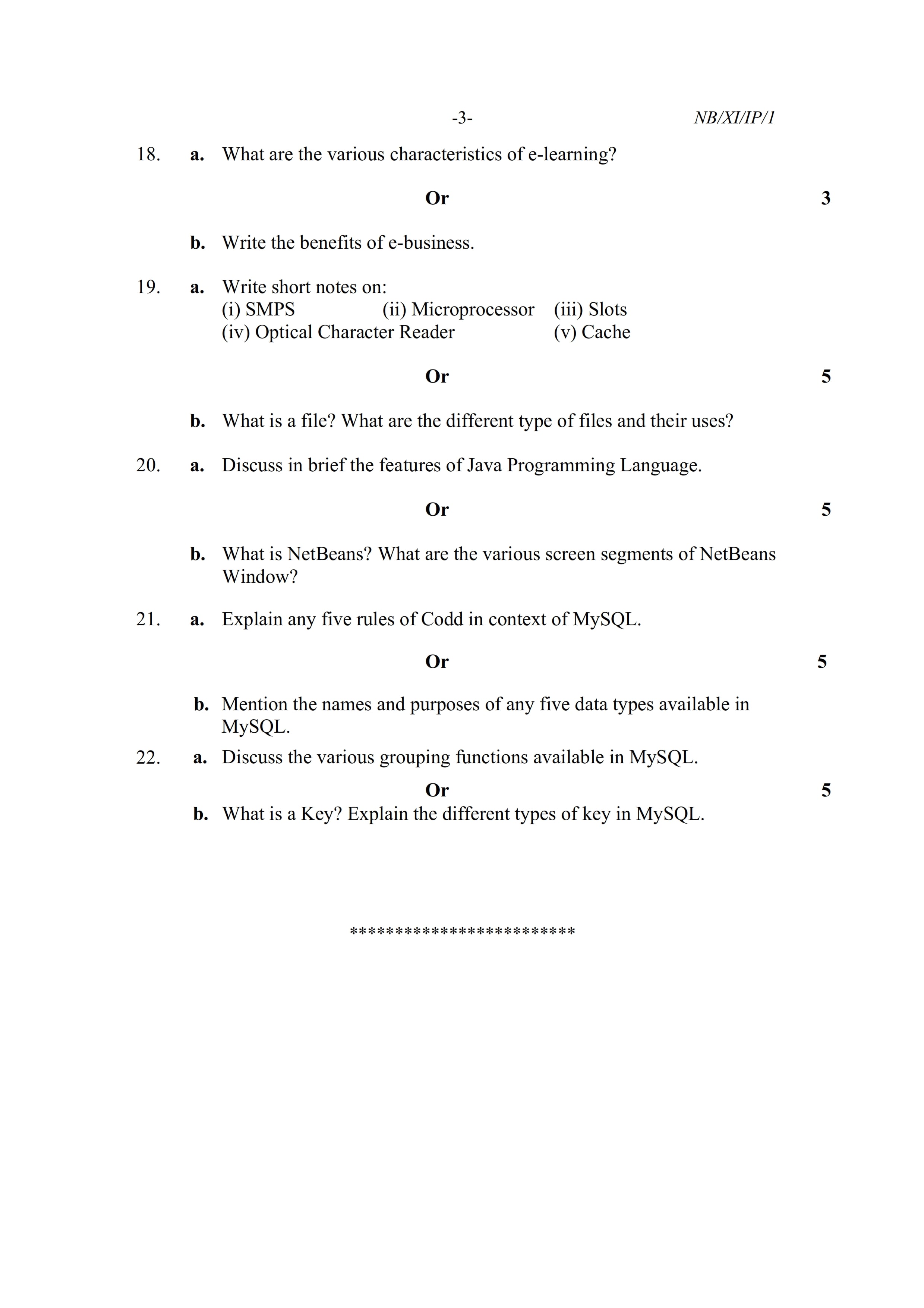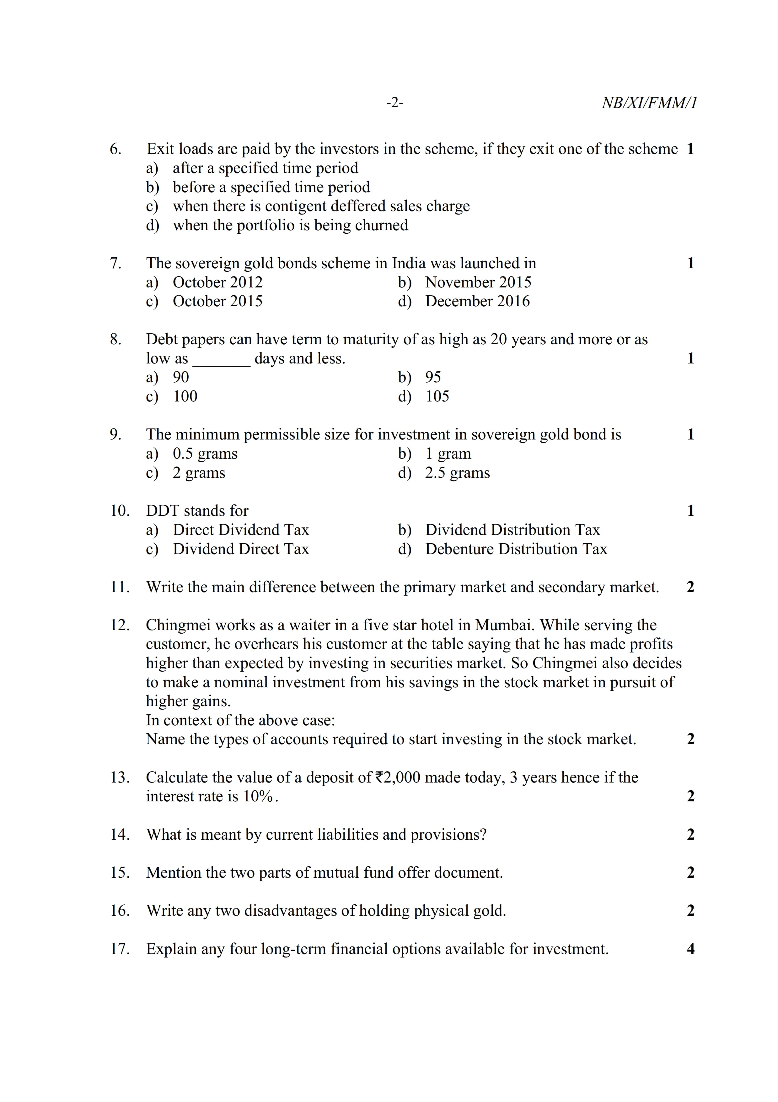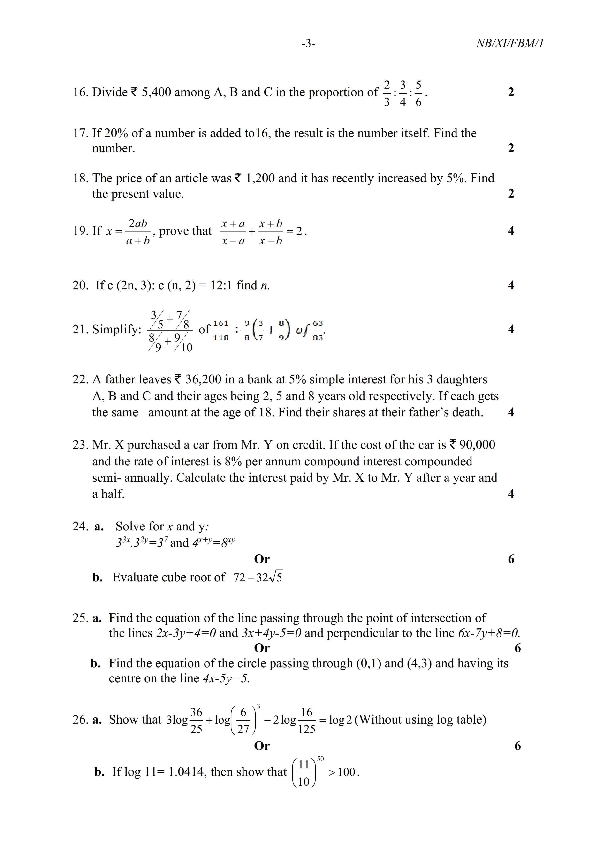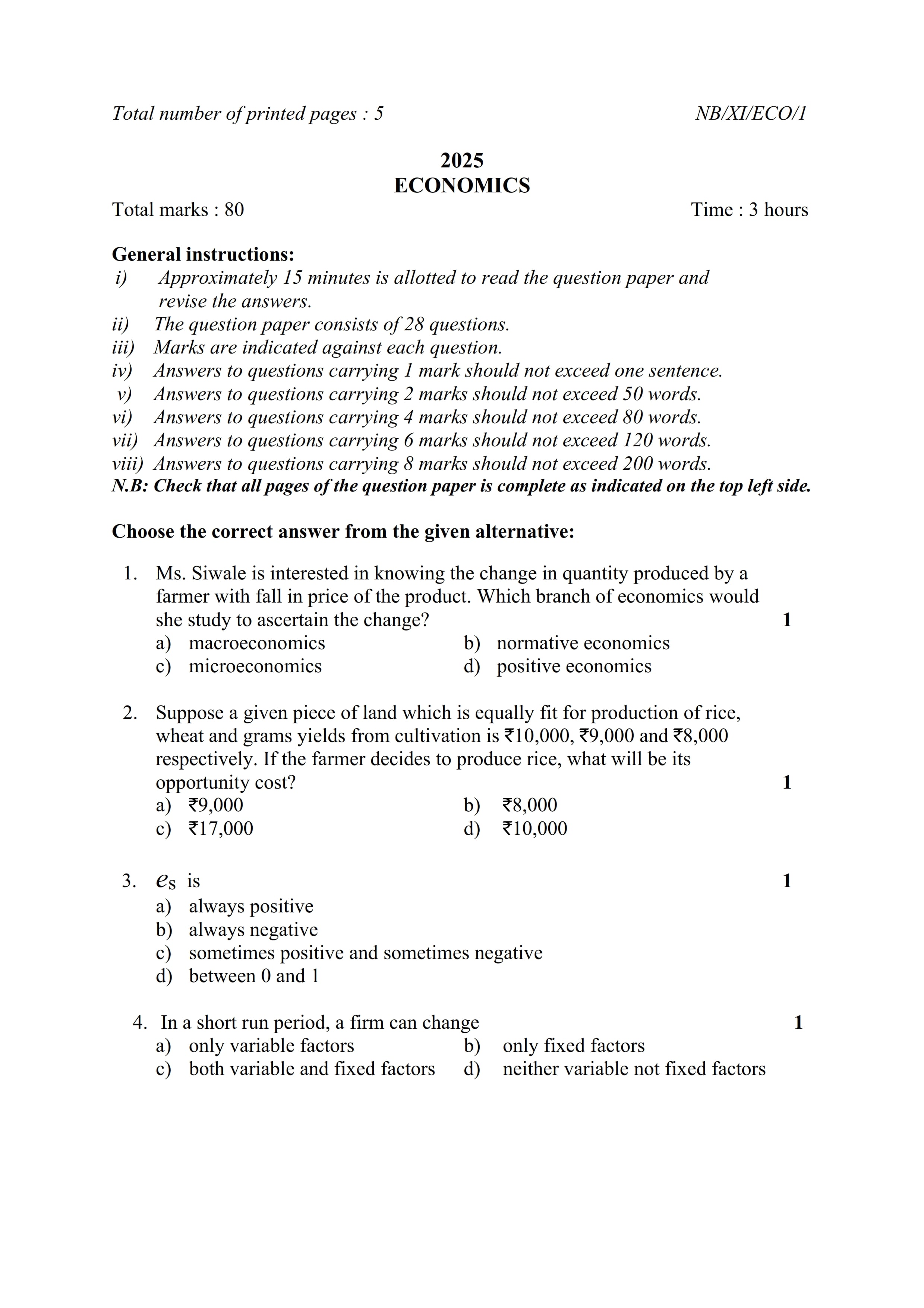 - NBSE Class 11 Question Paper