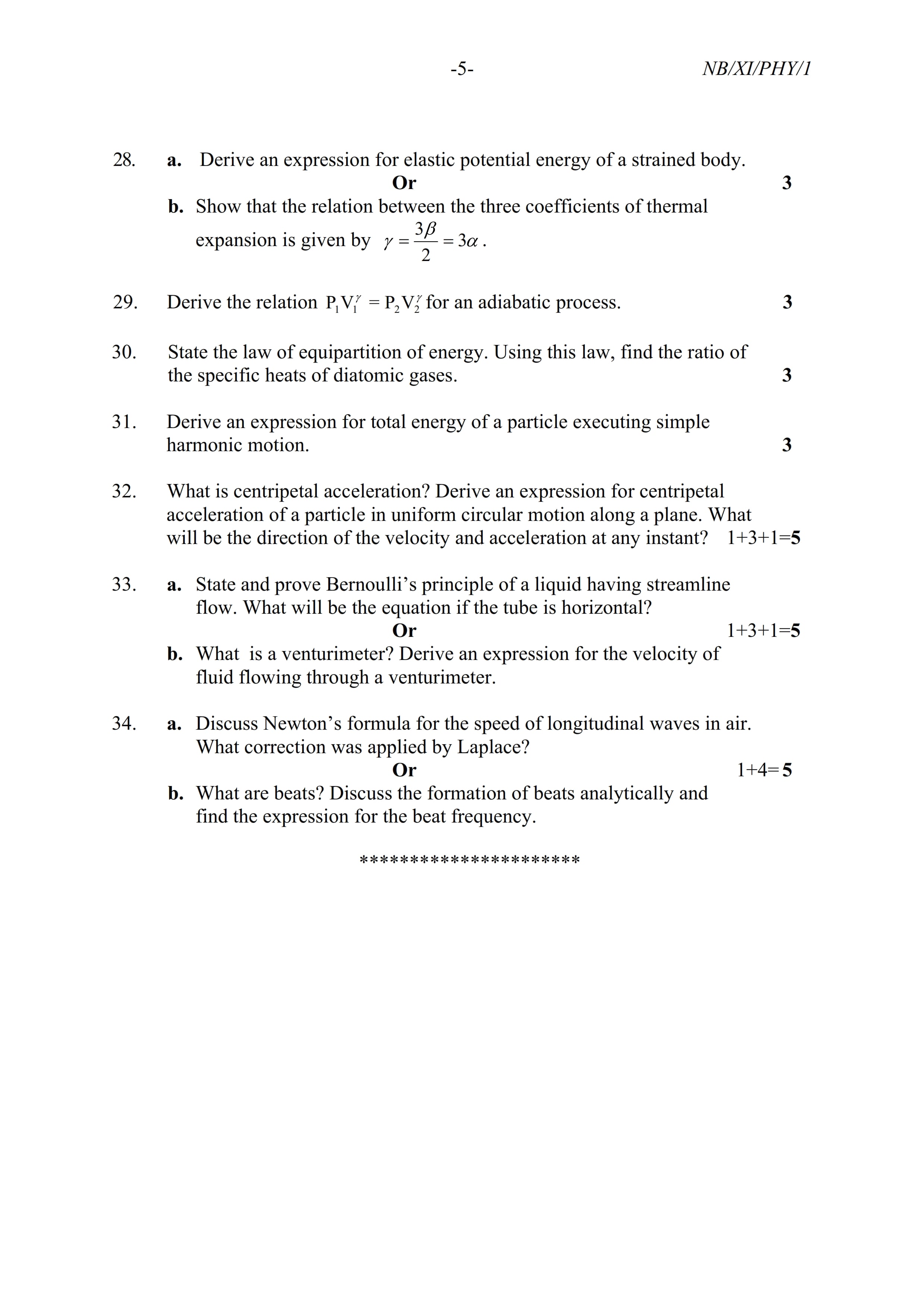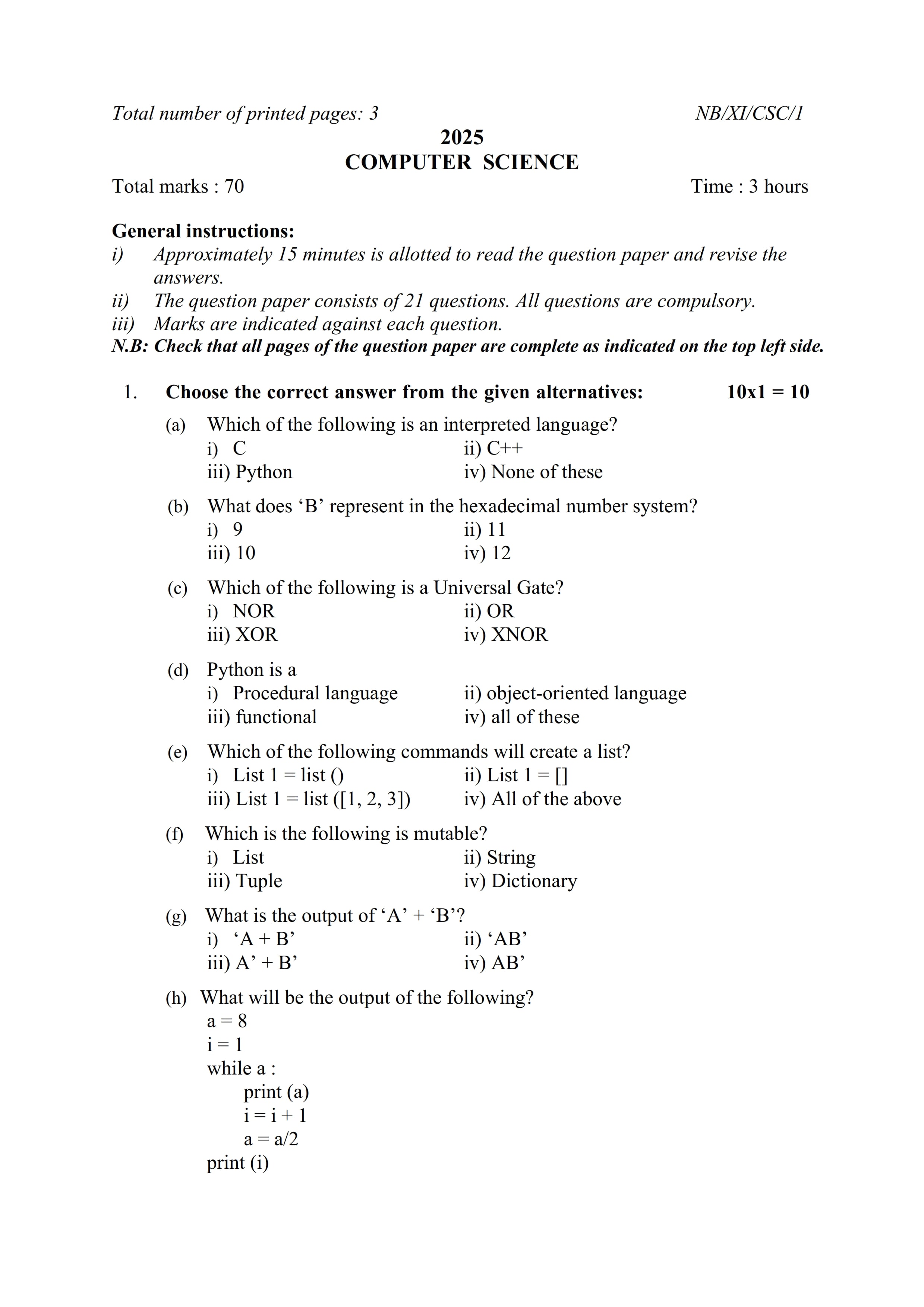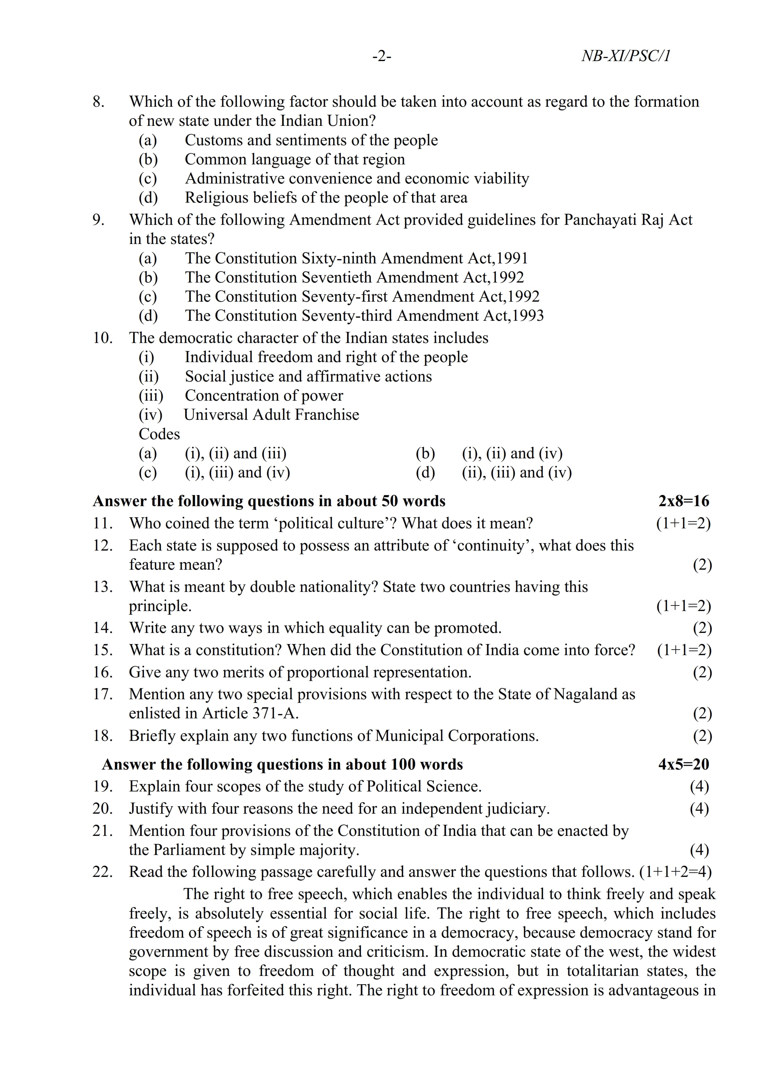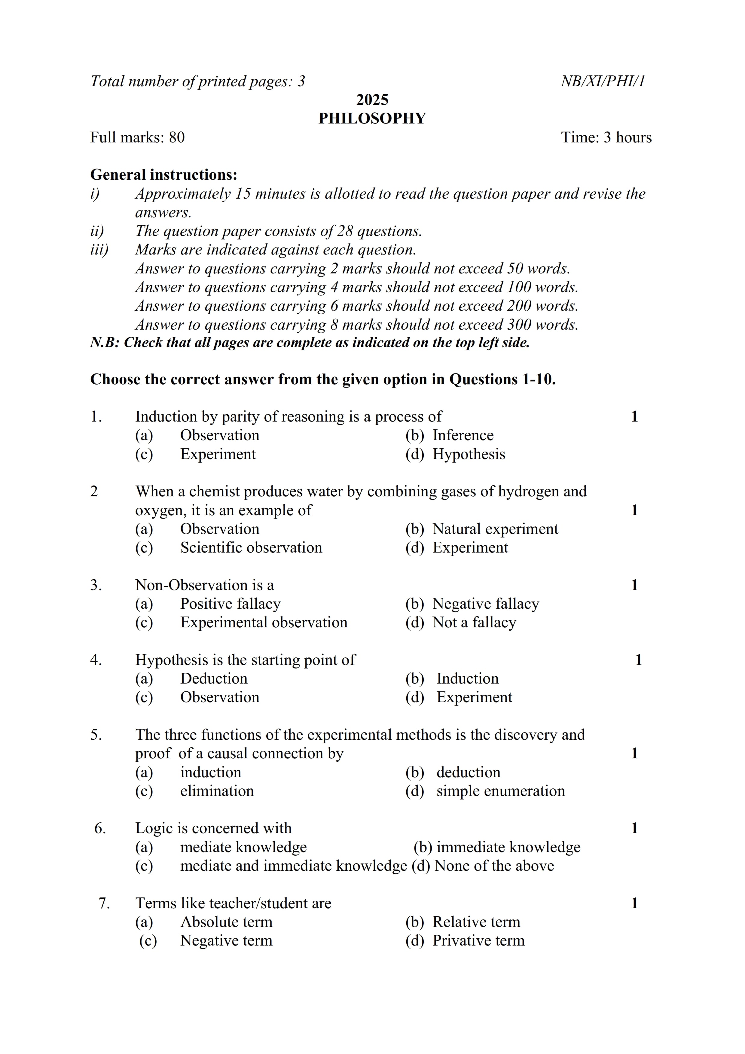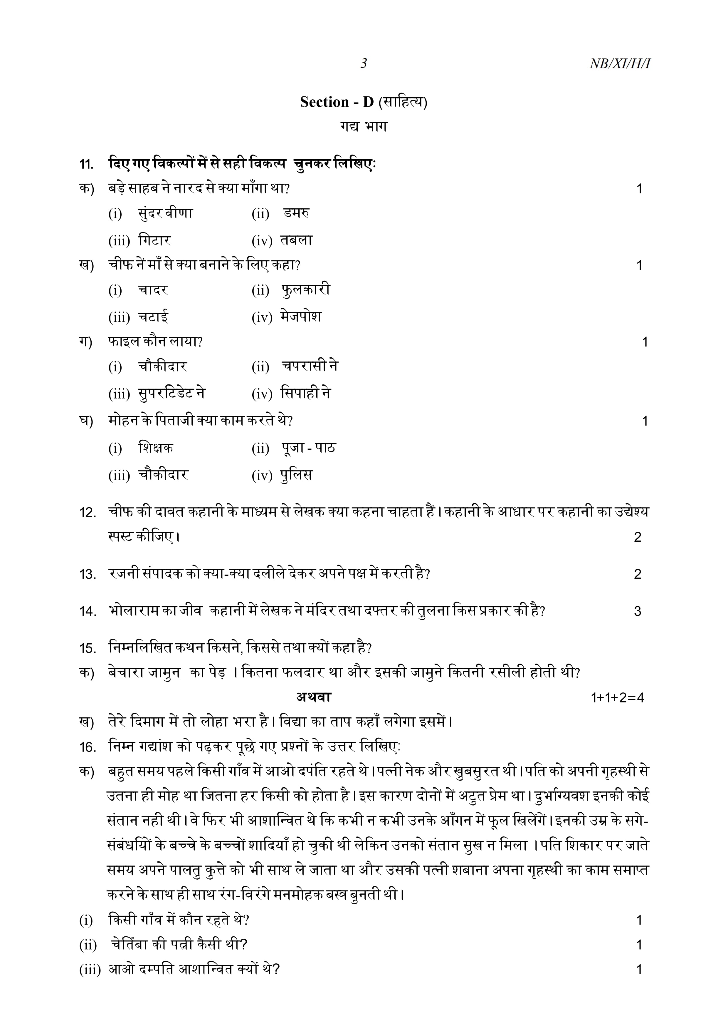 - NBSE Class 11 Question Paper