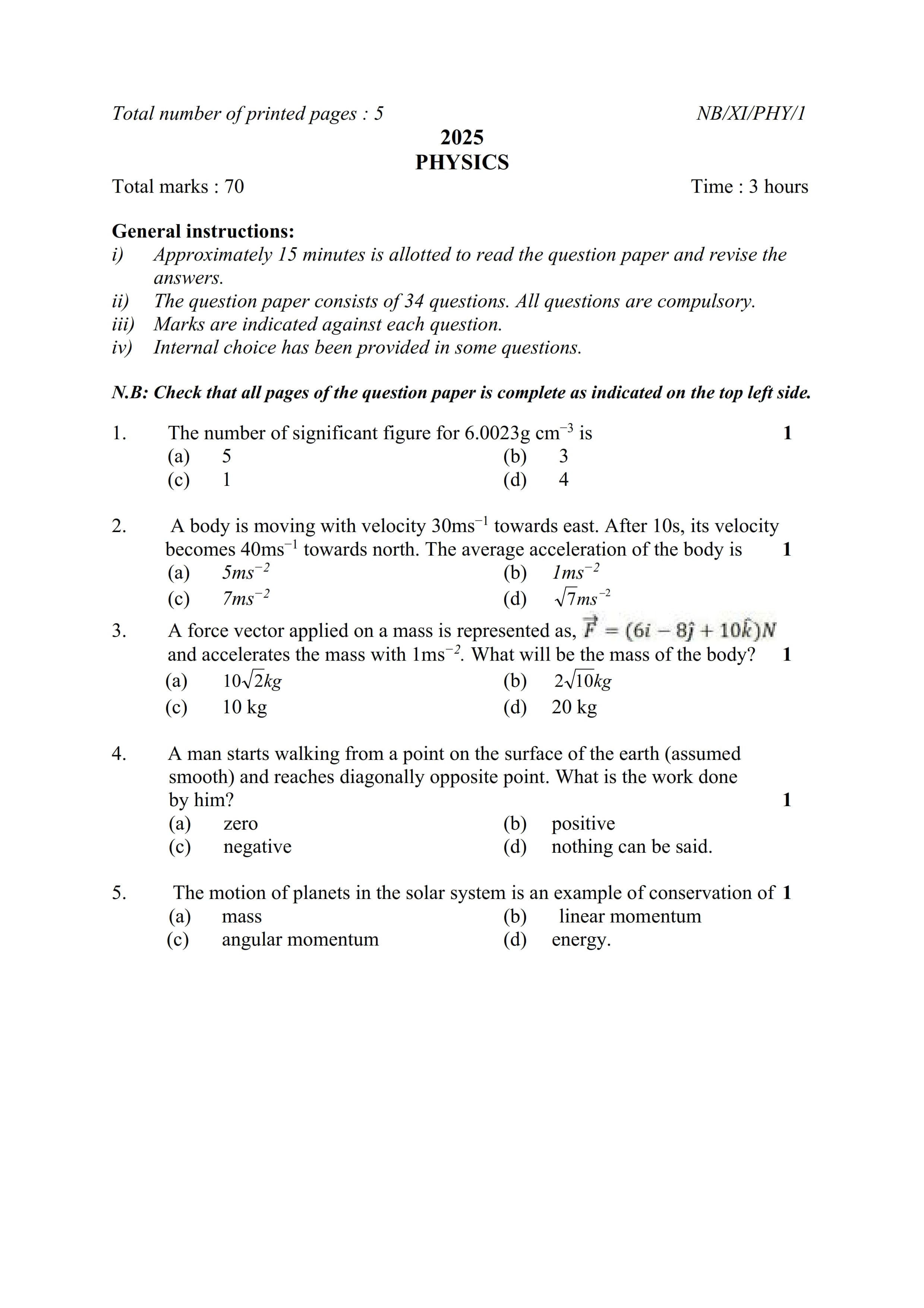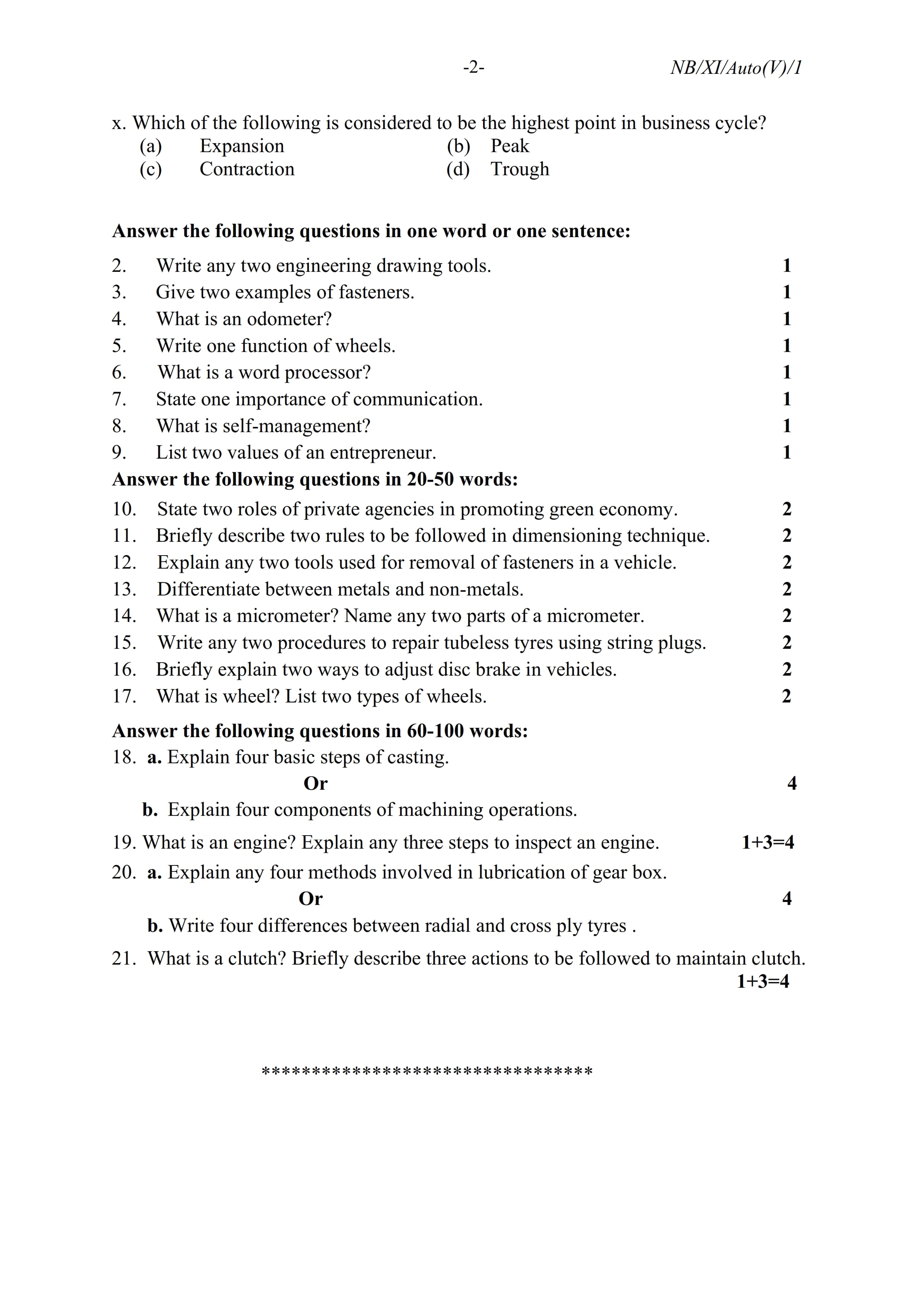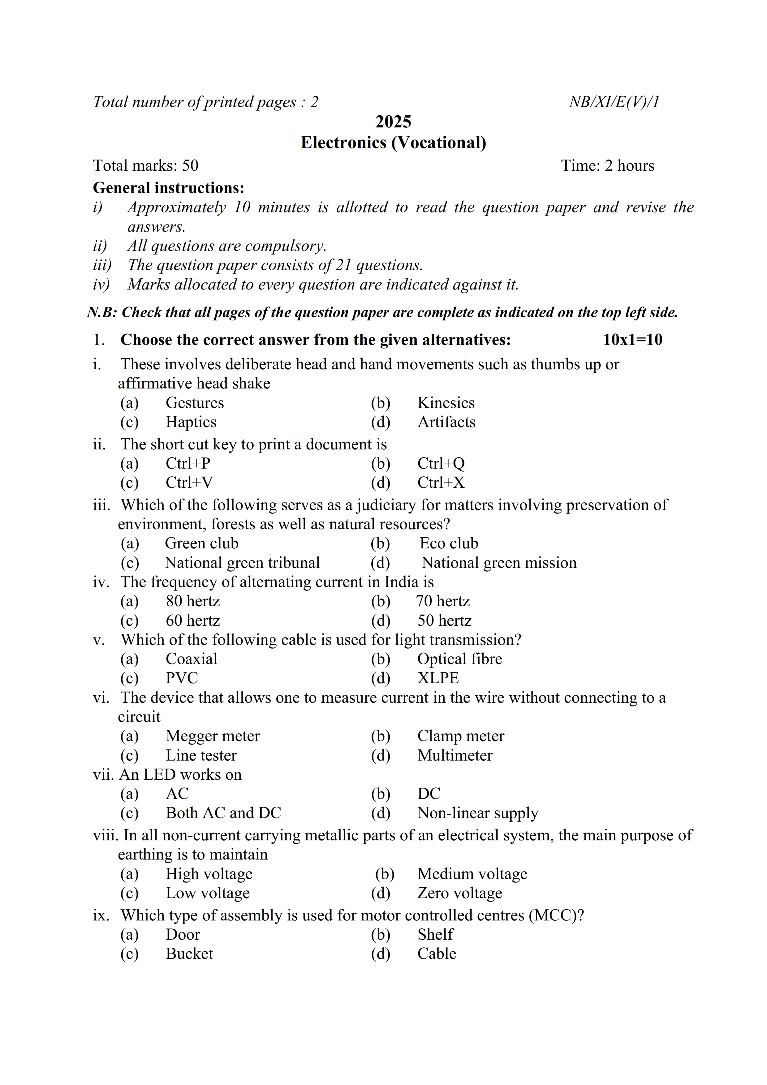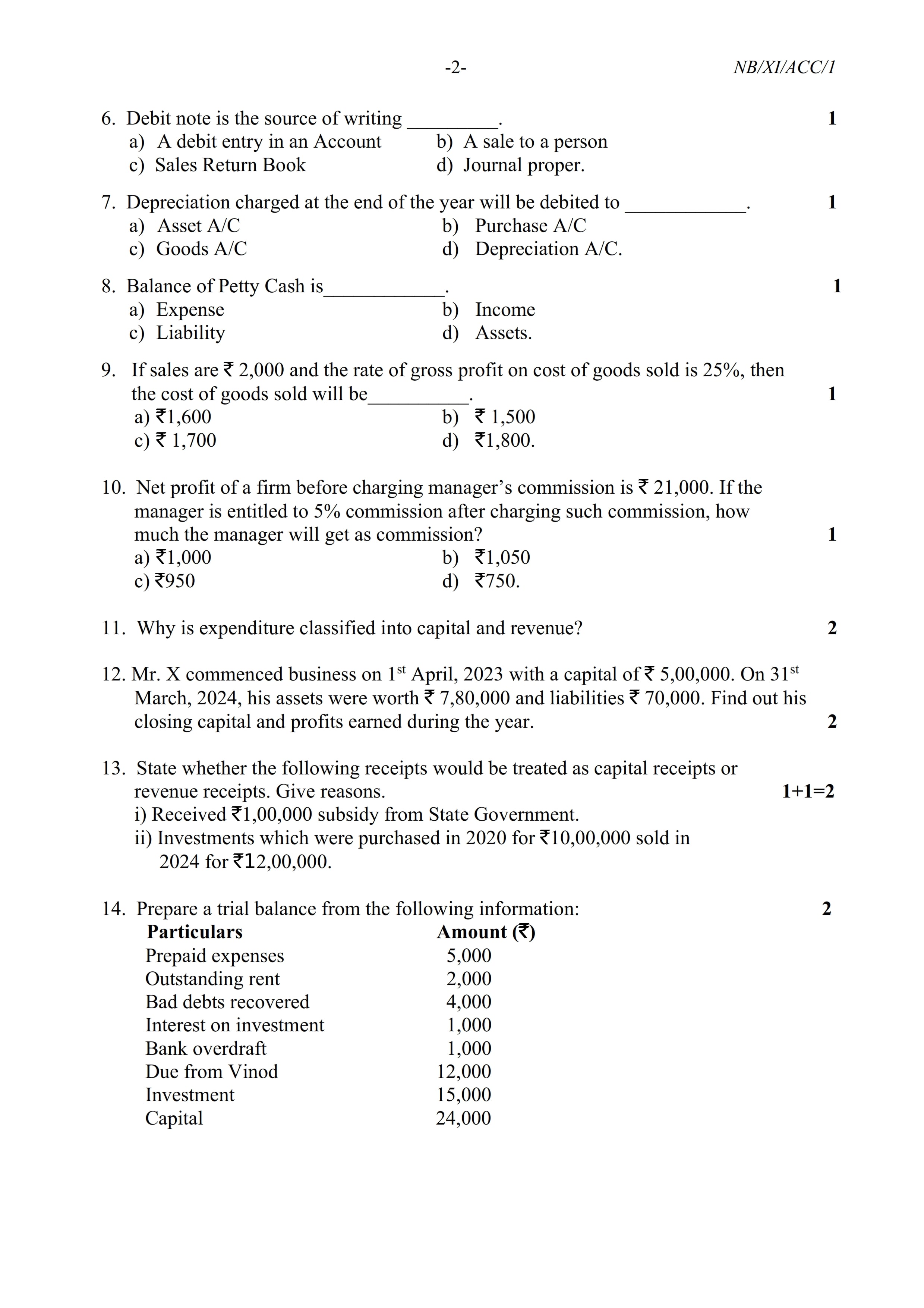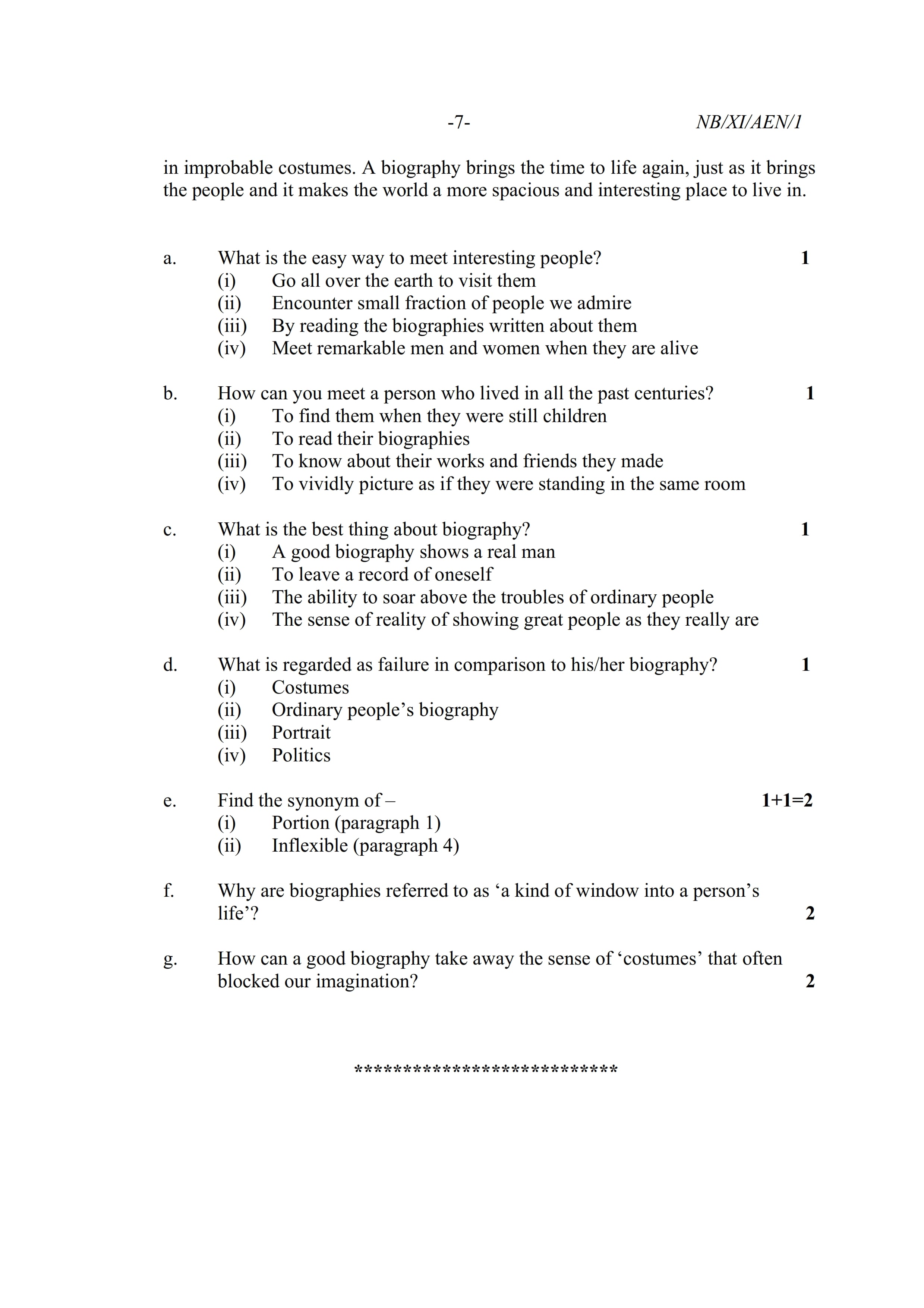 - NBSE Class 11 Question Paper