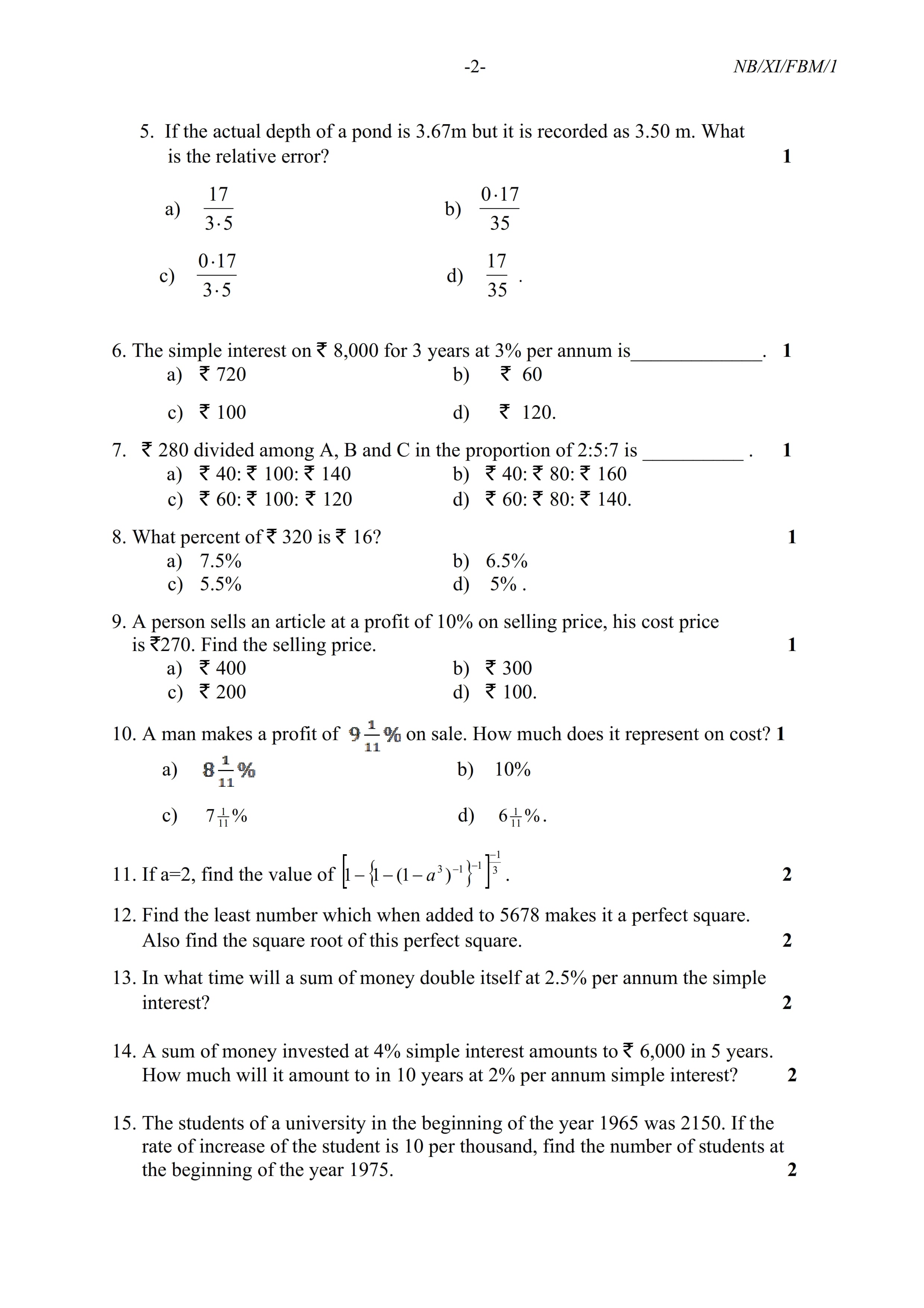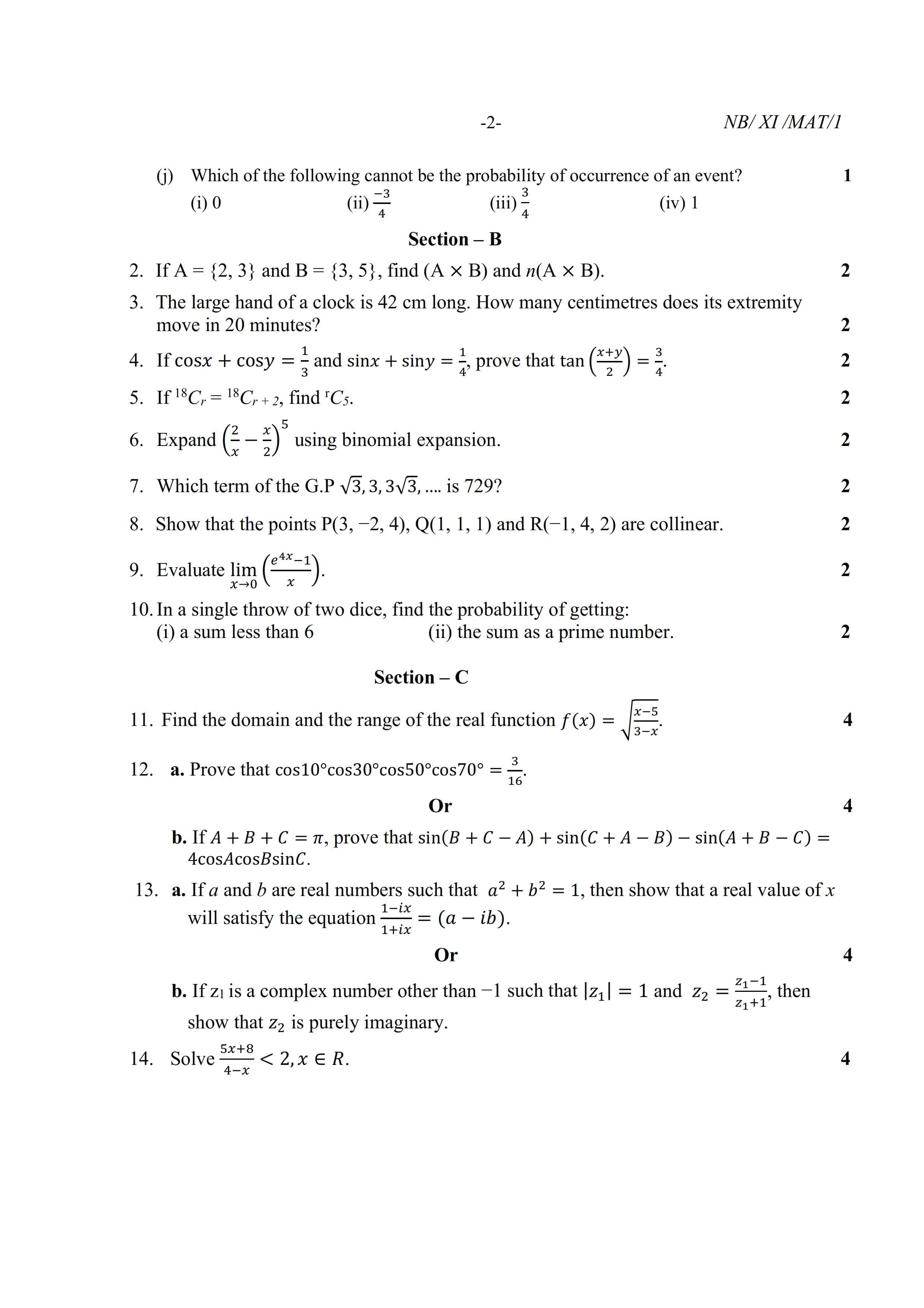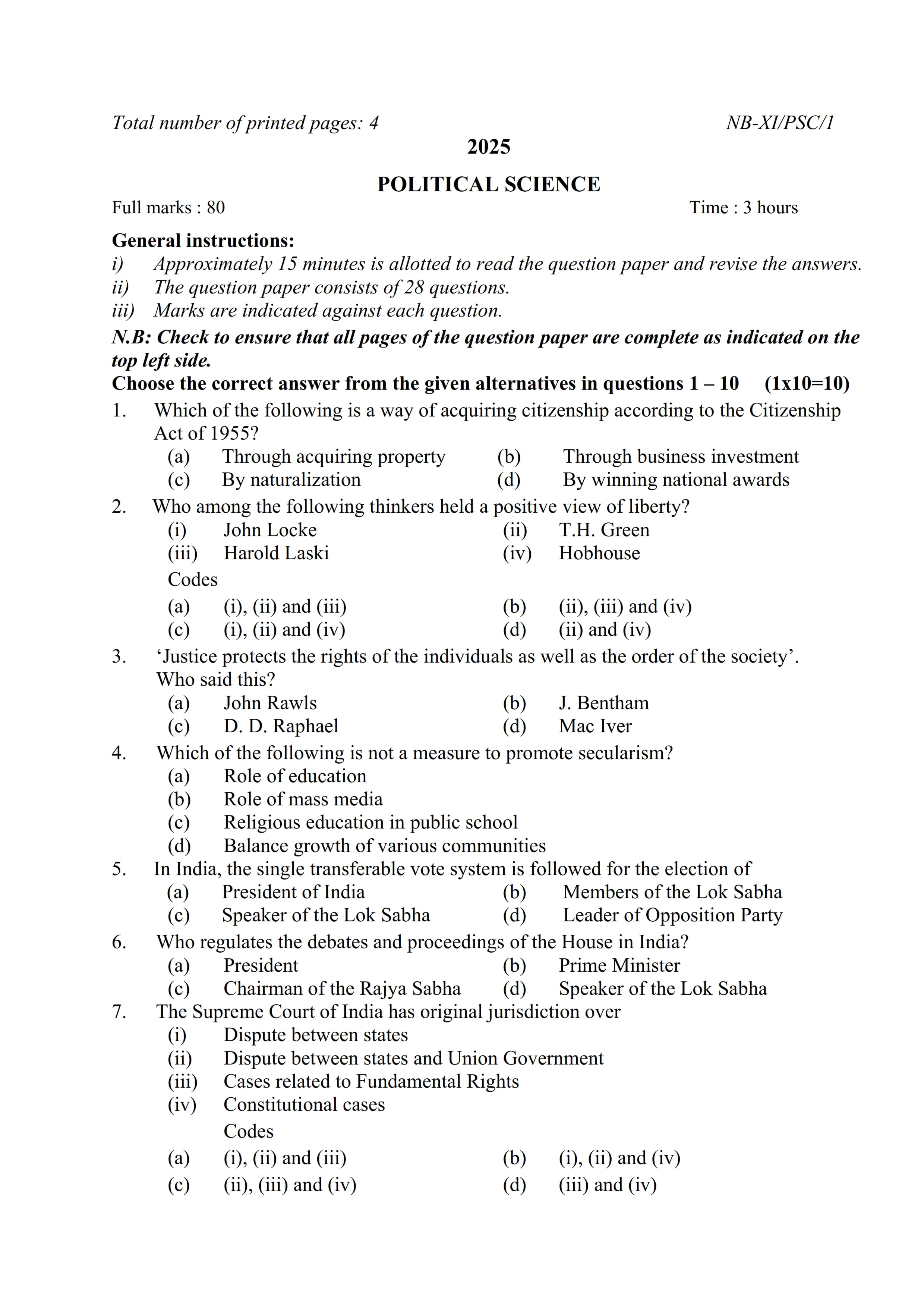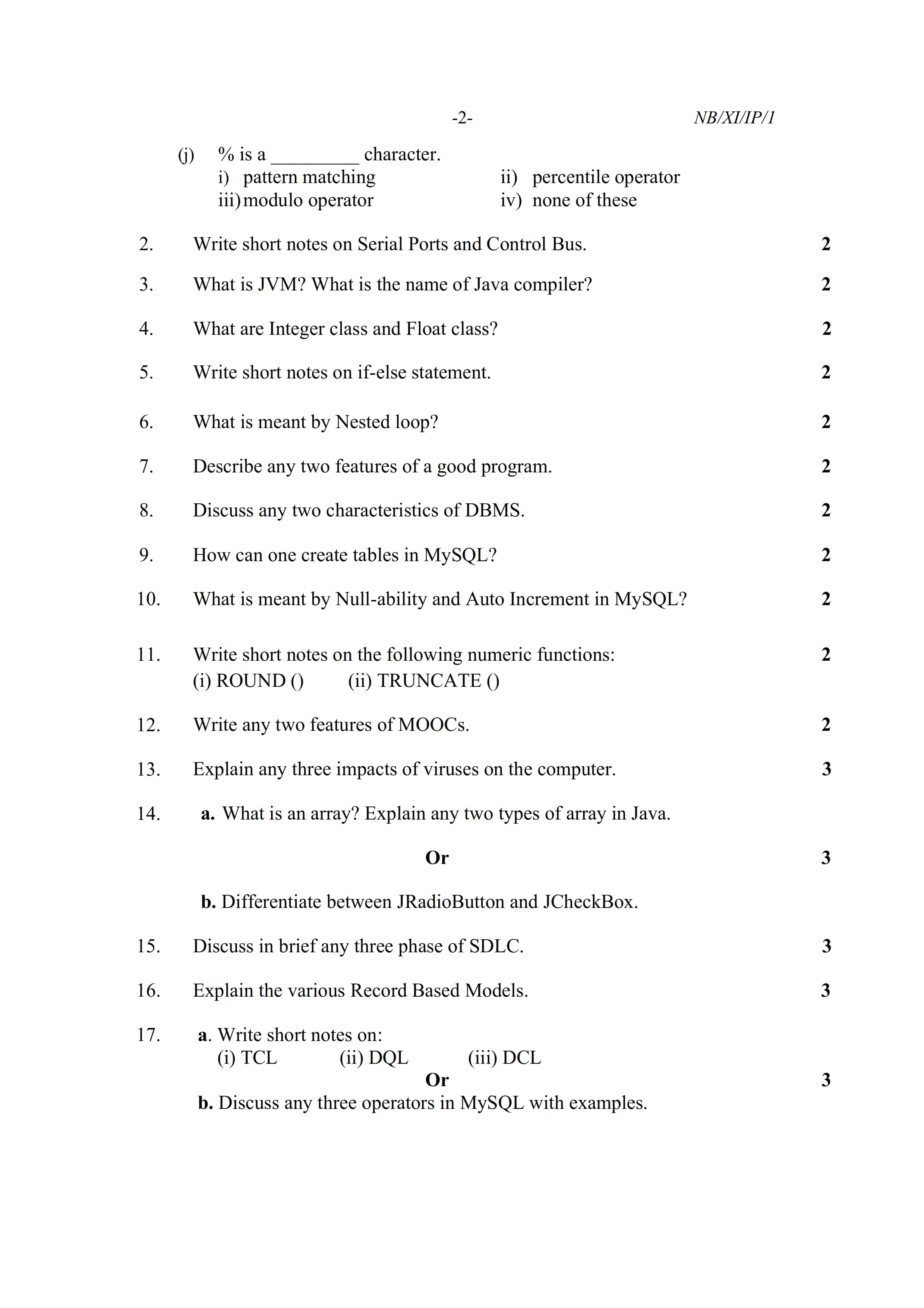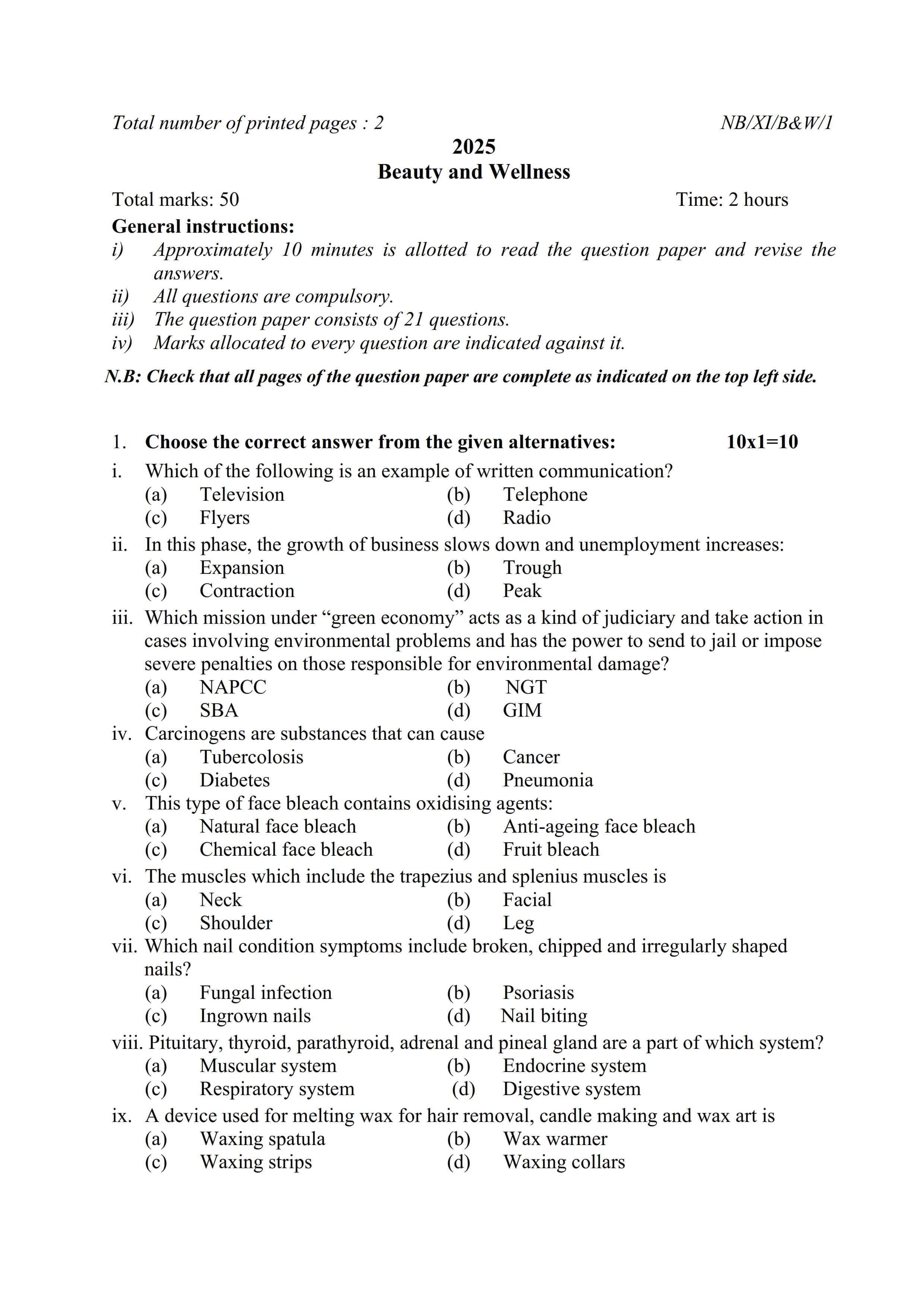 - NBSE Class 11 Question Paper