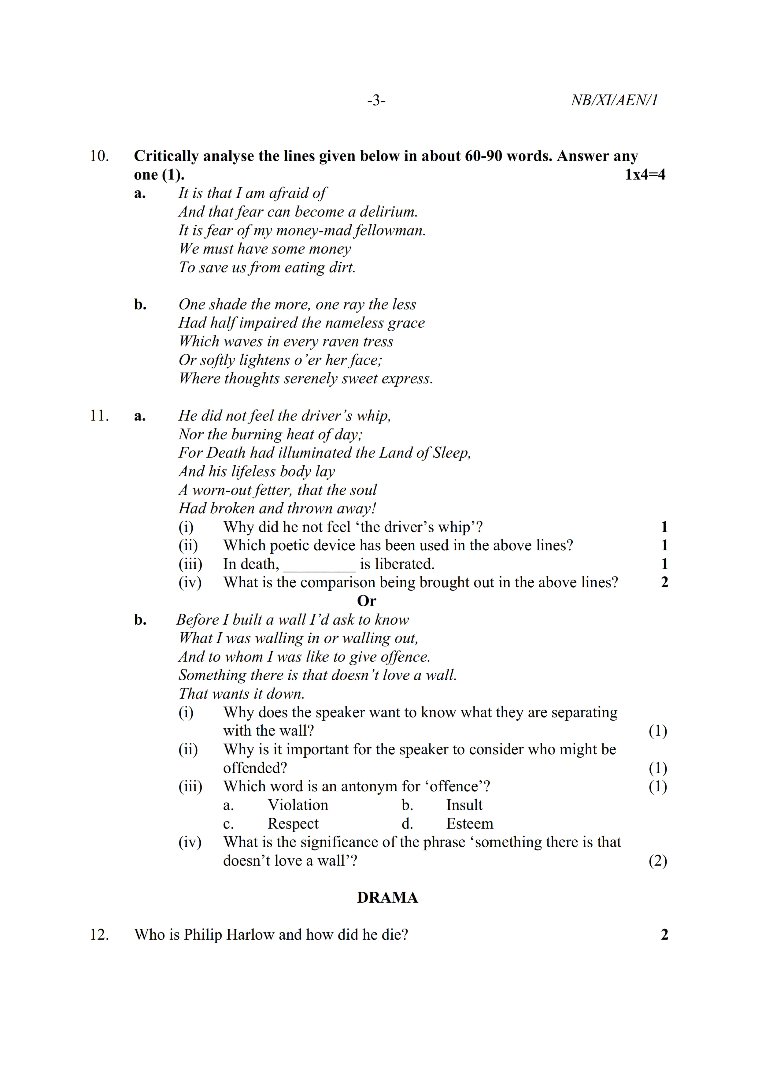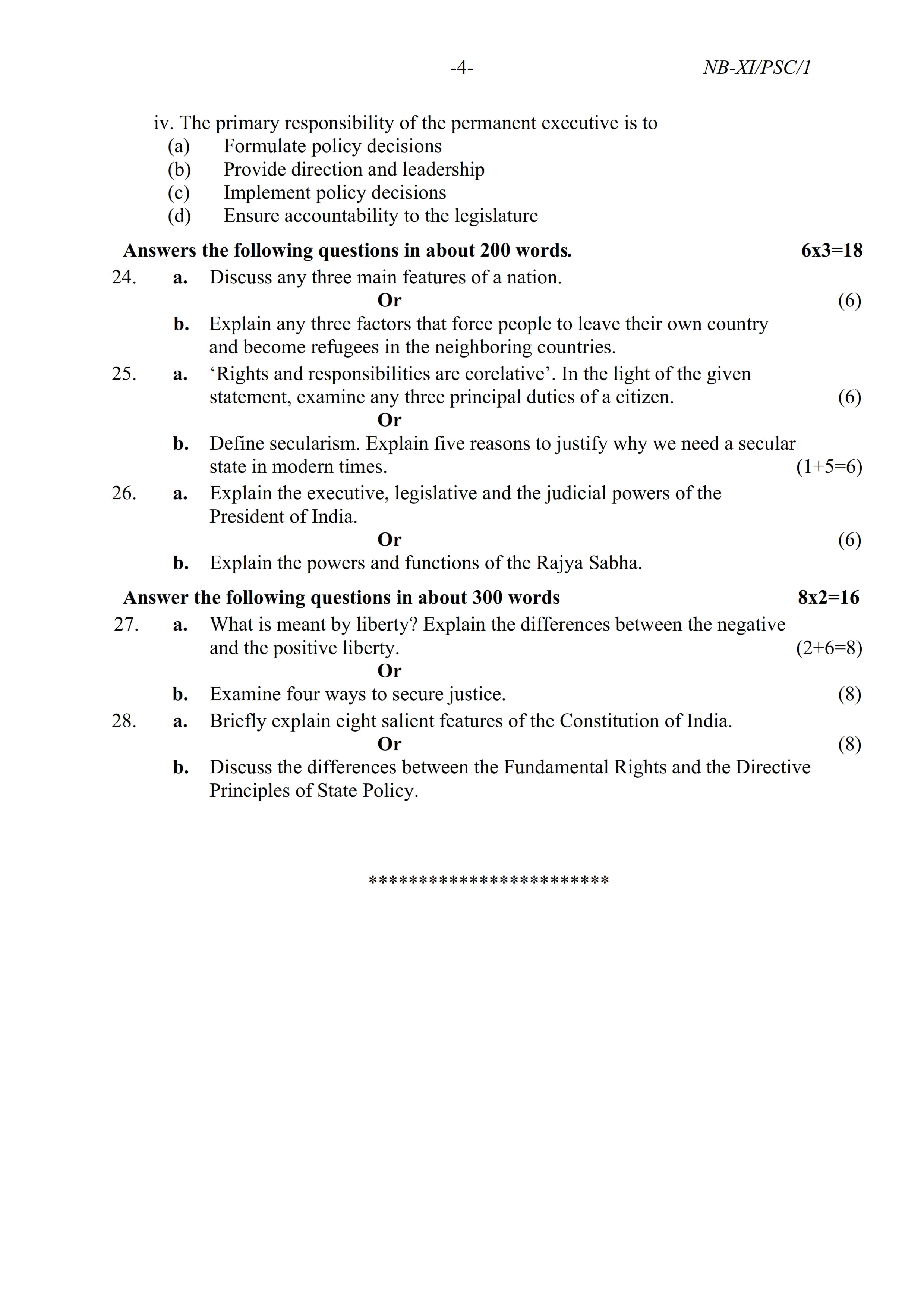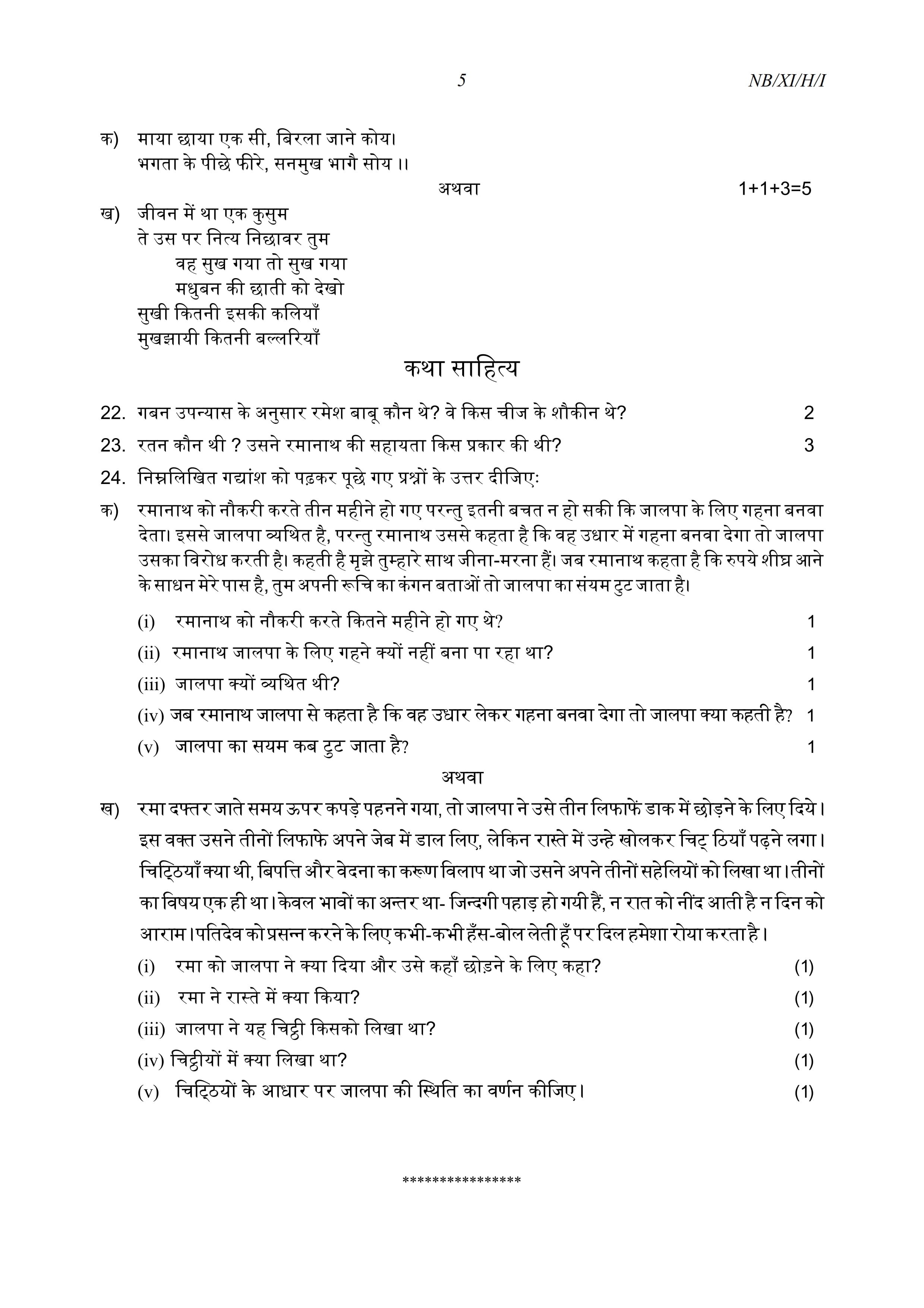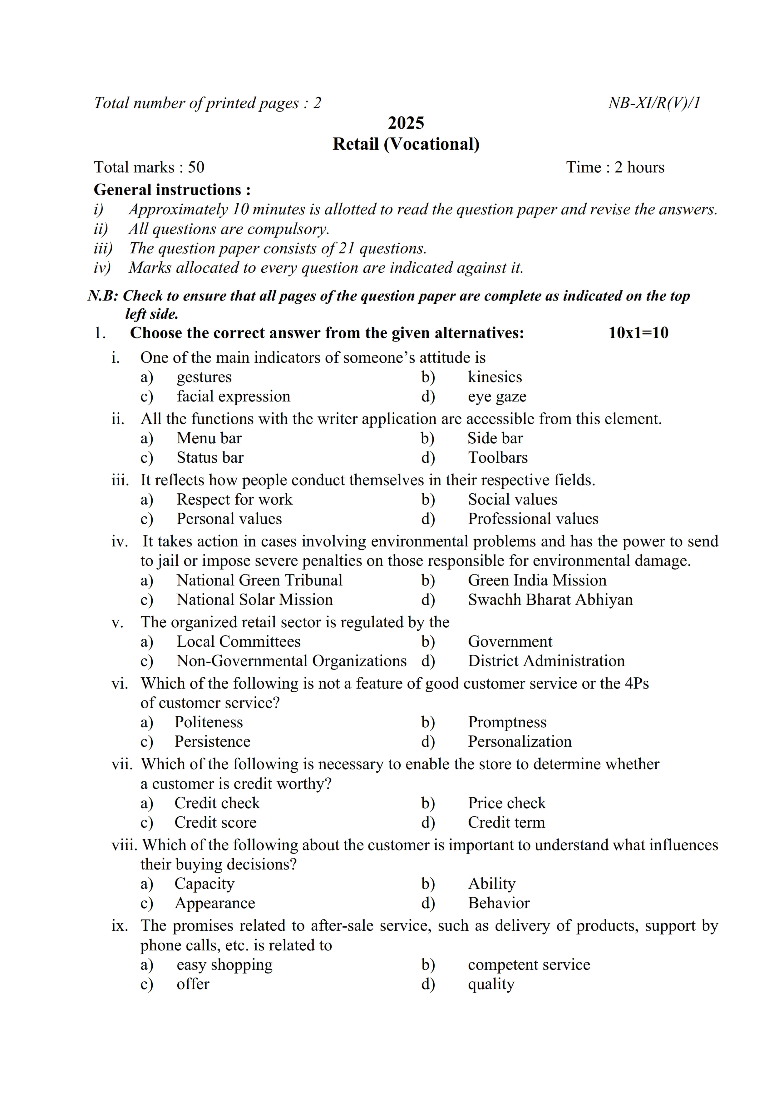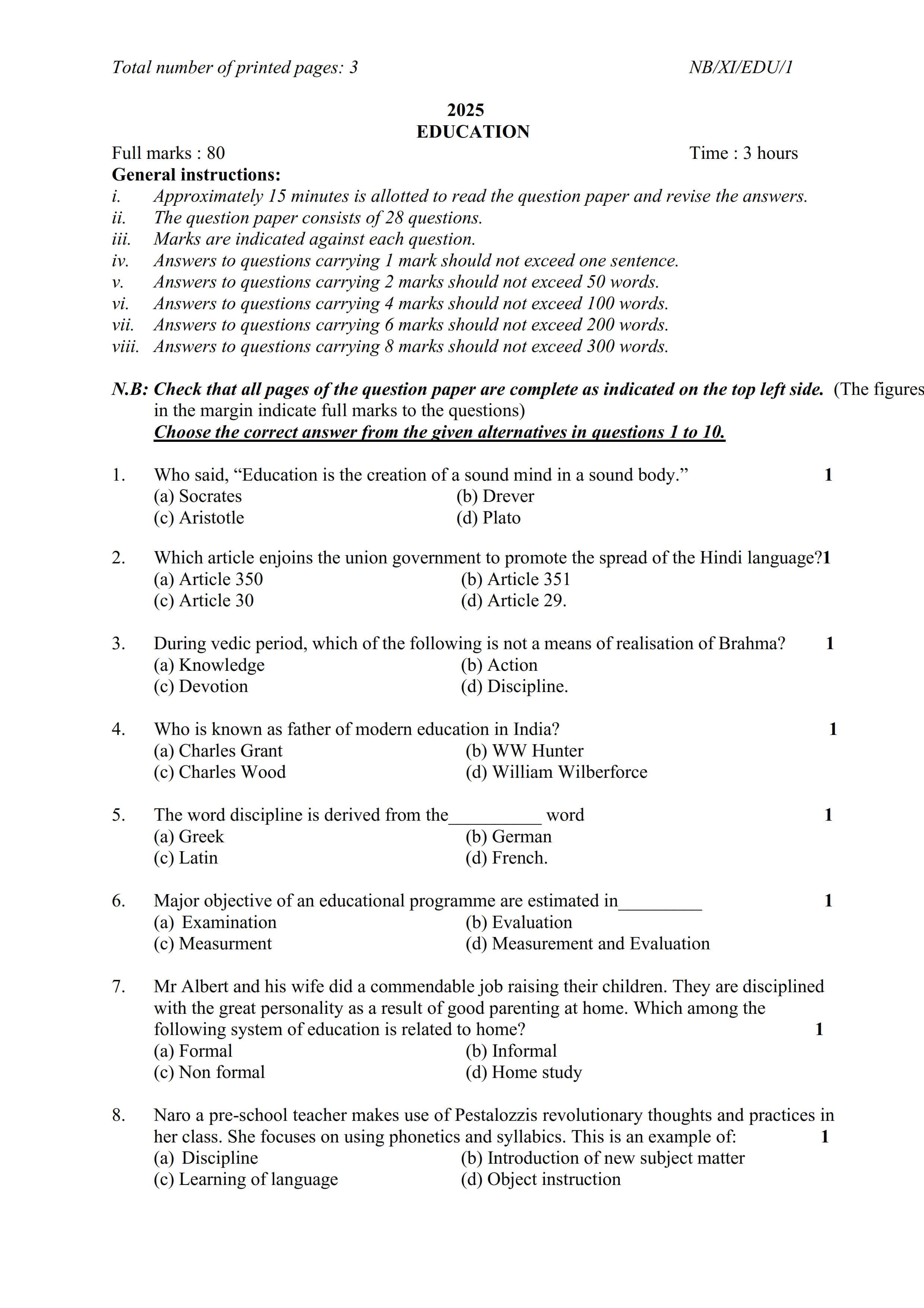 - NBSE Class 11 Question Paper