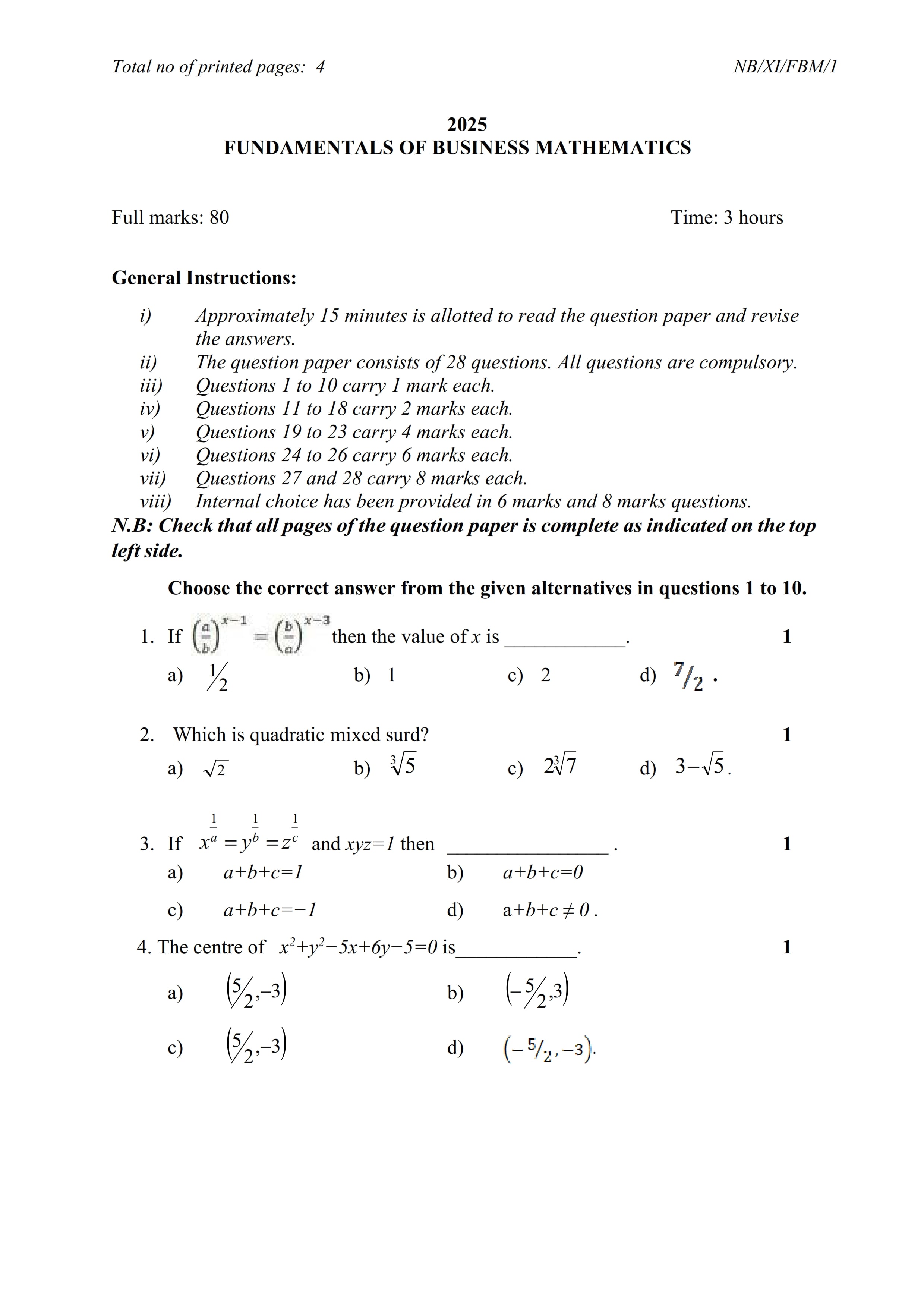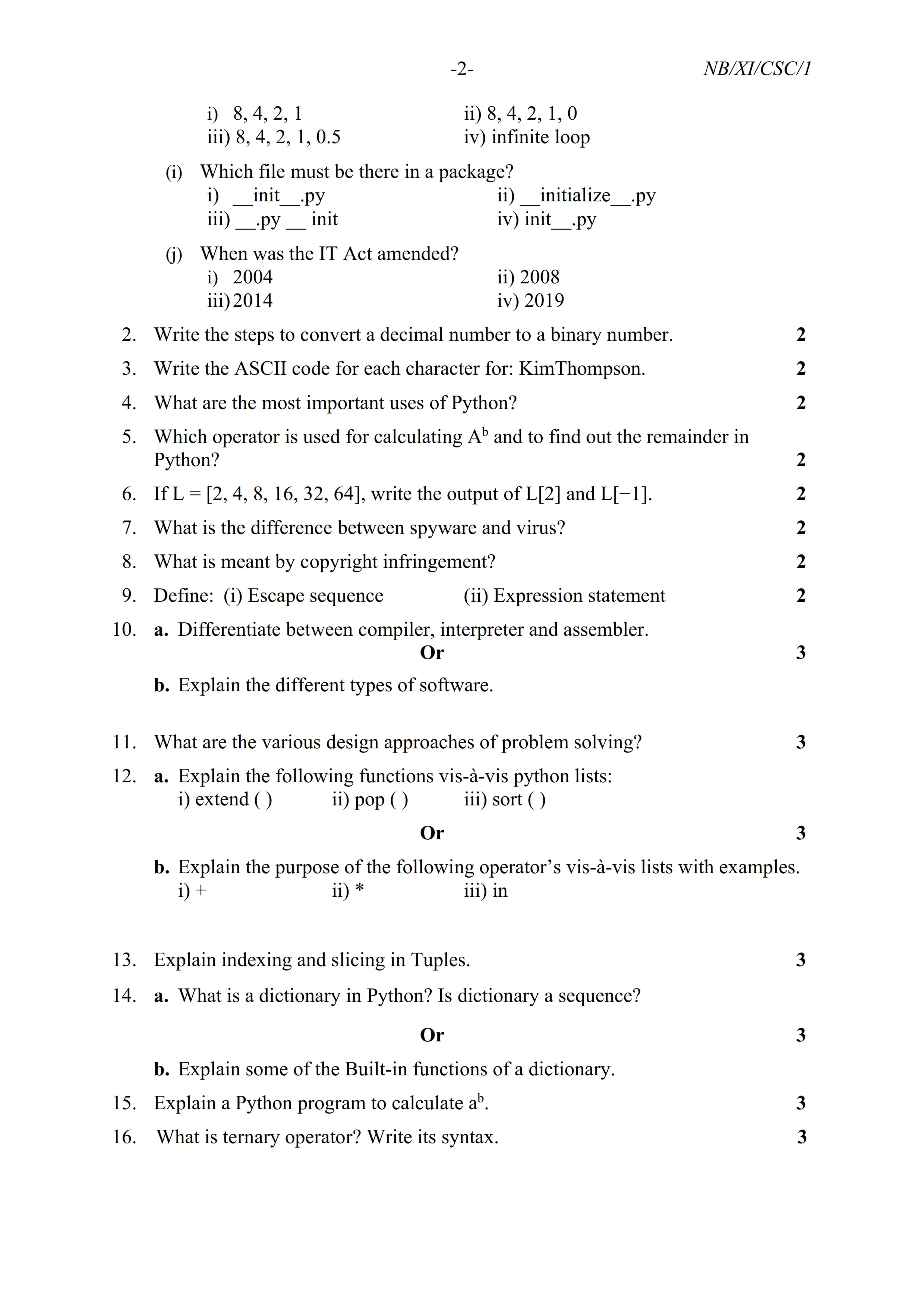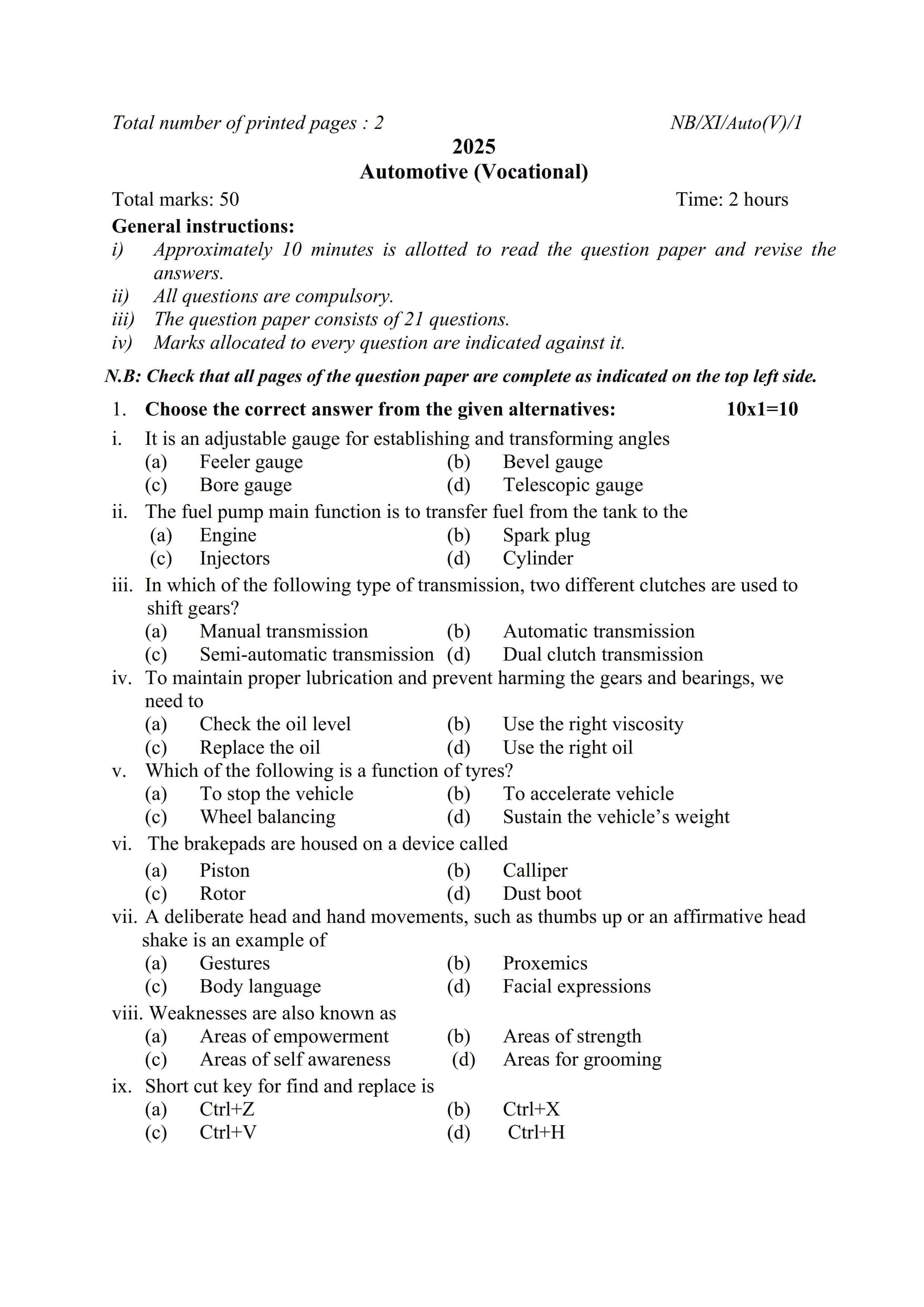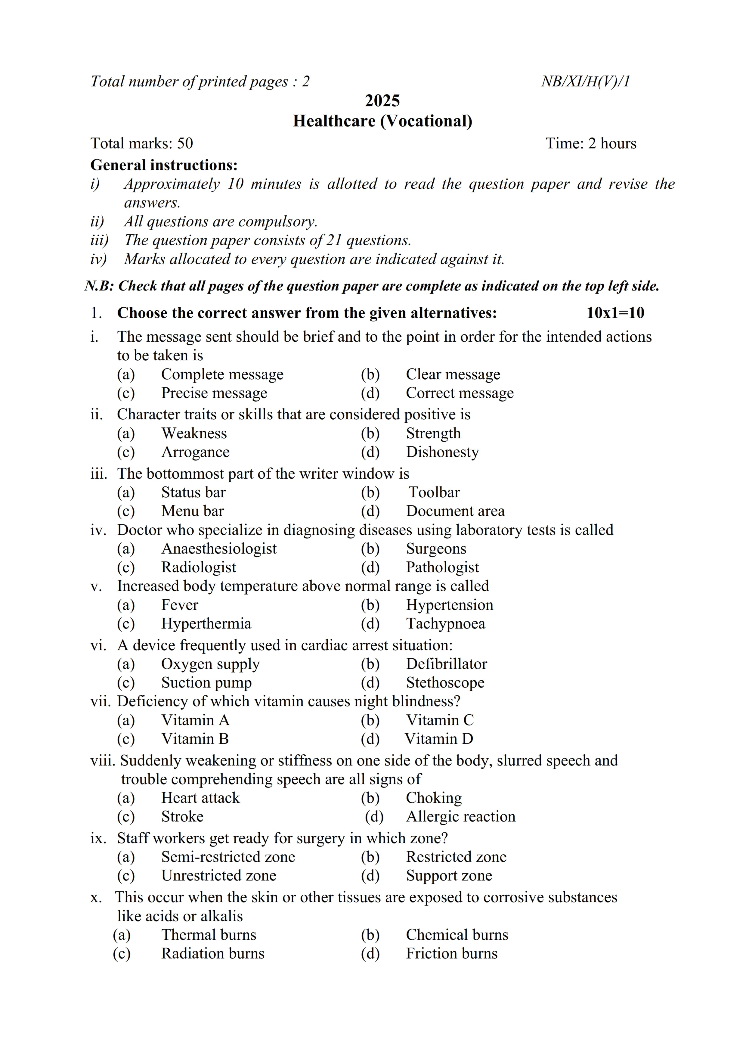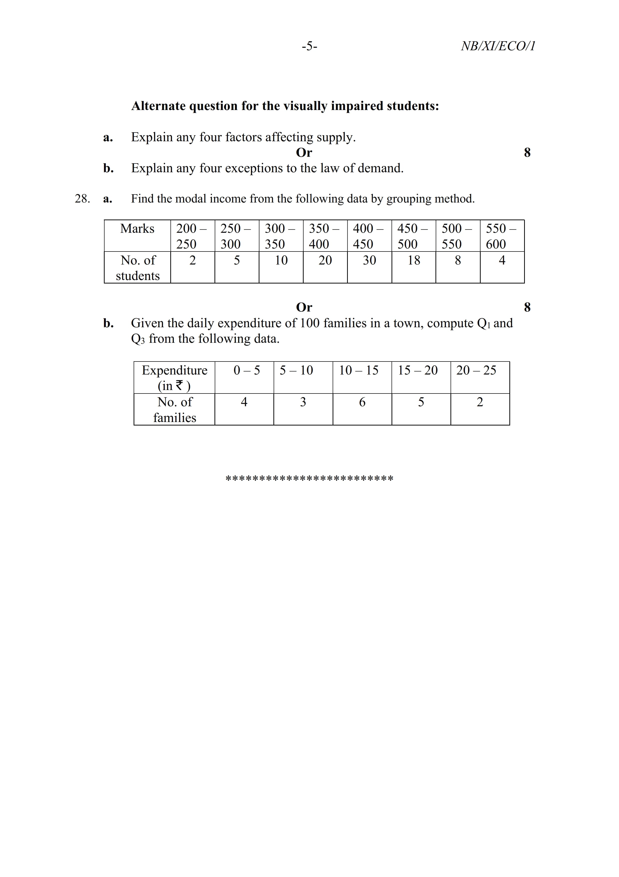 - NBSE Class 11 Question Paper