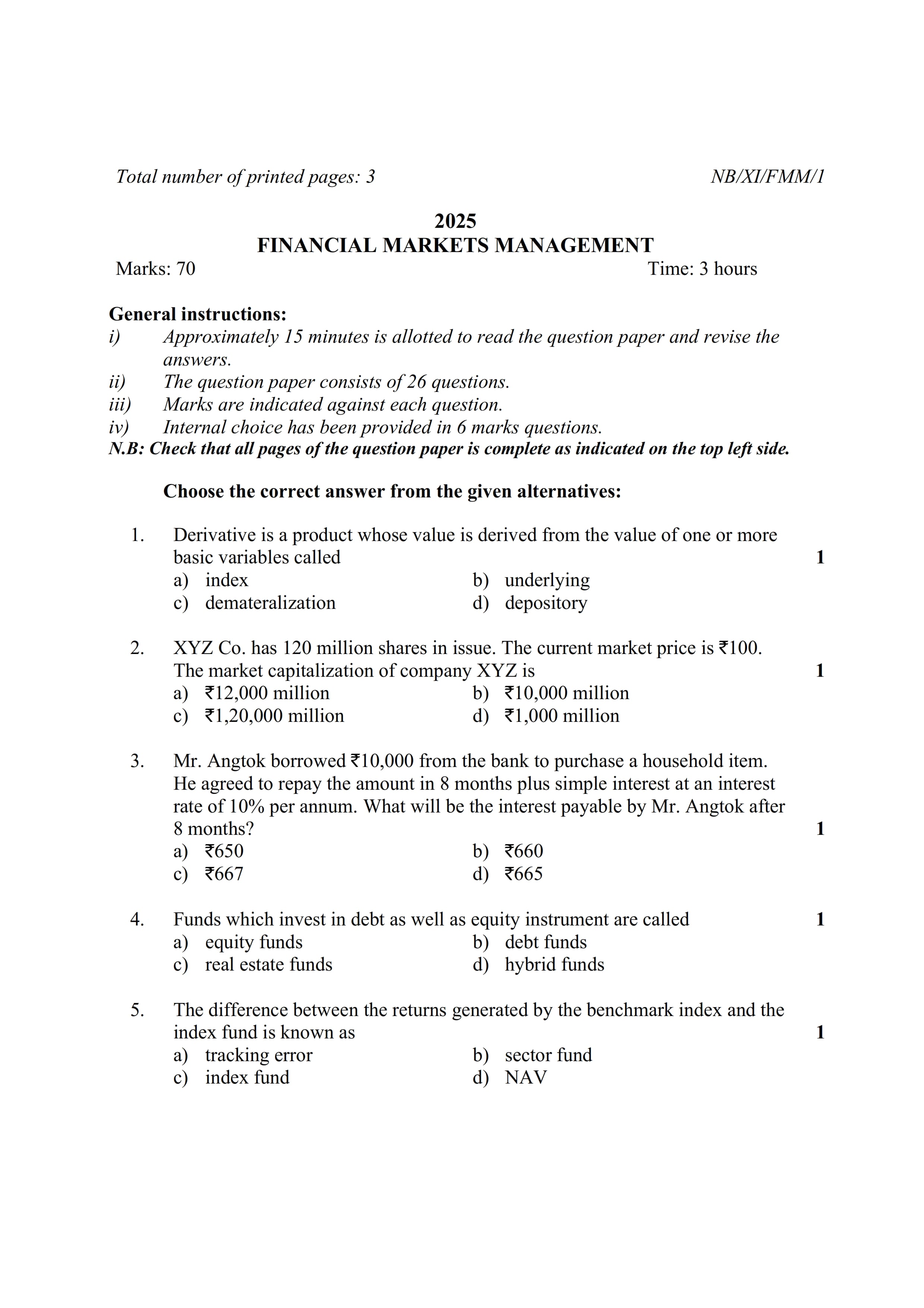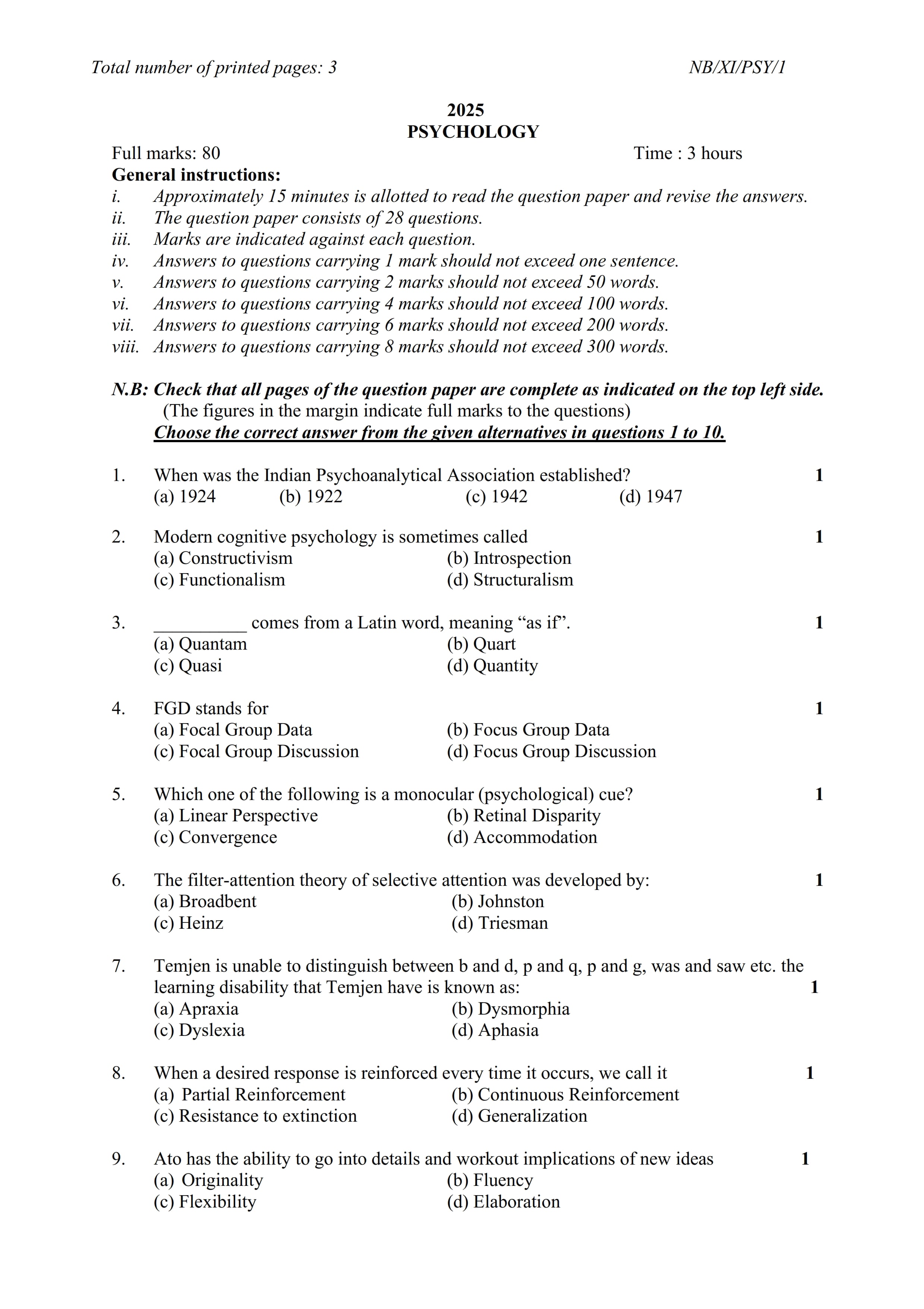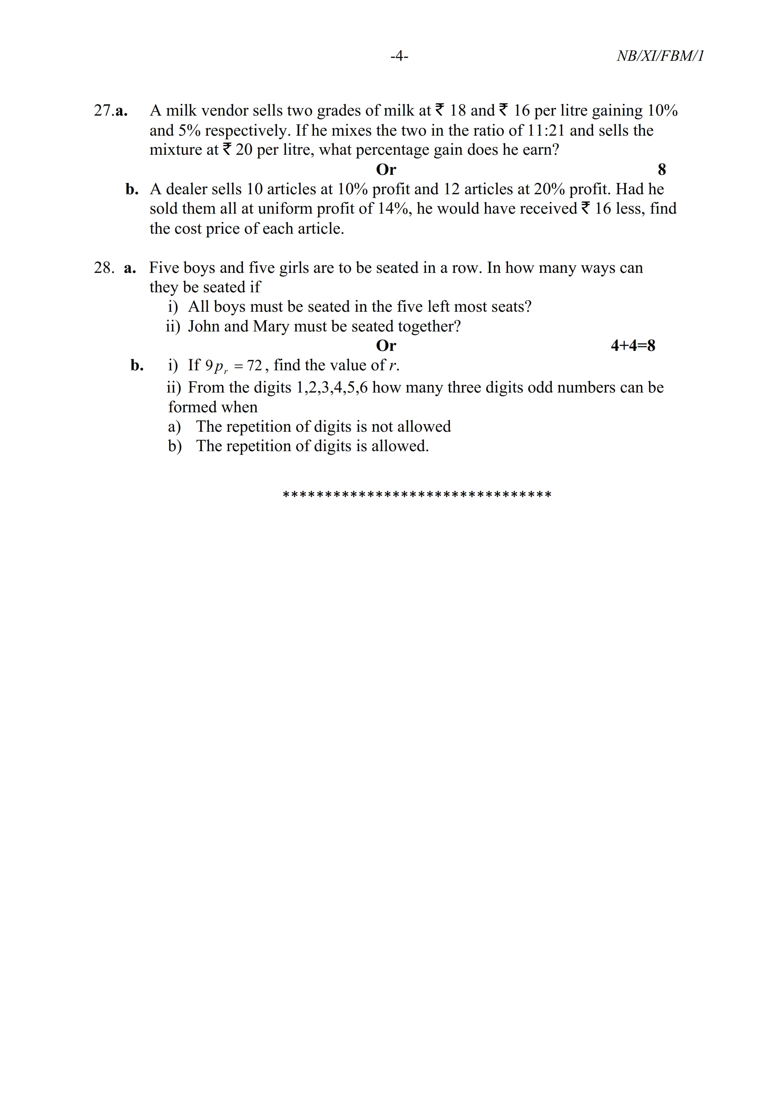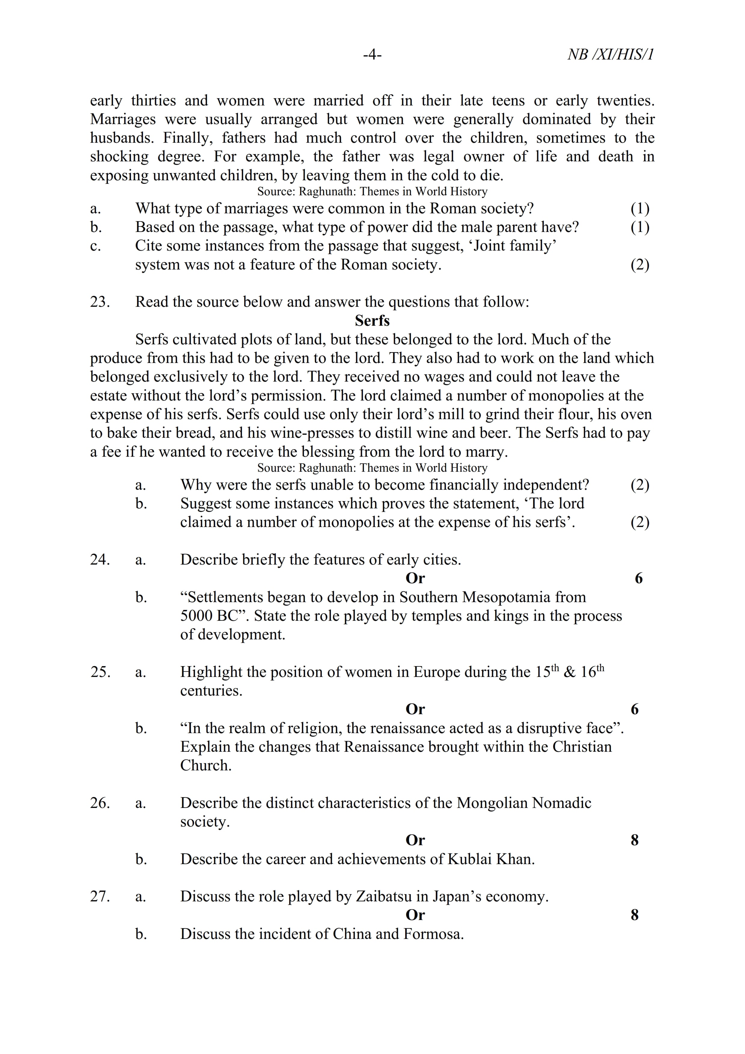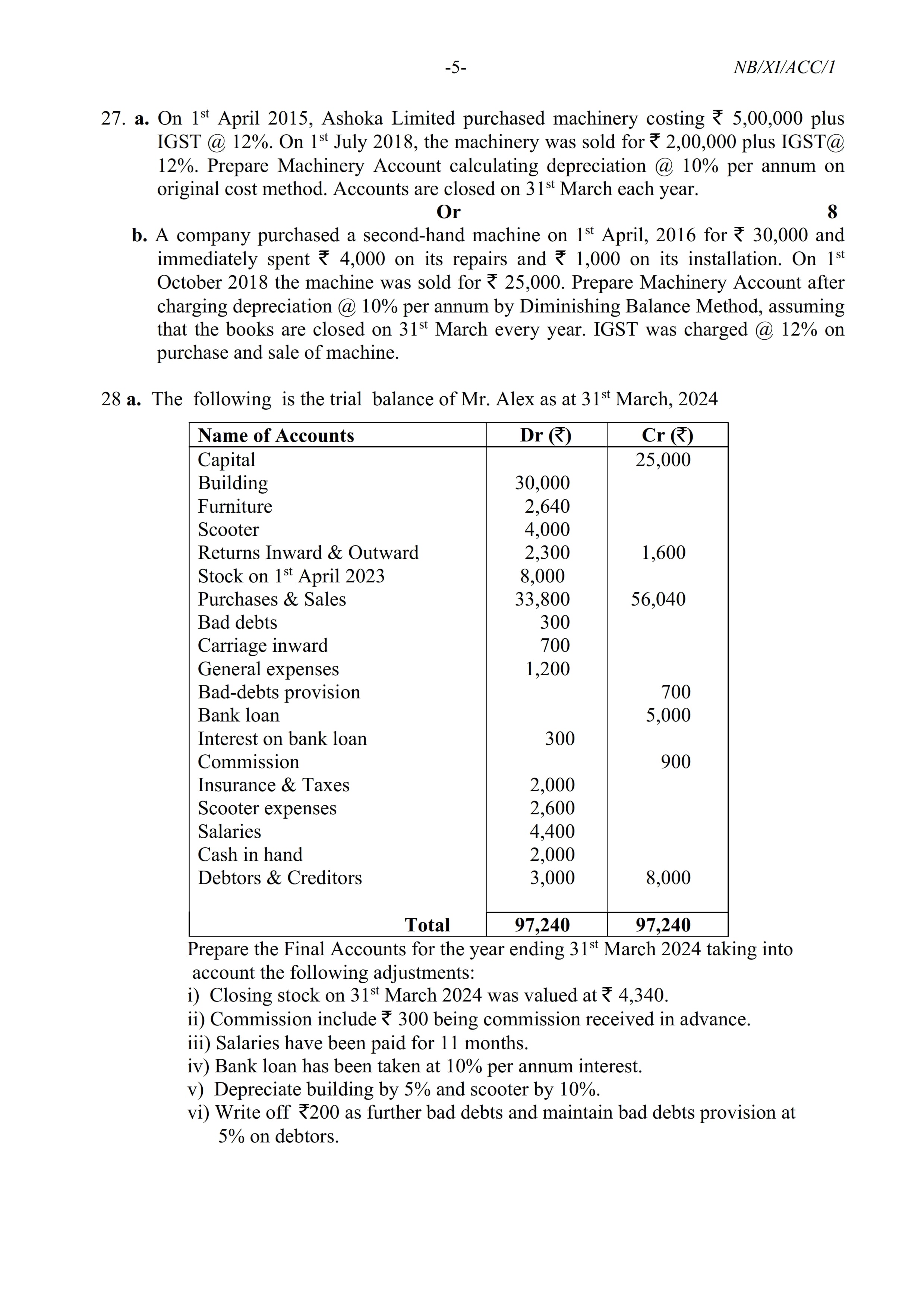 - NBSE Class 11 Question Paper