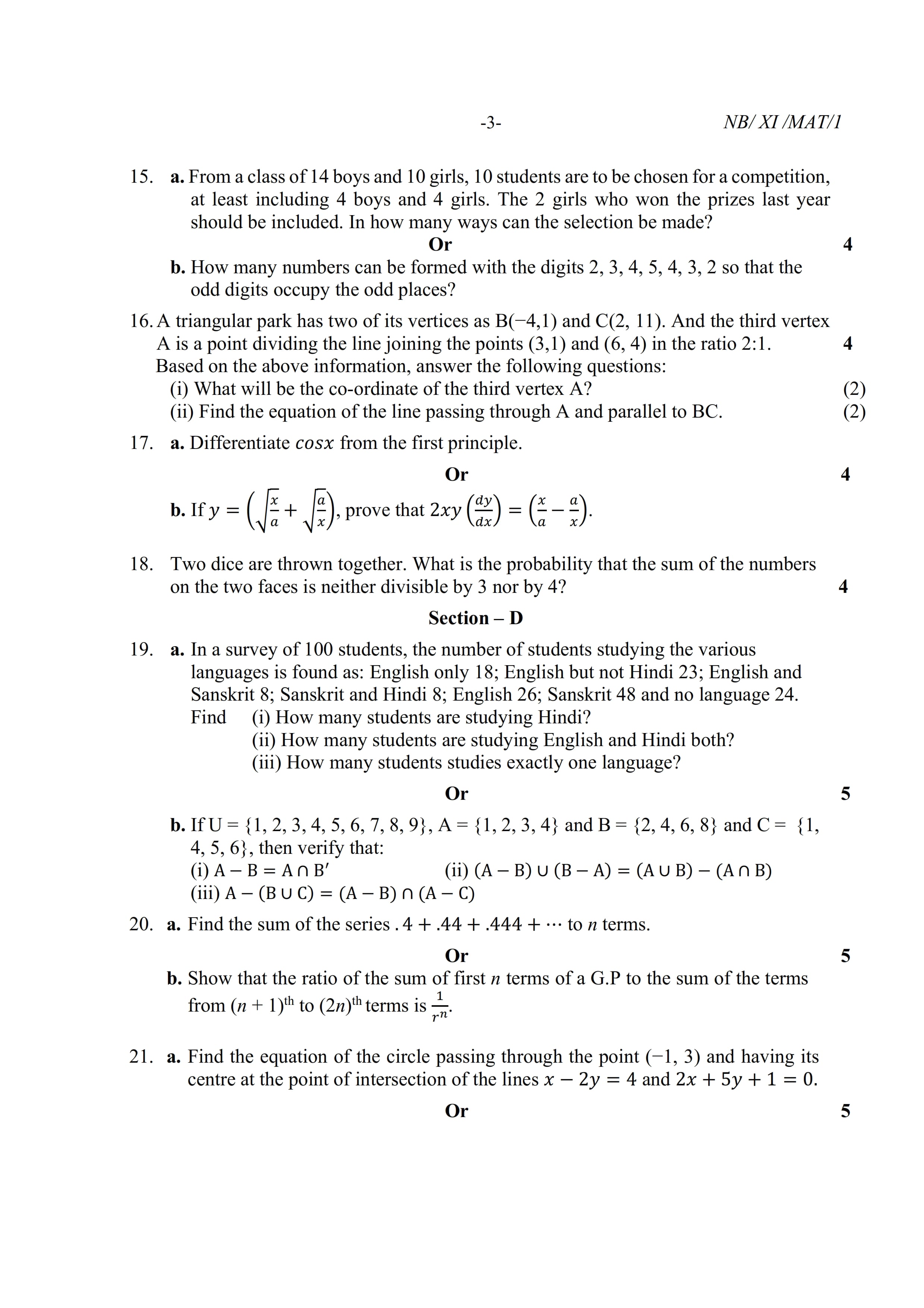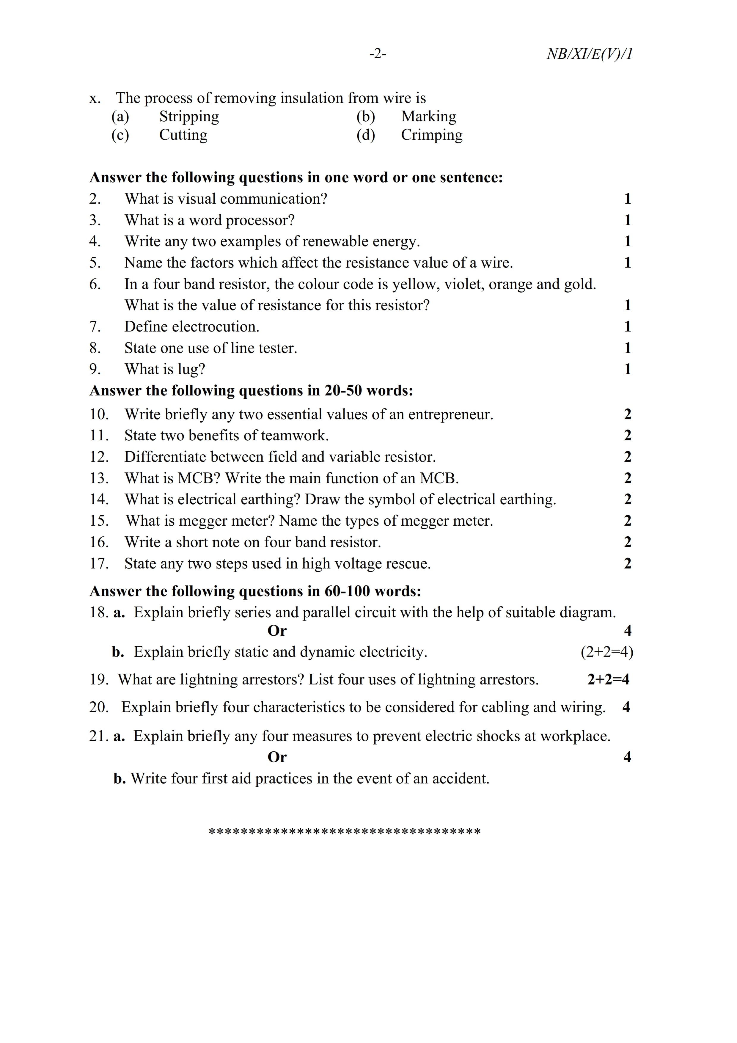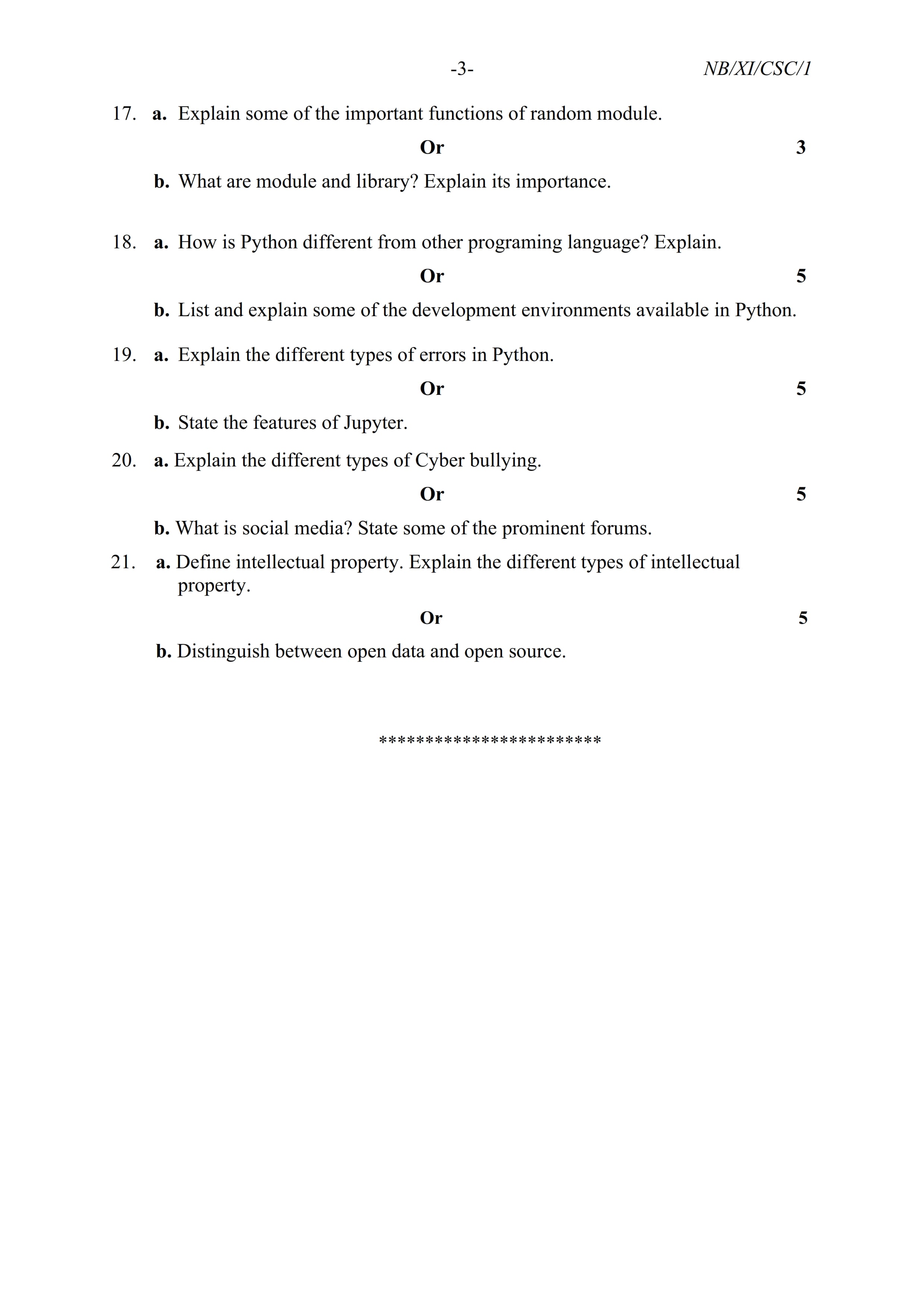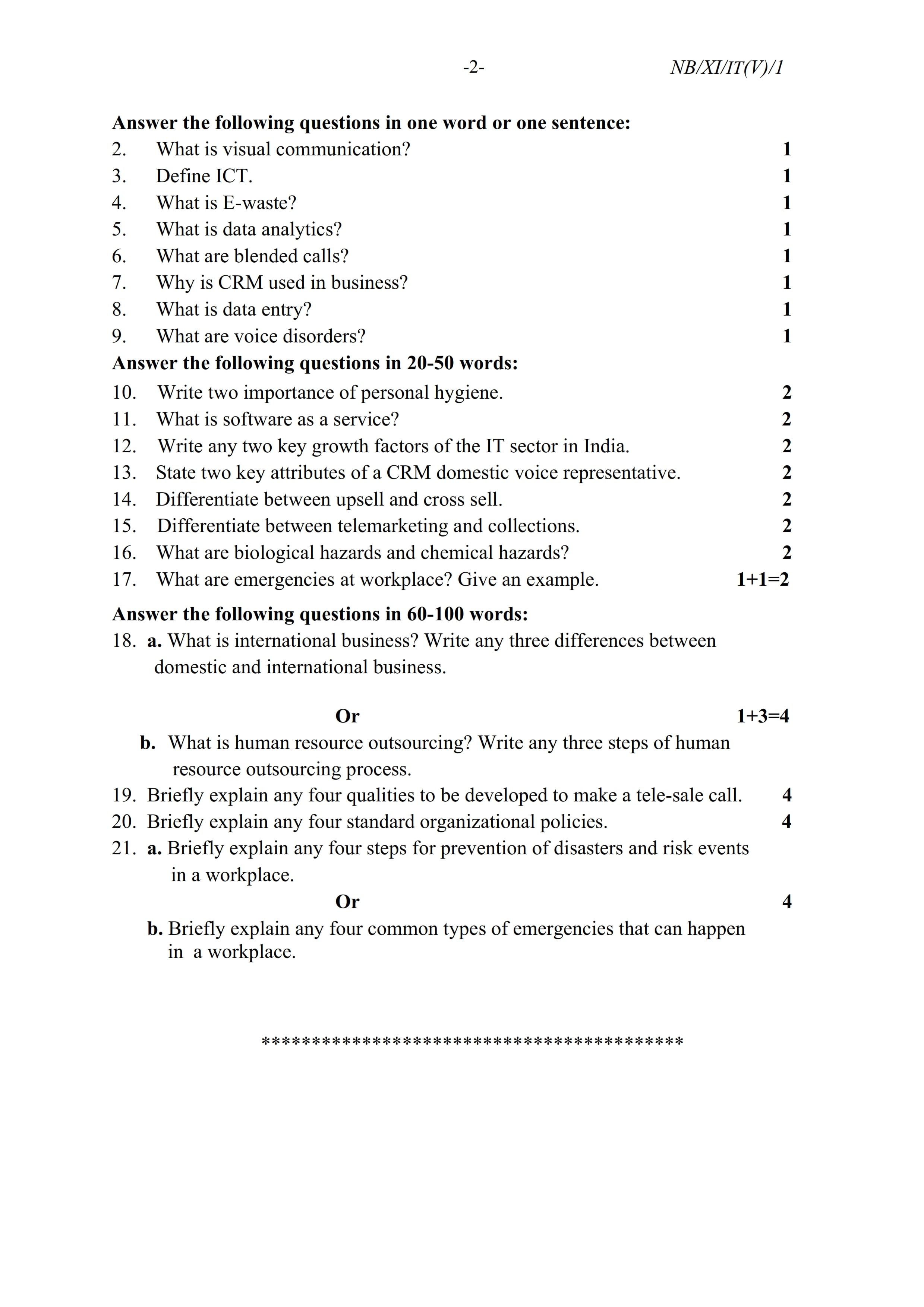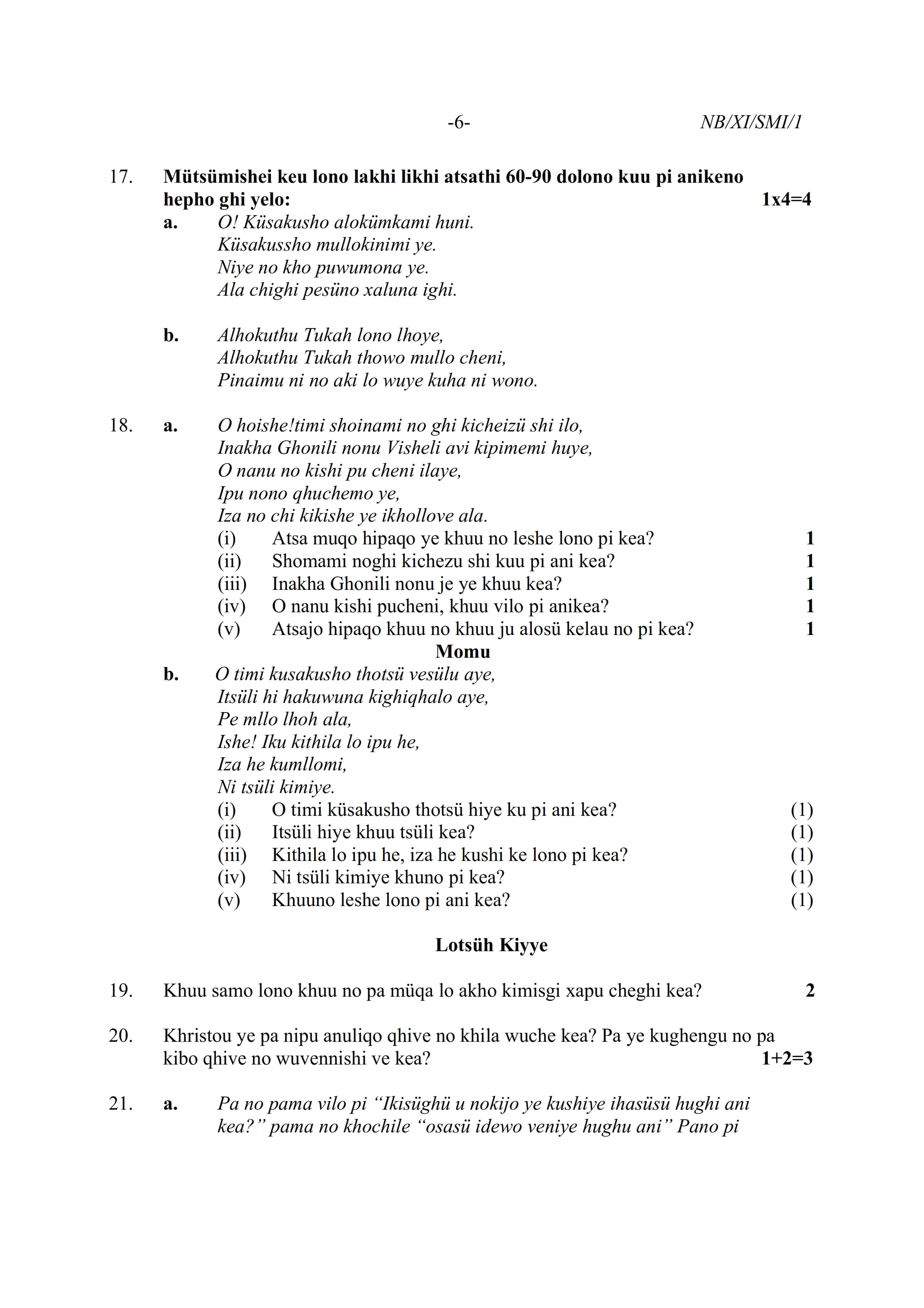 - NBSE Class 11 Question Paper 2021