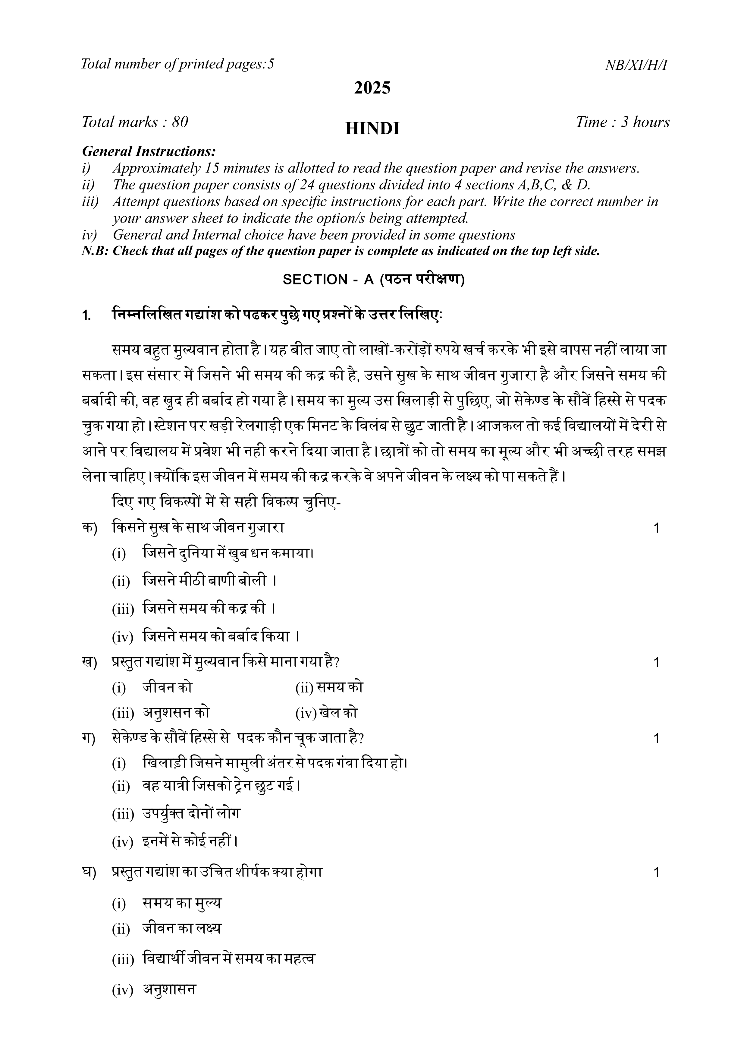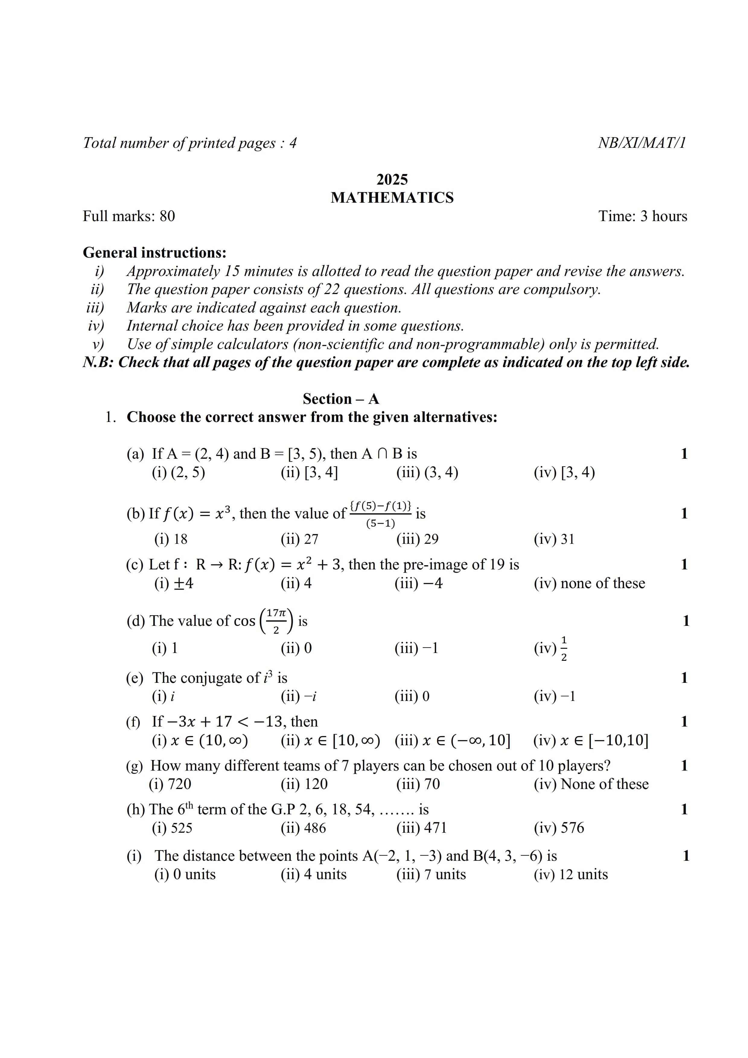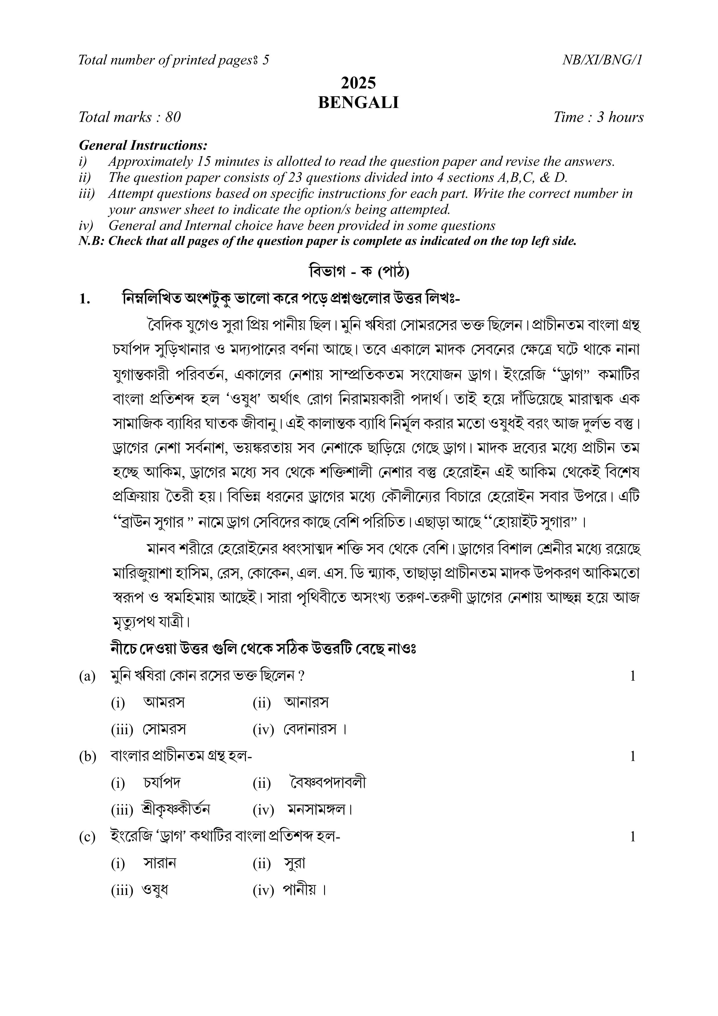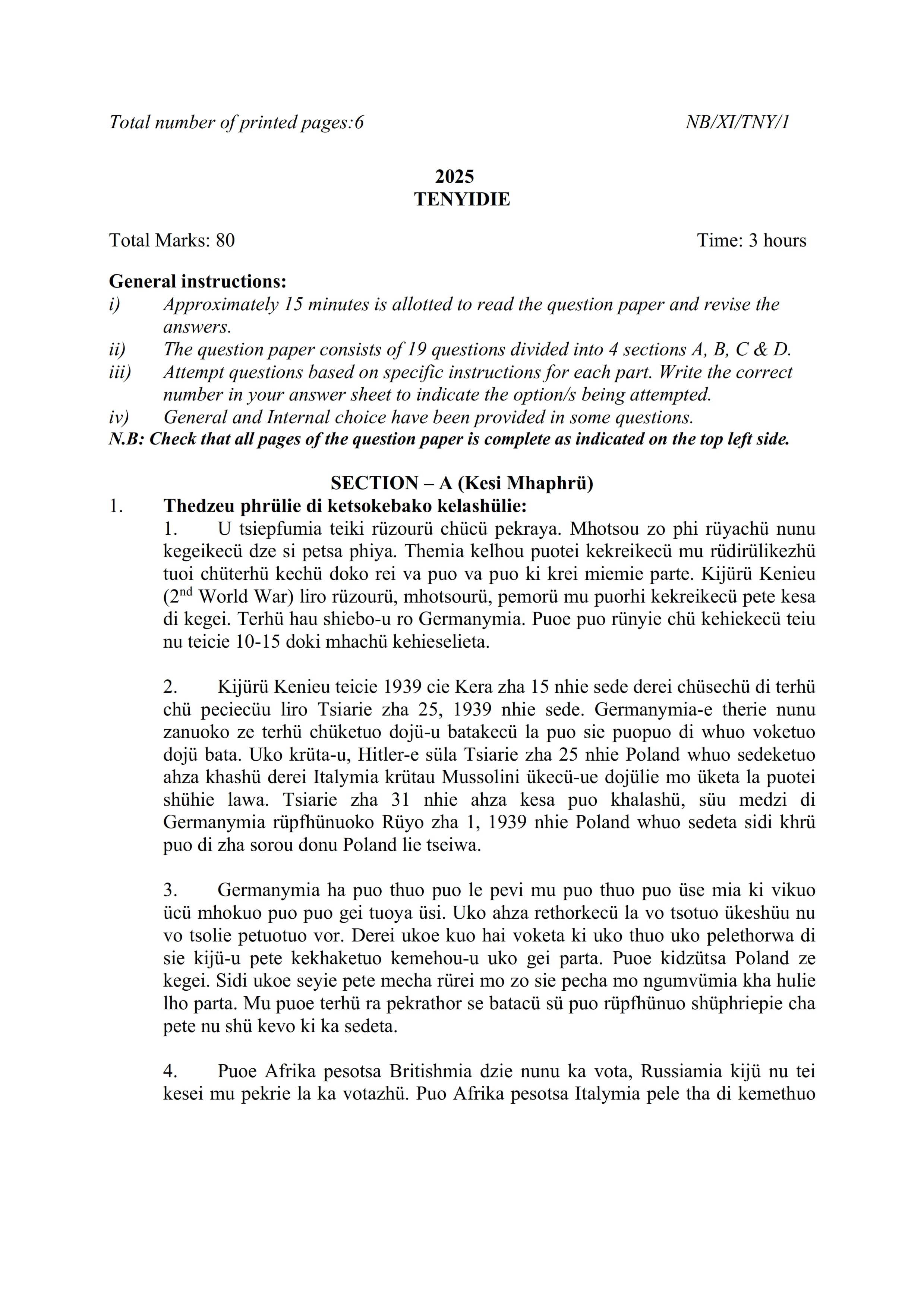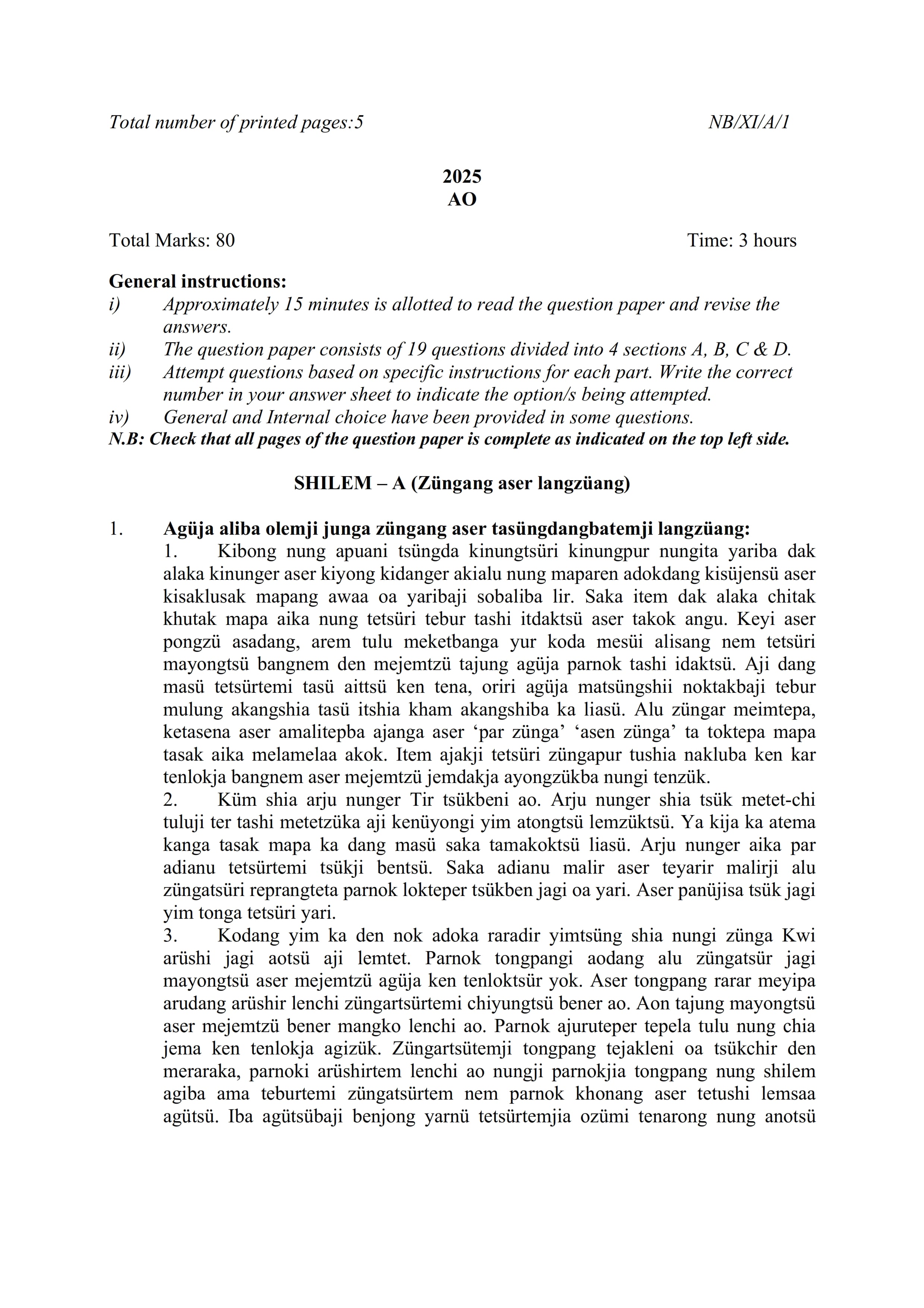 - NBSE Class 11 Question Paper 2025
