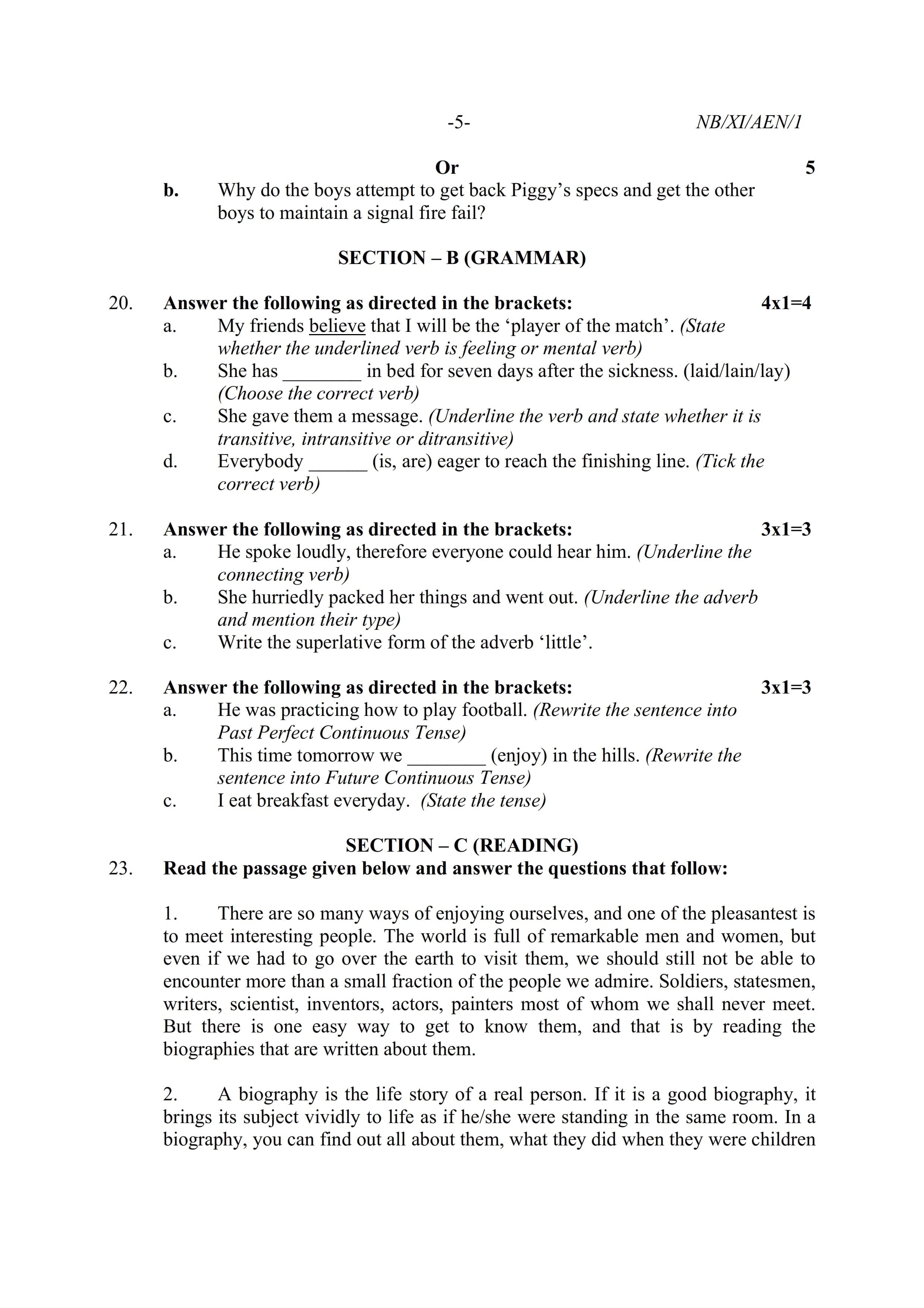 - NBSE Class 11 Question Paper 2022