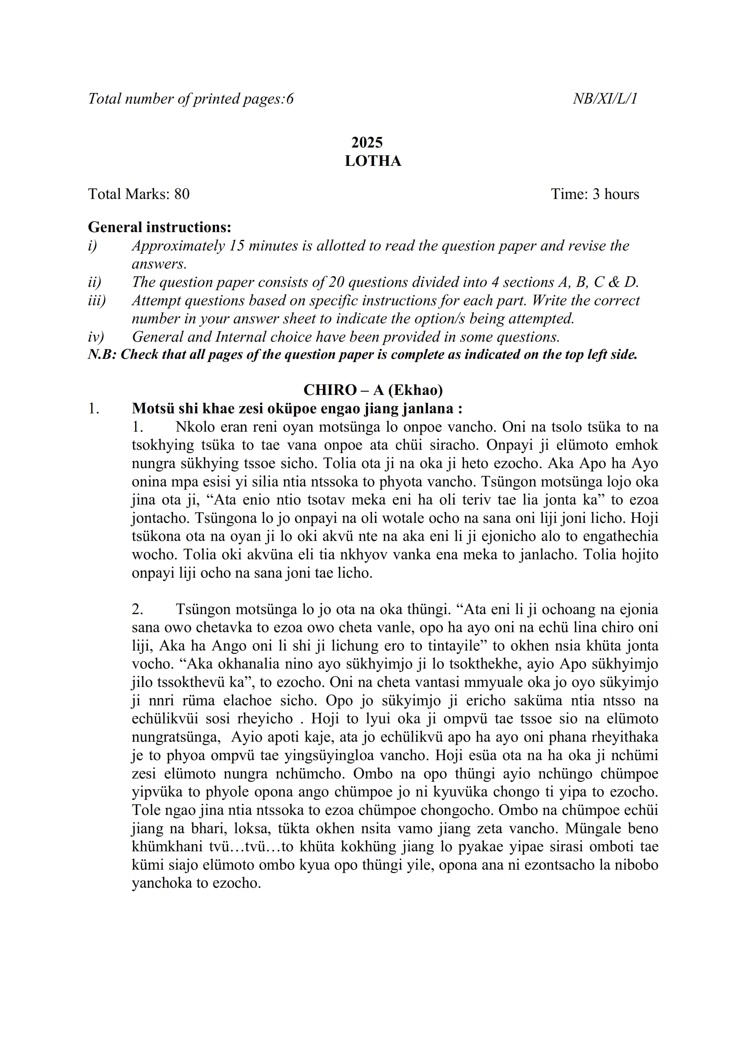 Students can also download question papers for other classes of the Nagaland Board: