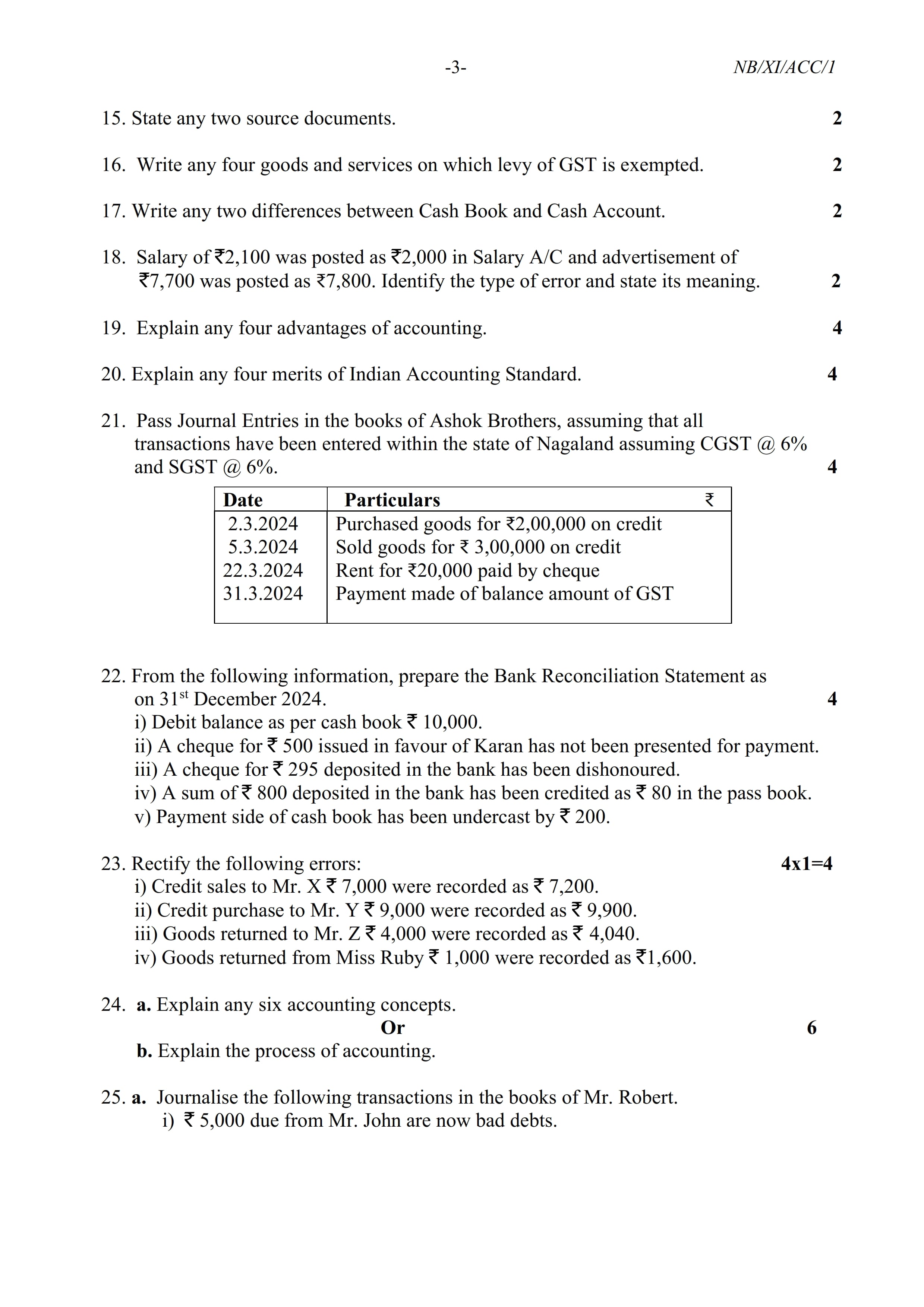 - NBSE Class 11 Question Paper 2024