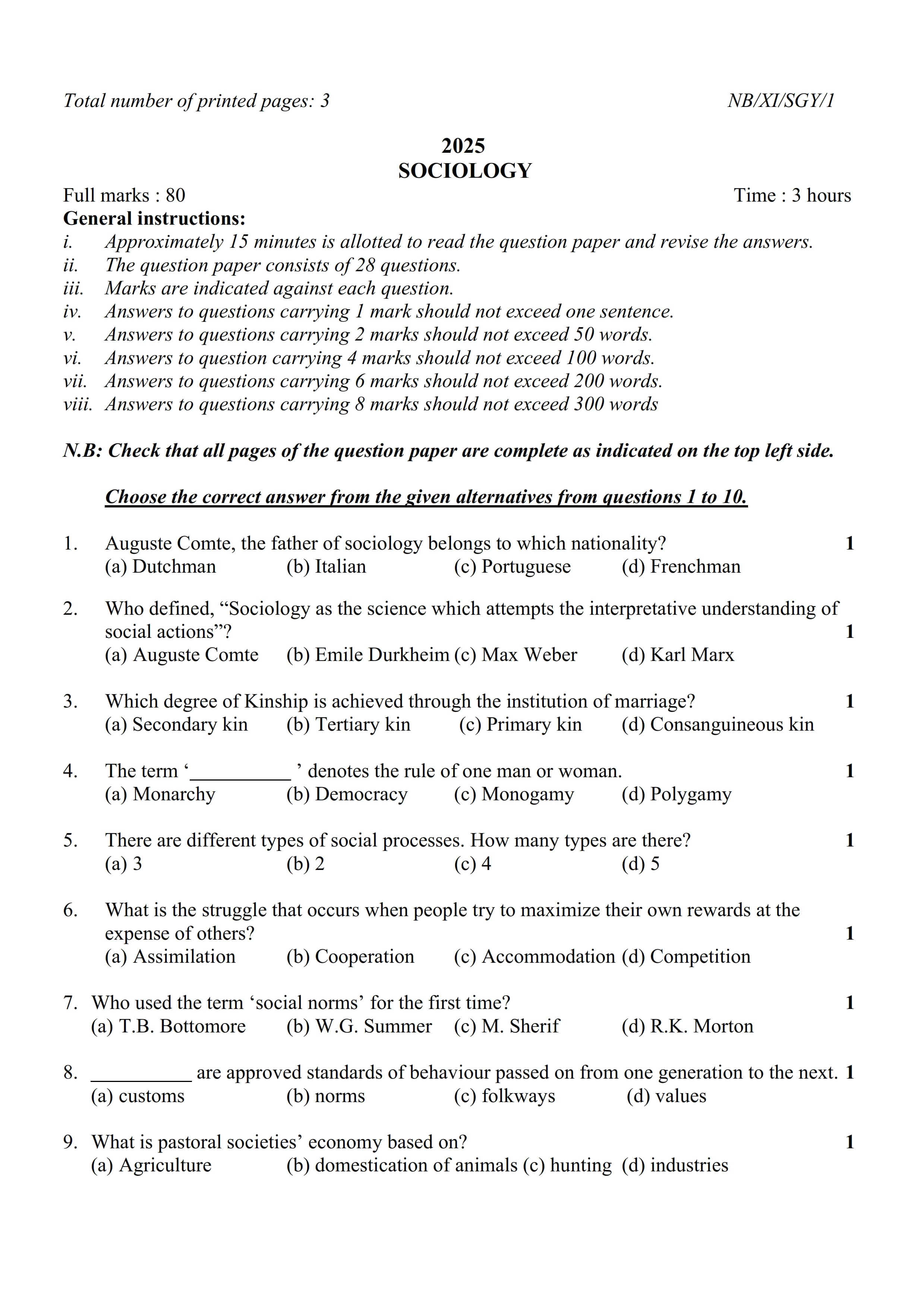 - NBSE Class 9 Question Paper