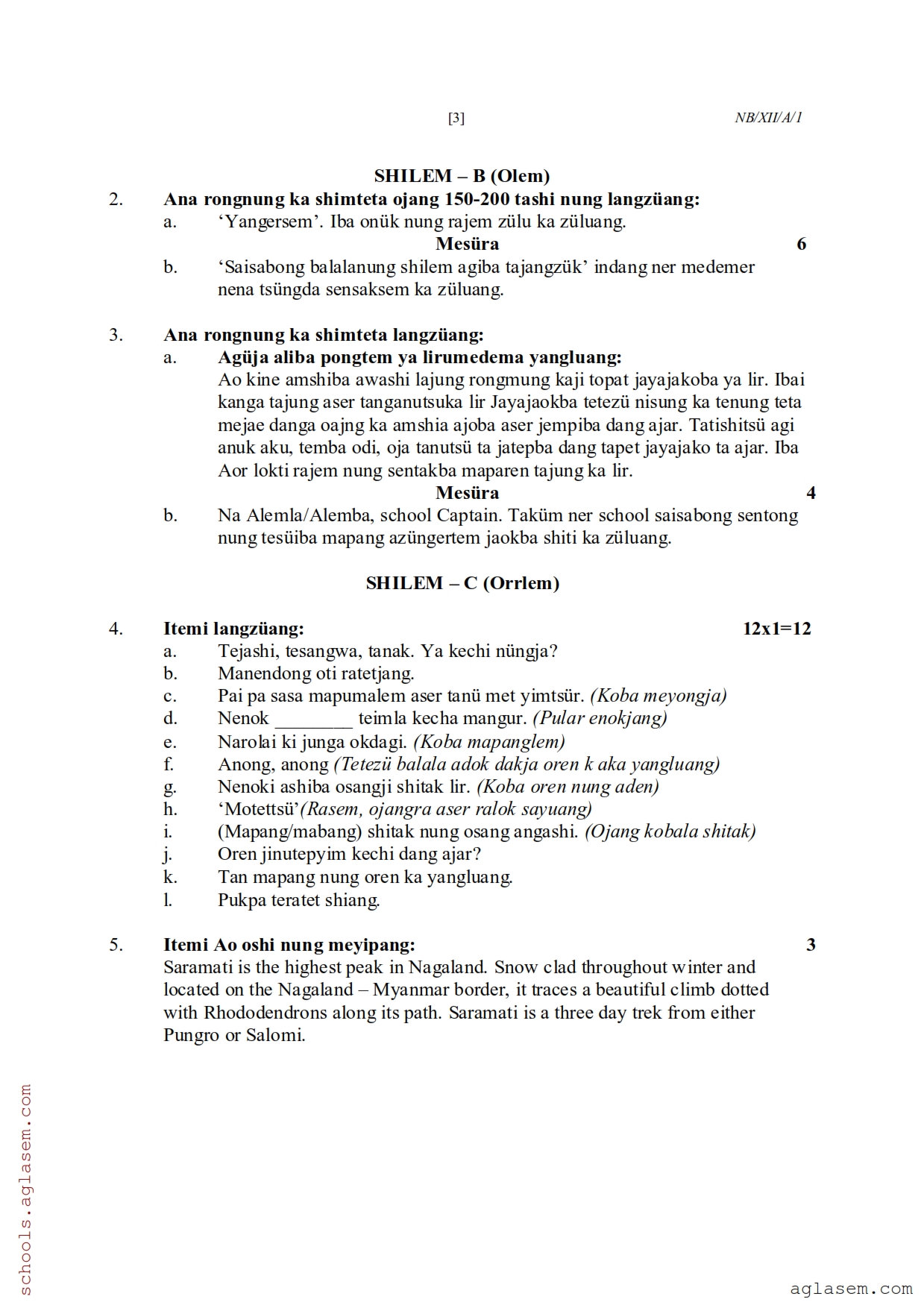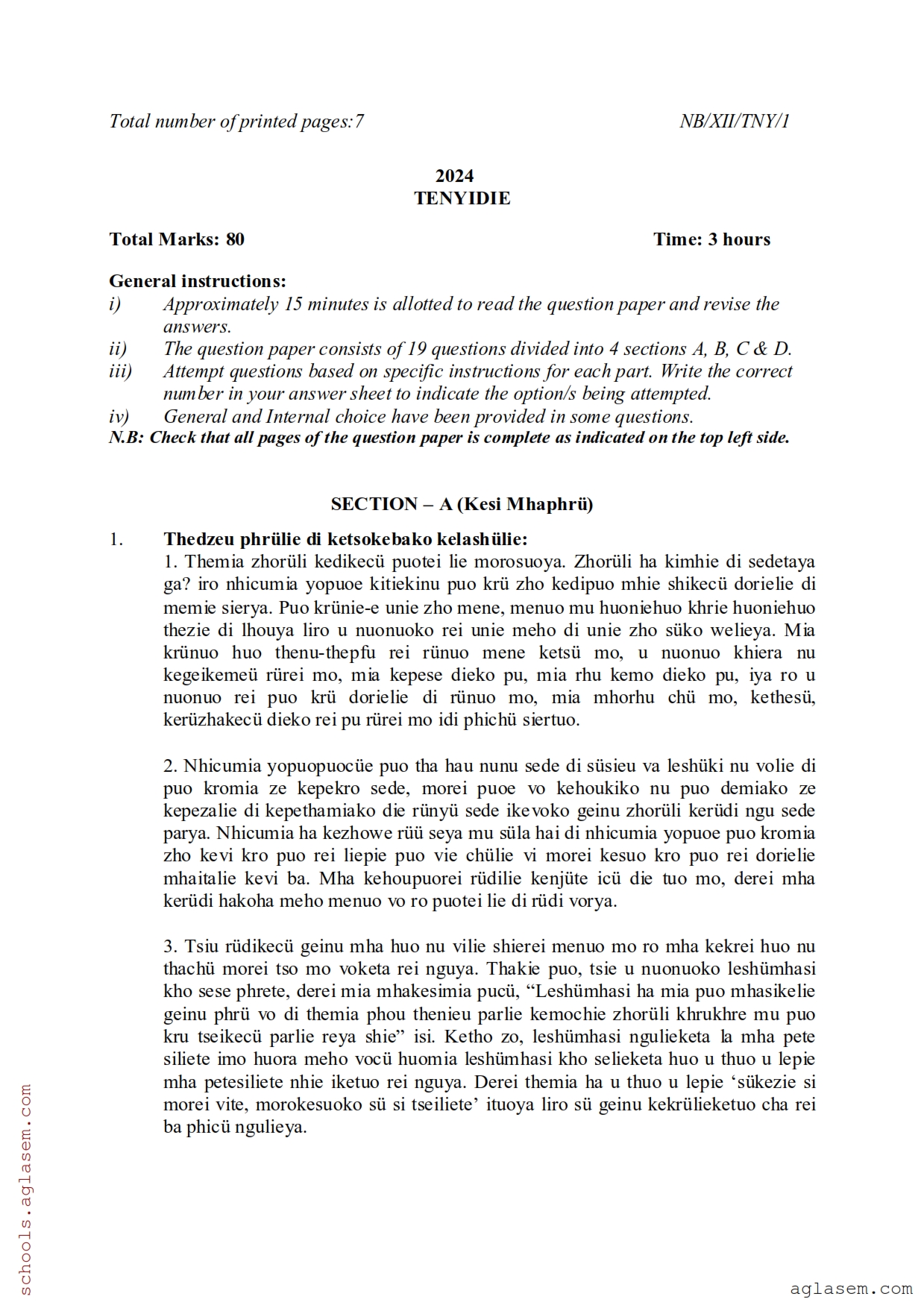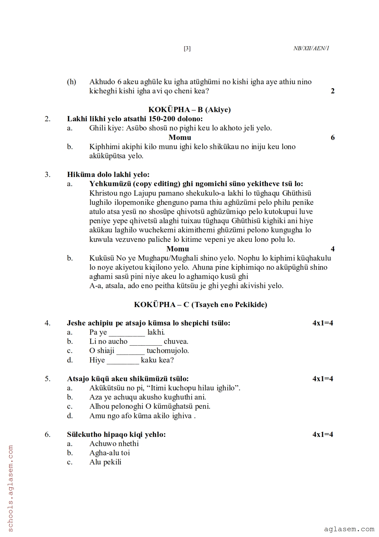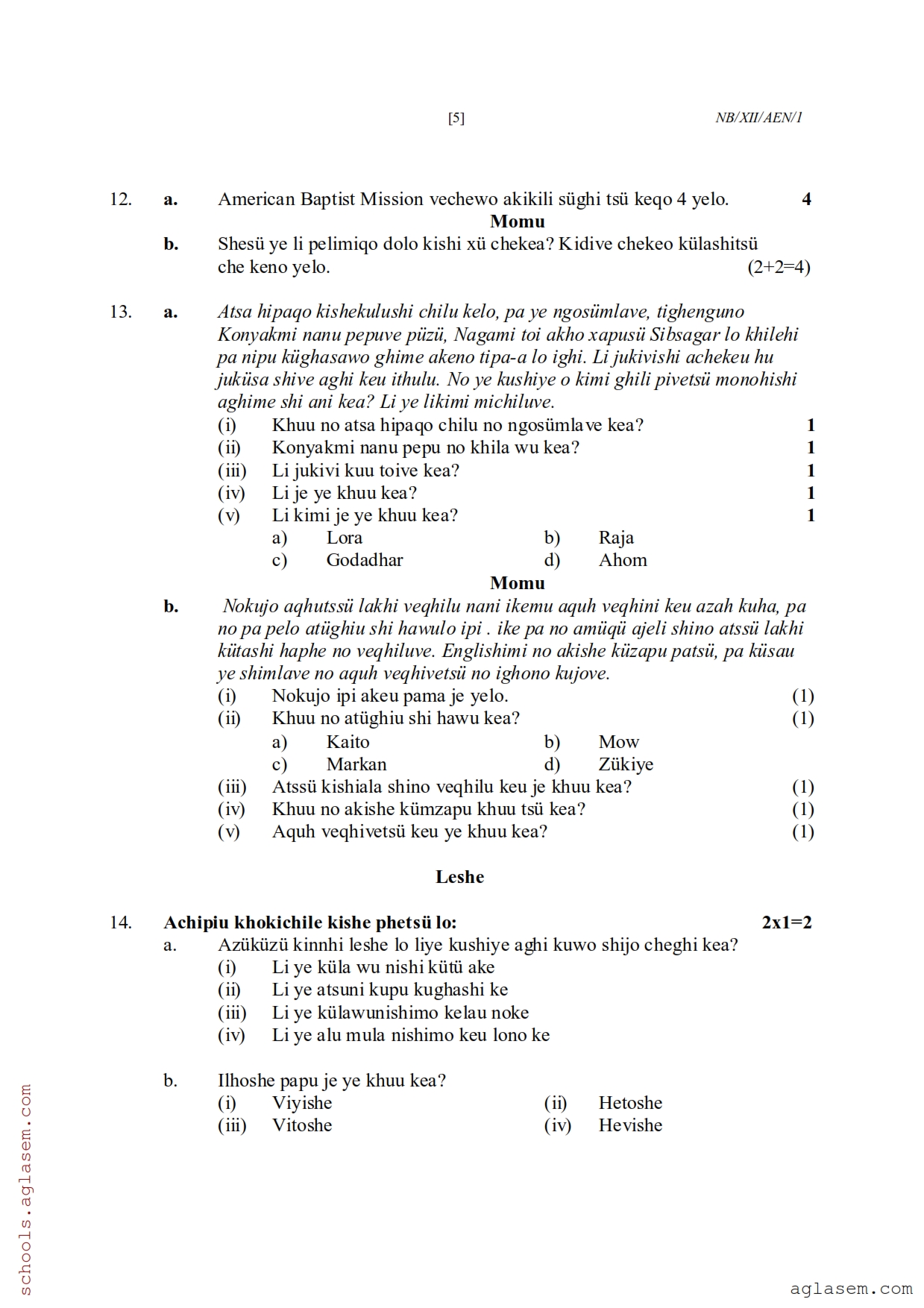 Students can also download more previous year question papers for 12th classes of the Nagaland Board