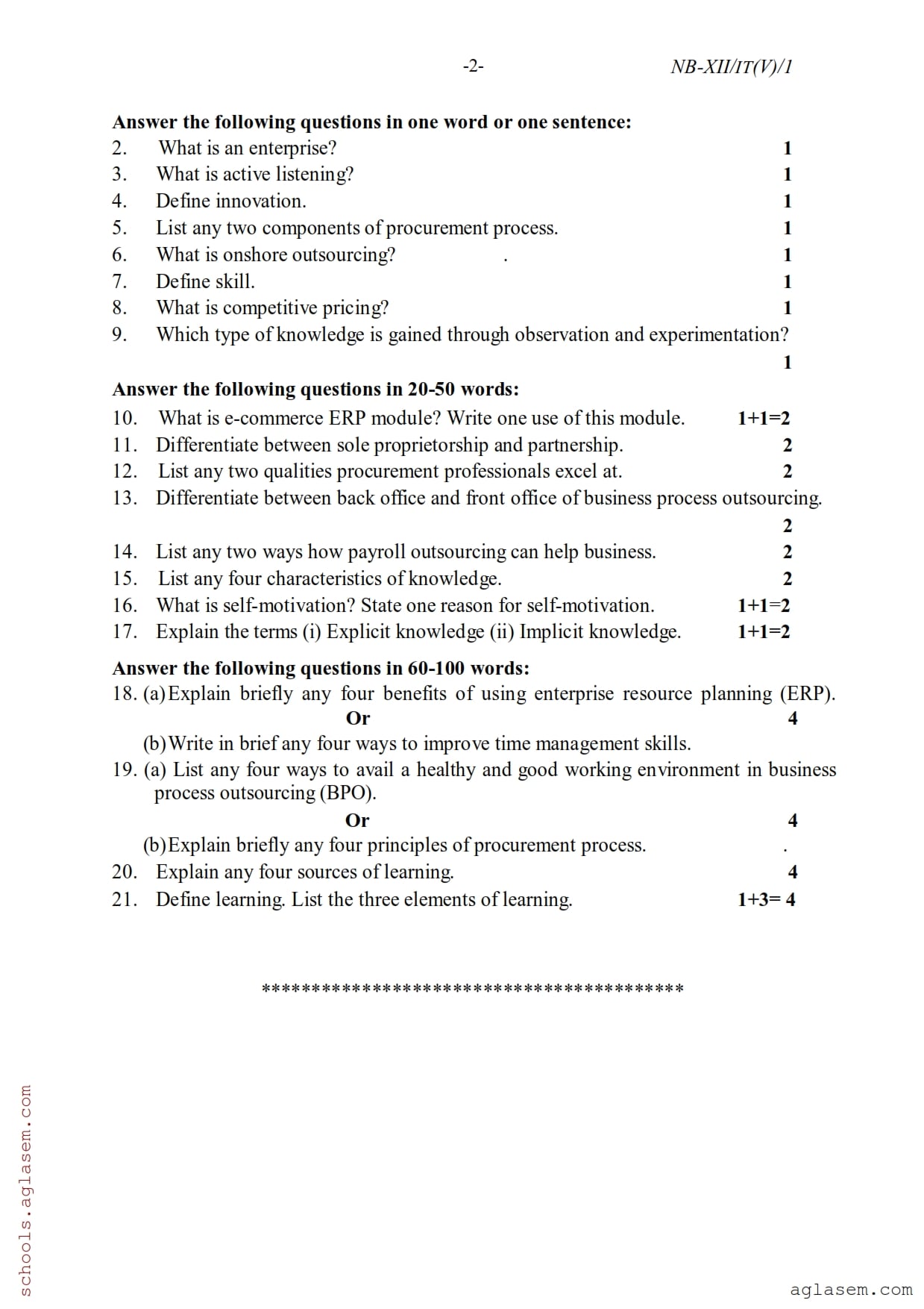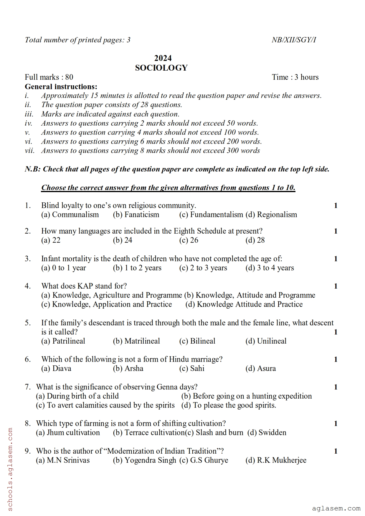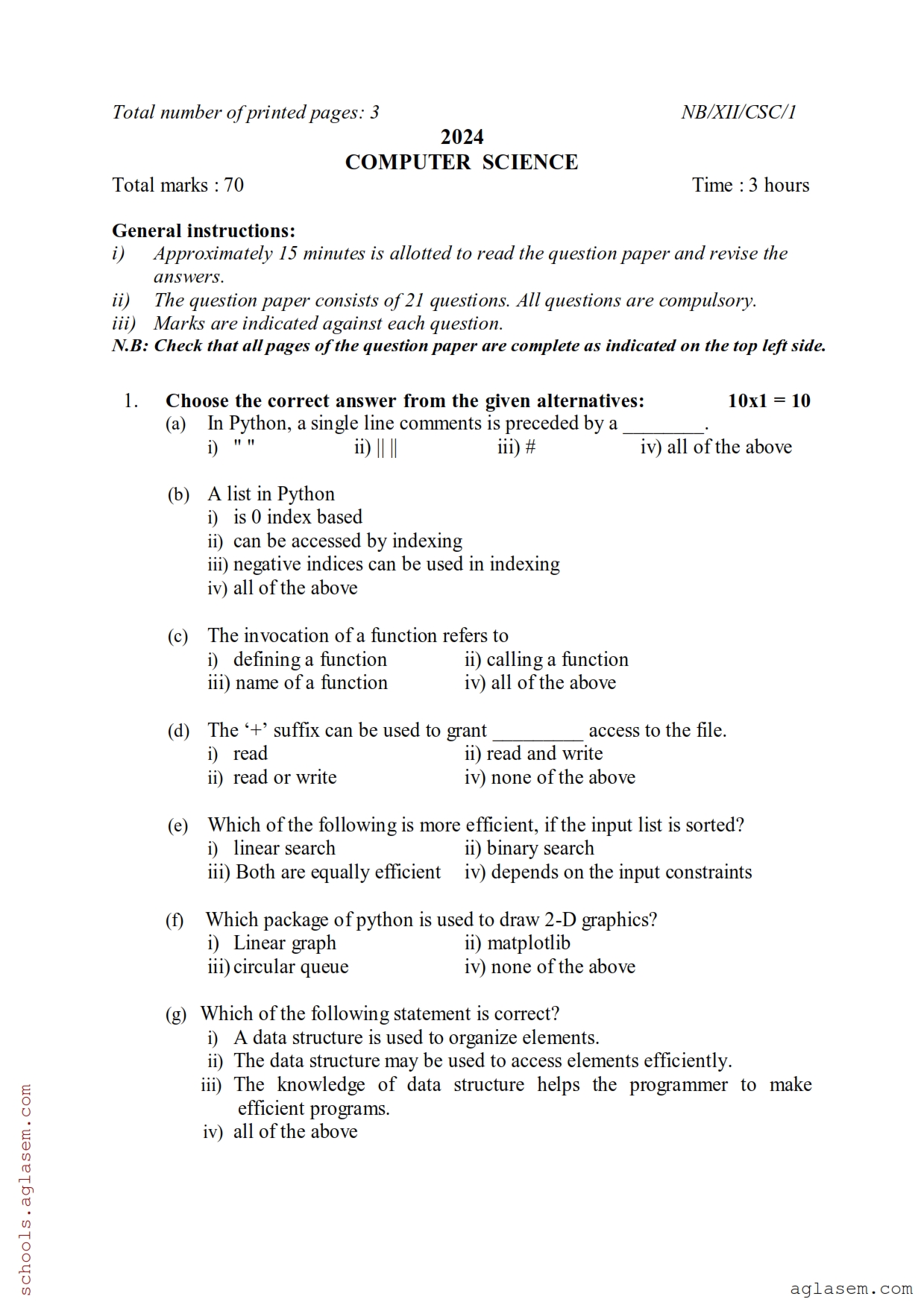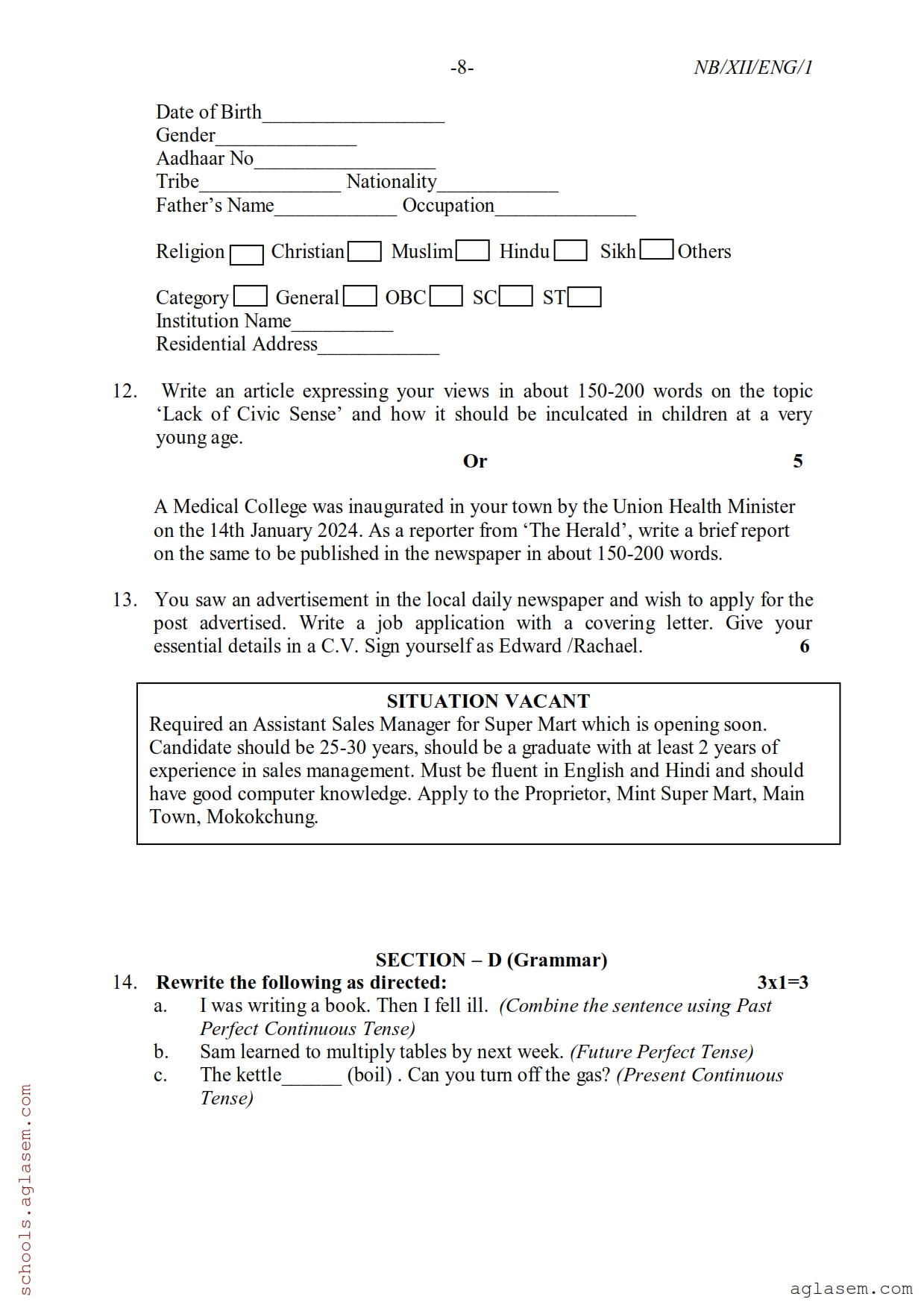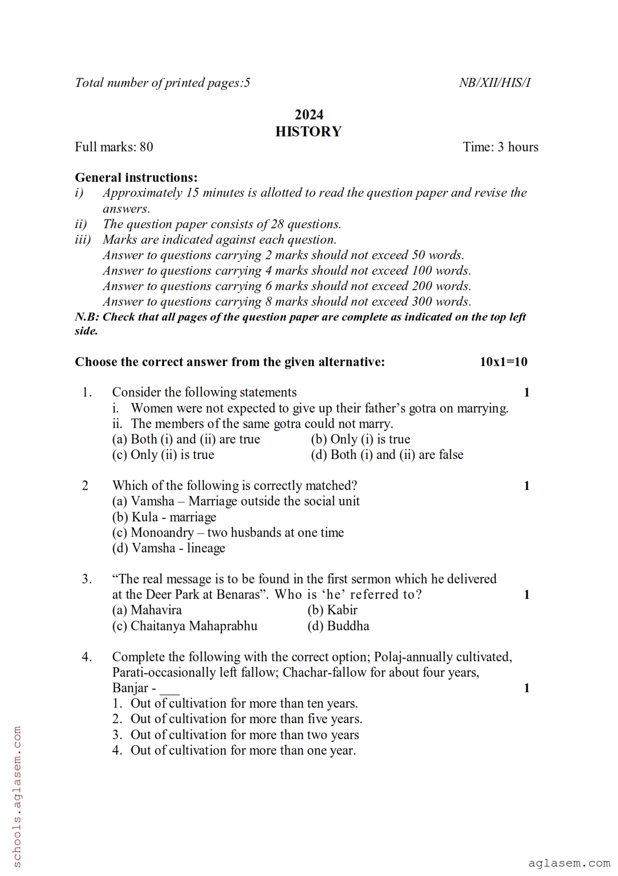 Students can also download more previous year question papers for 12th classes of the Nagaland Board