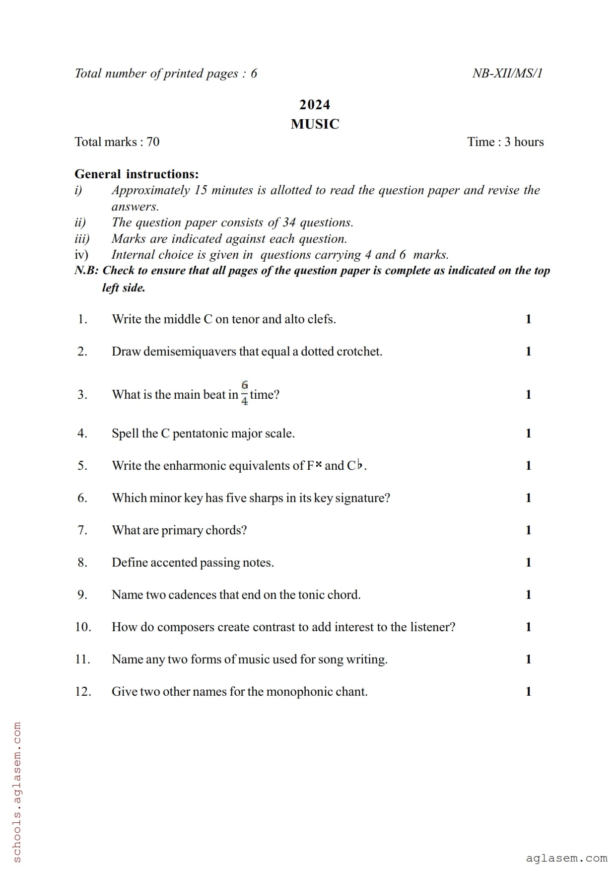 NBSE Class 12 Question Paper 2024 All Subjects View Download