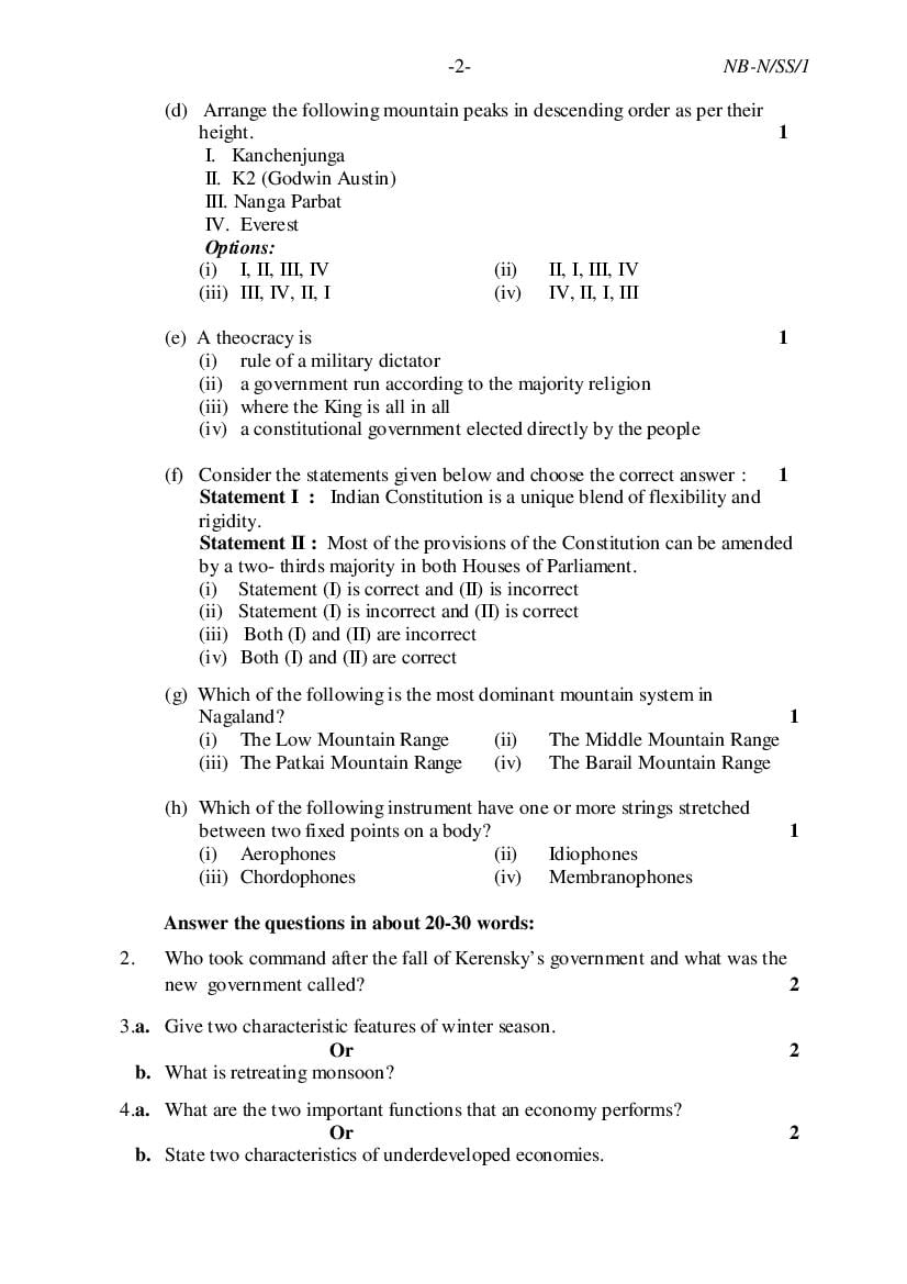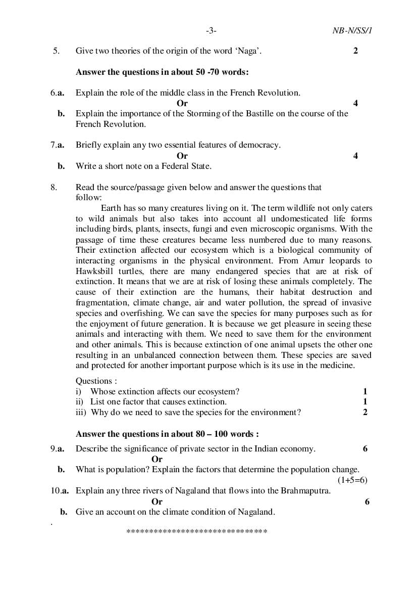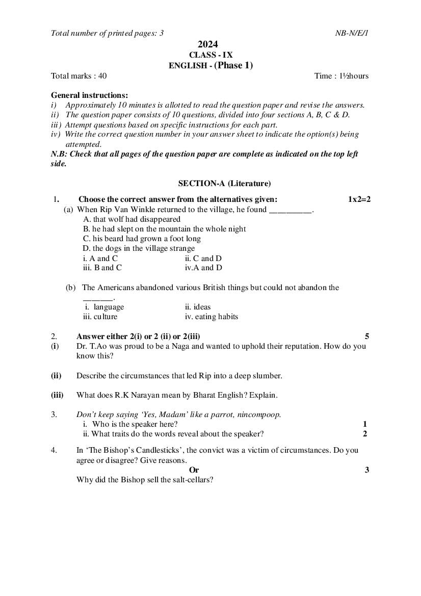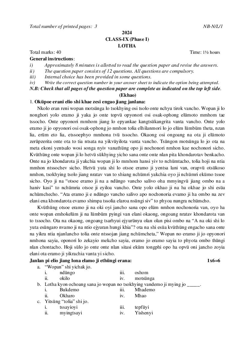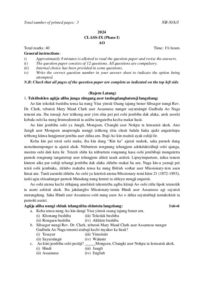 Students can also download more previous year question papers for 9th classes of the Nagaland Board