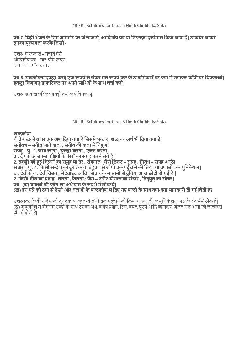 While you can read NCERT Solutions for Class 5 Hindi Ch 6 for all exercises here on aglasem. You can also download this NCERT Solutions PDF to refer ncer question answer at anytime when you study चिटठी का सफर. Here it is.