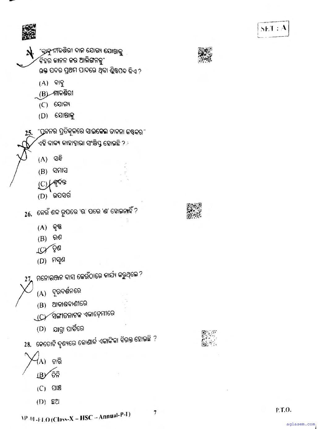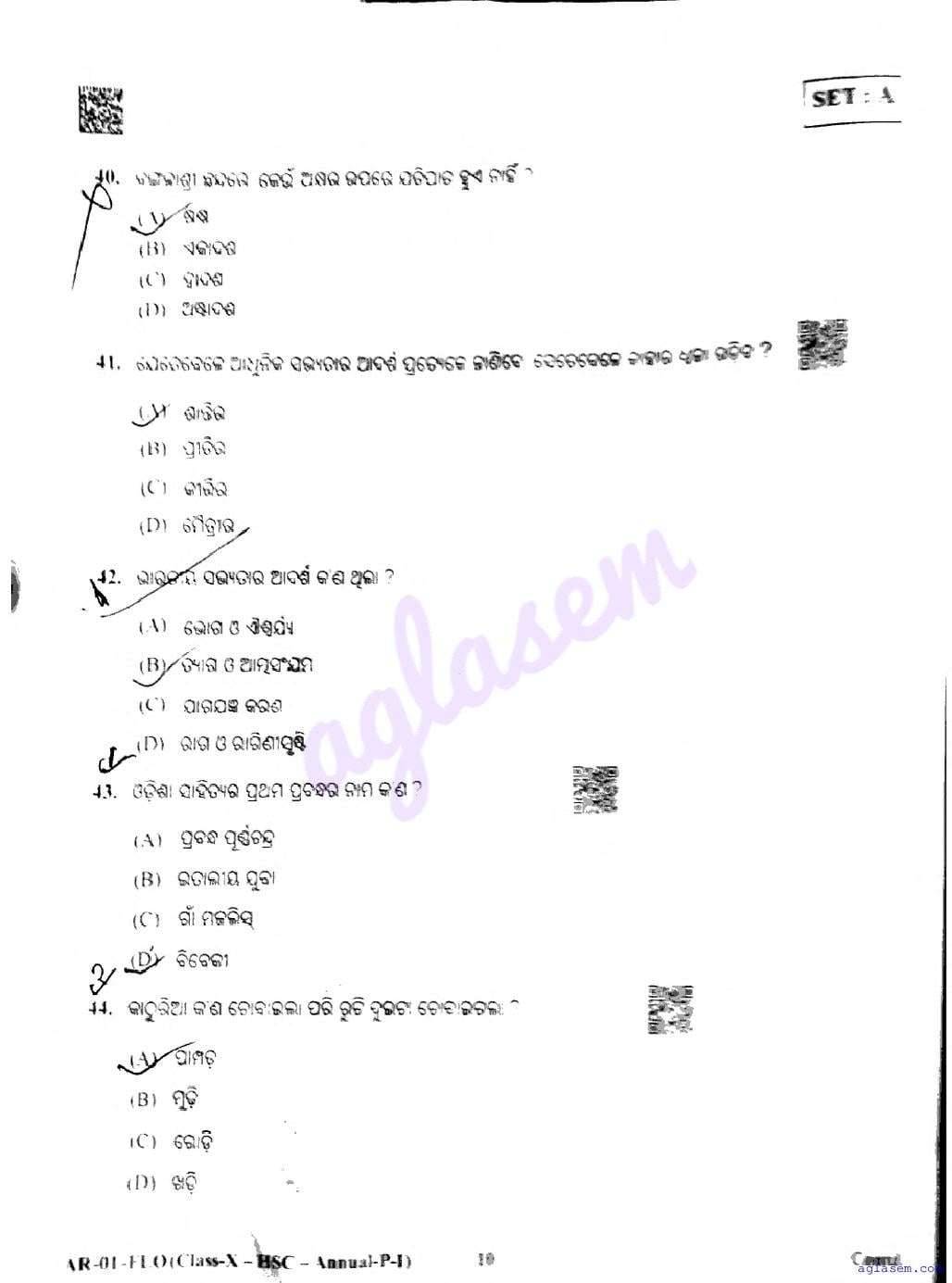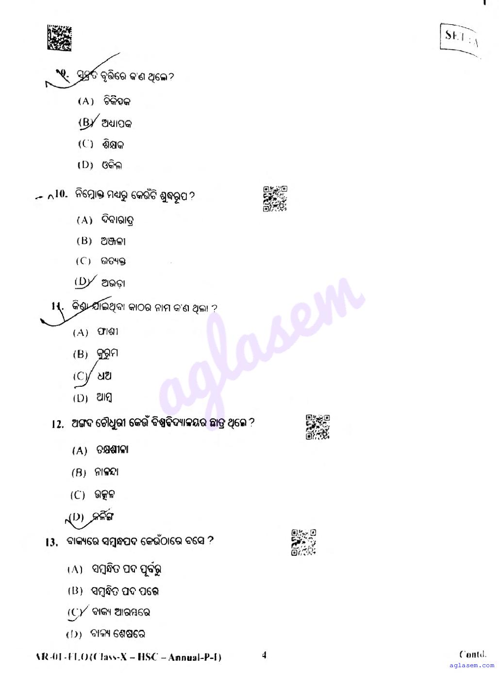 Odisha HSE Class 10 Odia FL Question Paper 2026 has been published here at aglasem. You can now download the 10 Odia FL Question Paper PDF to prepare for your exam. This Odisha 10 Question Paper contains actual questions asked in Odia FL test in previous year class 10 exams. Therefore it is a very useful study material for Odia FL subject which helps you score full marks in 10 exams.