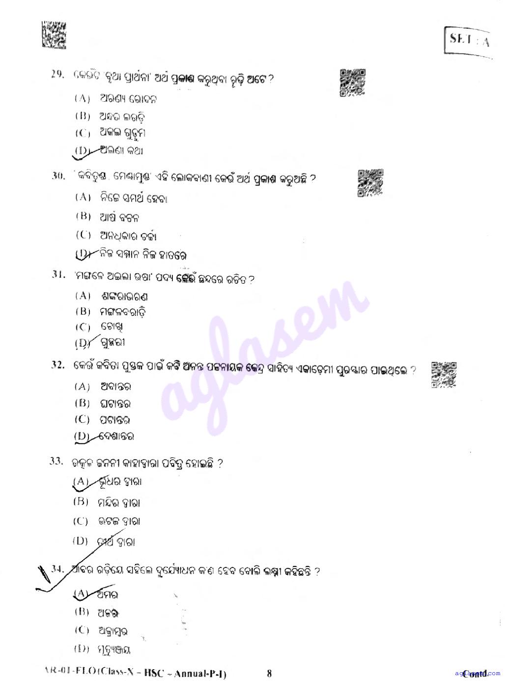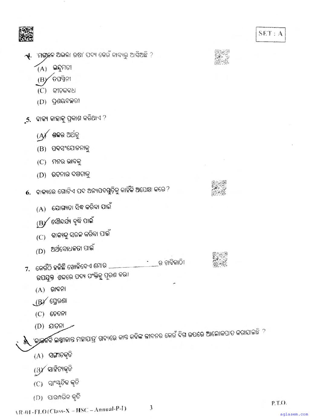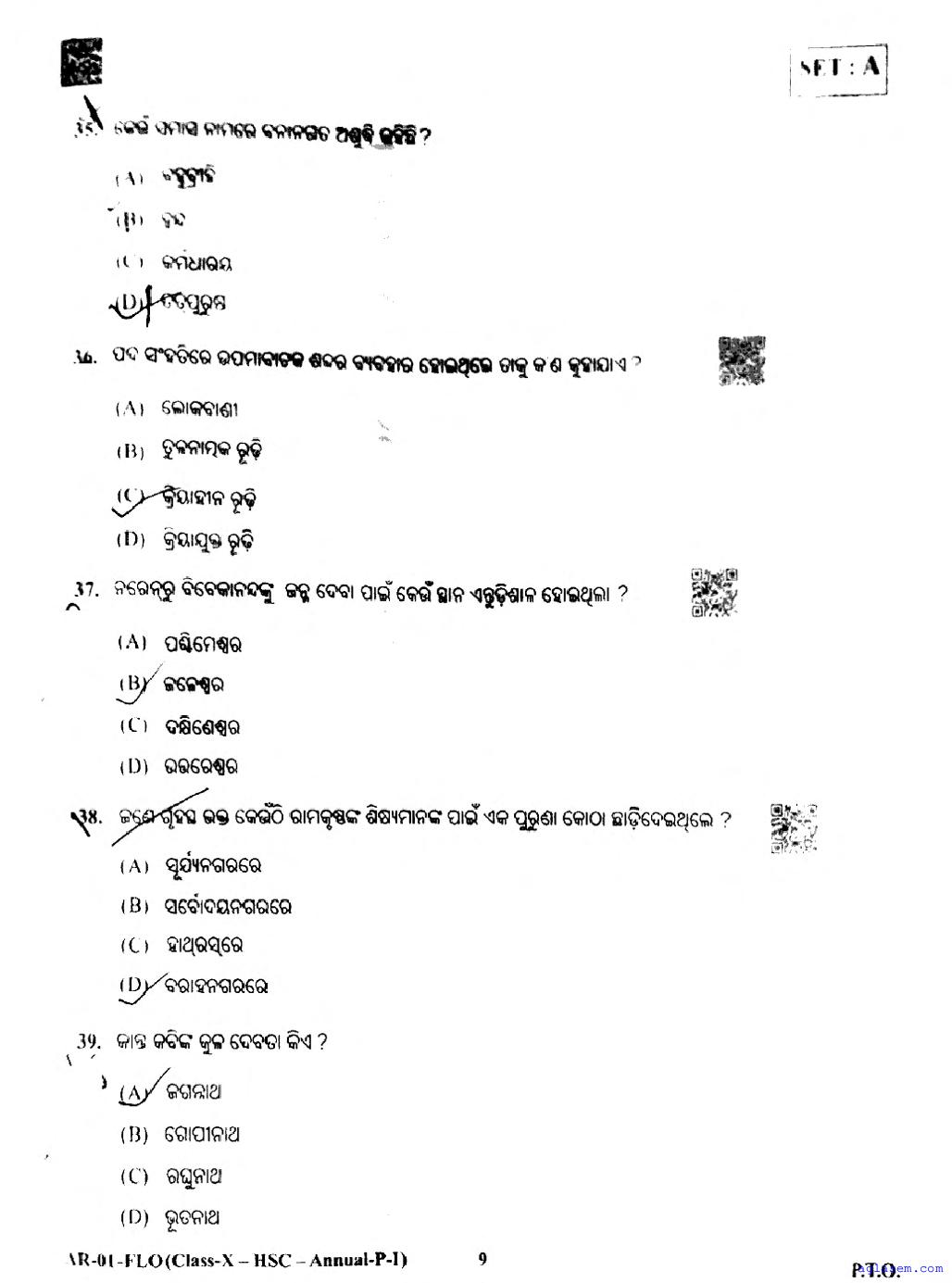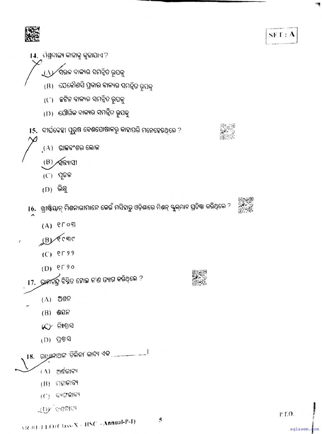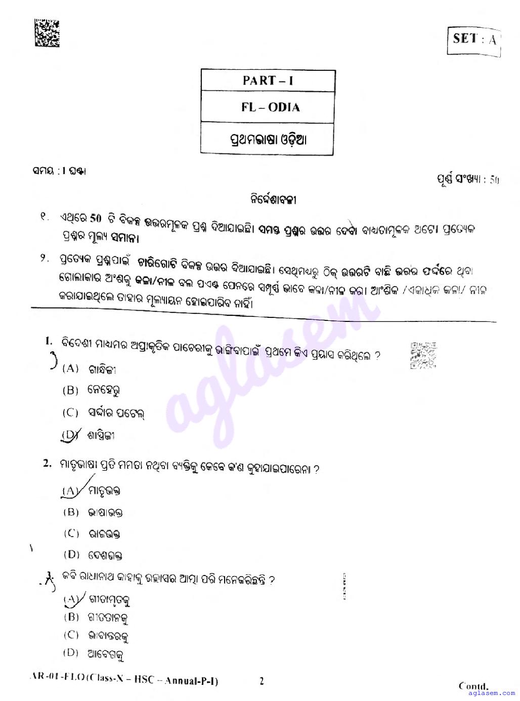 The Odisha Board Exam Question Paper of Class 10 10 Odia FL is as follows.