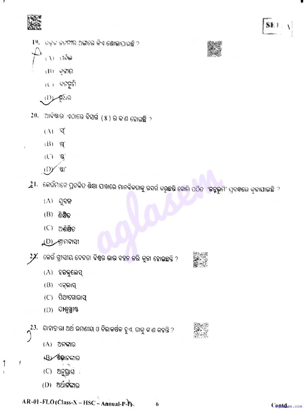 | Educational Resource Here | Odisha Board Previous Year Question Paper of Class 10 Odia FL |
