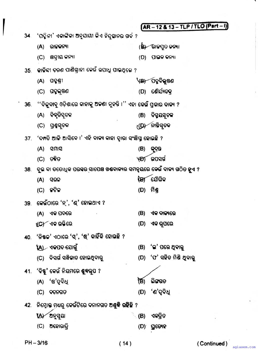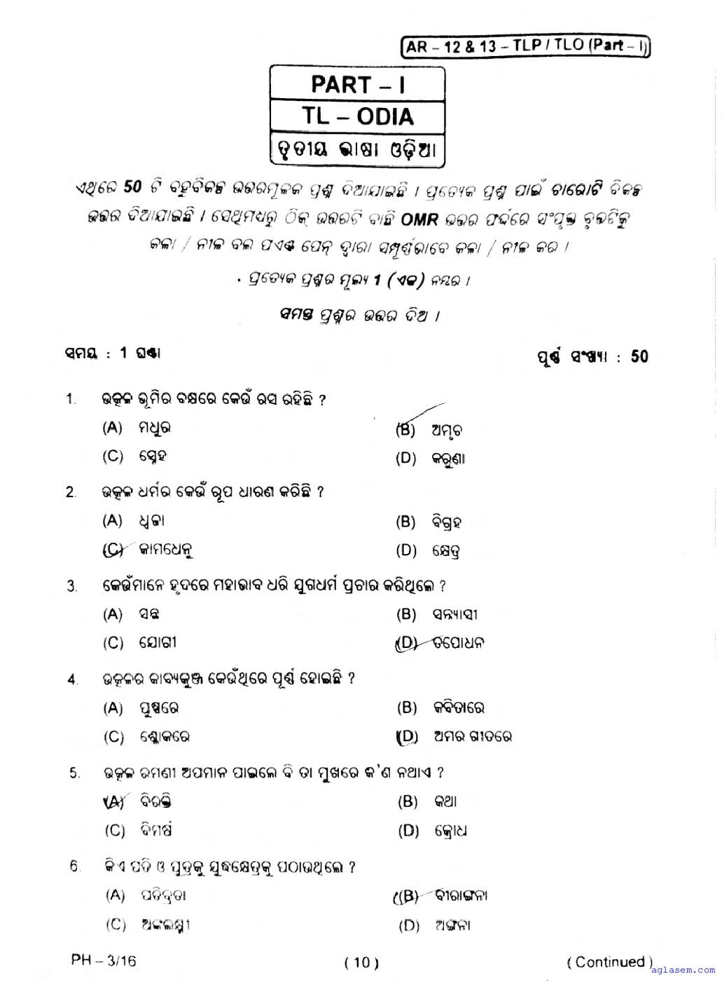 The Odisha Board Exam Question Paper of Class 10 10 Odia TL is as follows.