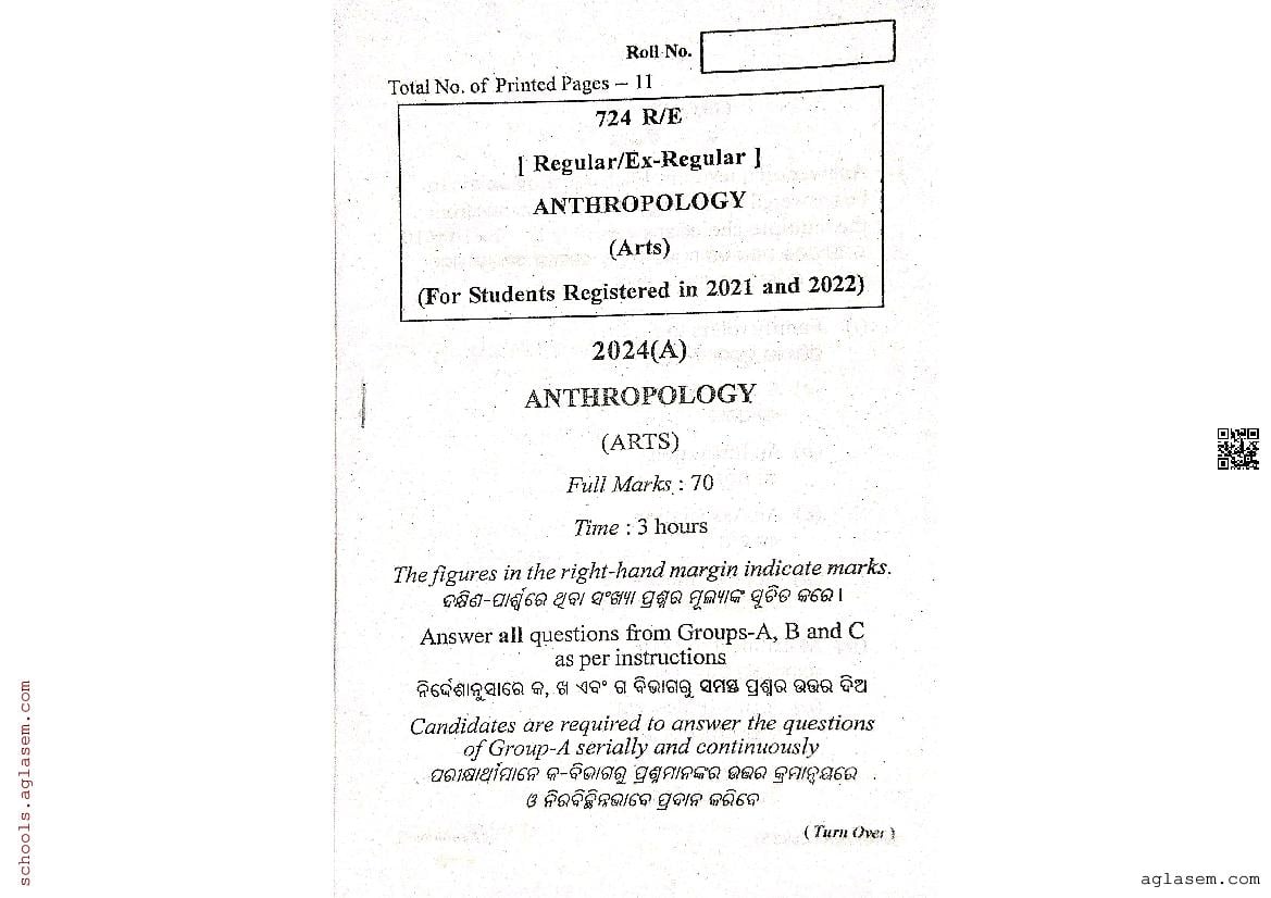 Odisha CHSE Class 12 Anthropology Question Paper 2024 has been published here at aglasem. You can now download the 12 Anthropology Question Paper PDF to prepare for your exam. This Odisha 12 Question Paper contains actual questions asked in Anthropology test in previous year class 12 exams. Therefore it is a very useful study material for Anthropology subject which helps you score full marks in 12 exams.