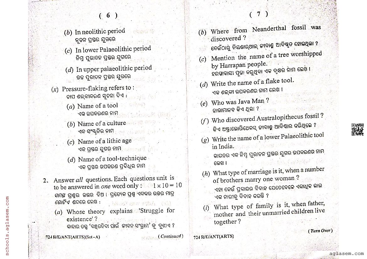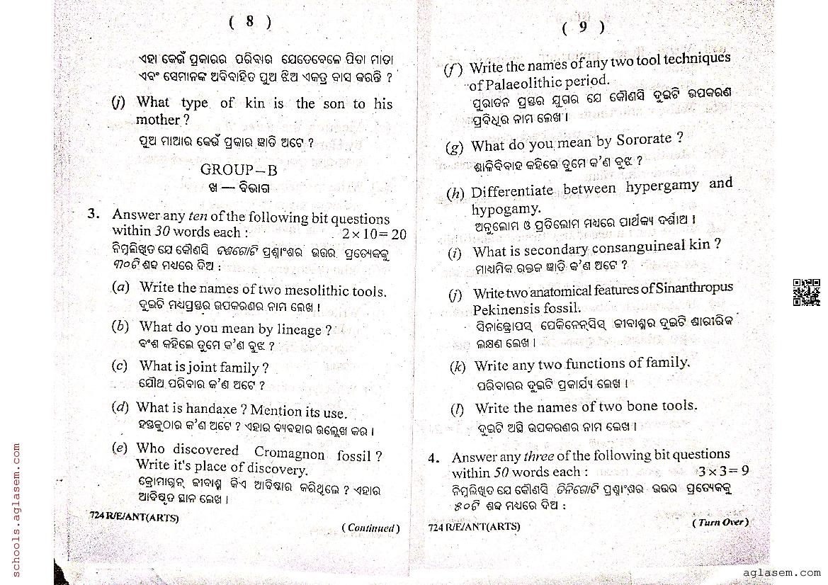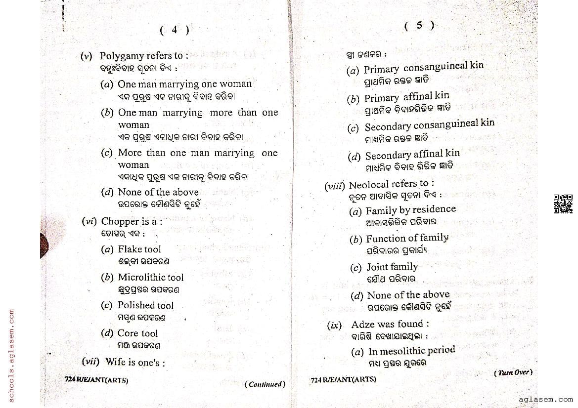 | Educational Resource Here | Odisha Board Previous Year Question Paper of Class 12 Anthropology |