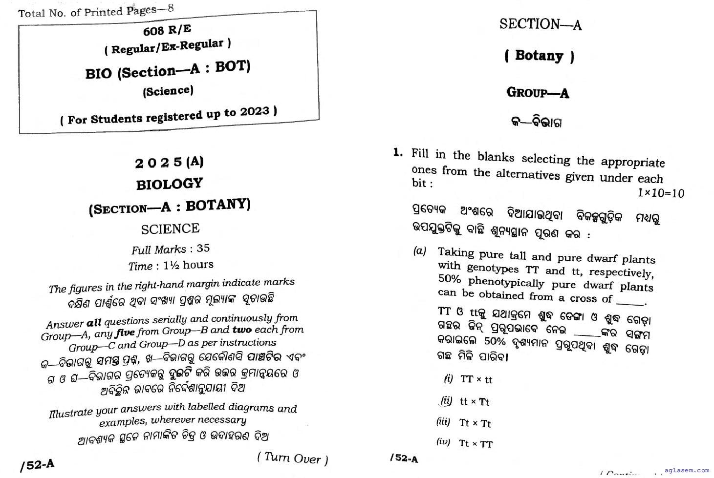 Odisha CHSE Class 12 Biology Botany Question Paper 2026 has been published here at aglasem. You can now download the 12 Biology Botany Question Paper PDF to prepare for your exam. This Odisha 12 Question Paper contains actual questions asked in Biology Botany test in previous year class 12 exams. Therefore it is a very useful study material for Biology Botany subject which helps you score full marks in 12 exams.