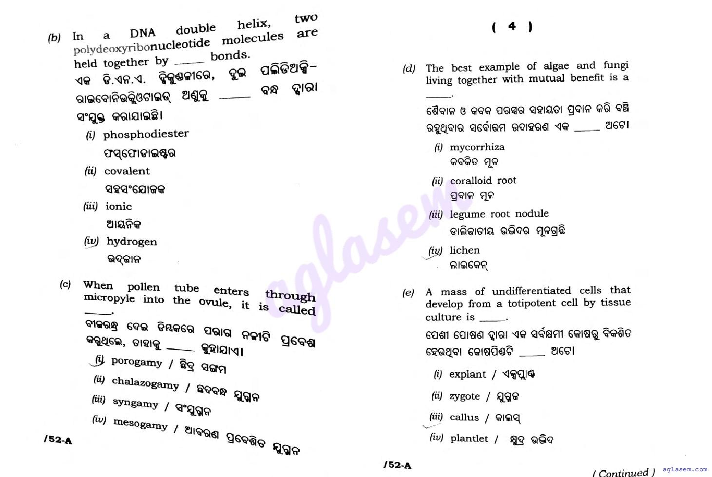 | Educational Resource Here | Odisha Board Previous Year Question Paper of Class 12 Biology Botany |