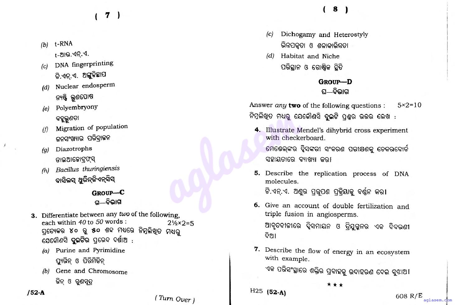 The Odisha Board Exam Question Paper of Class 12 12 Biology Botany is as follows.