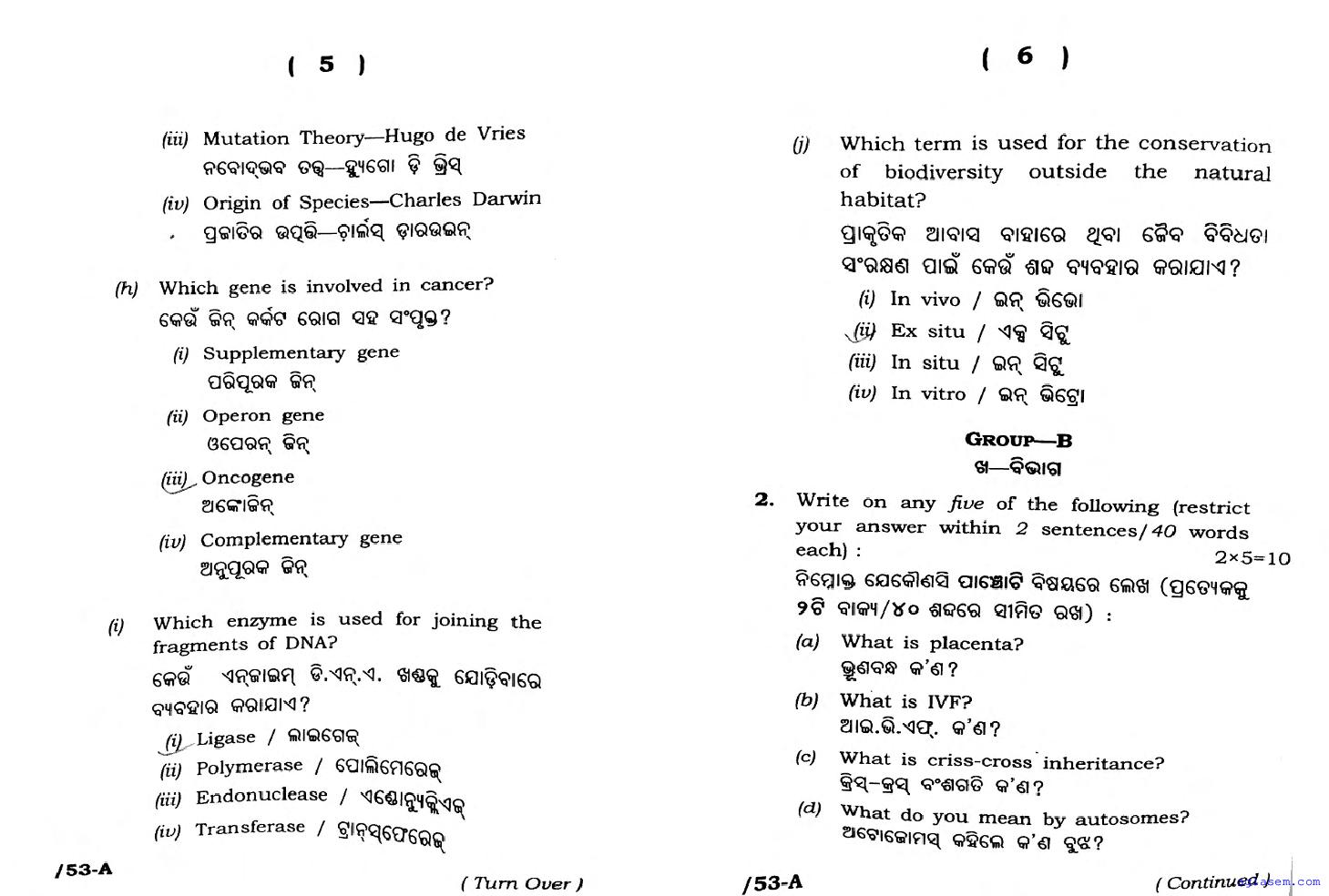 Besides the Biology Zoology question paper, you can download 12 question for other subjects as well. Thus the Odisha board class 12 question papers for all subjects are as follows.