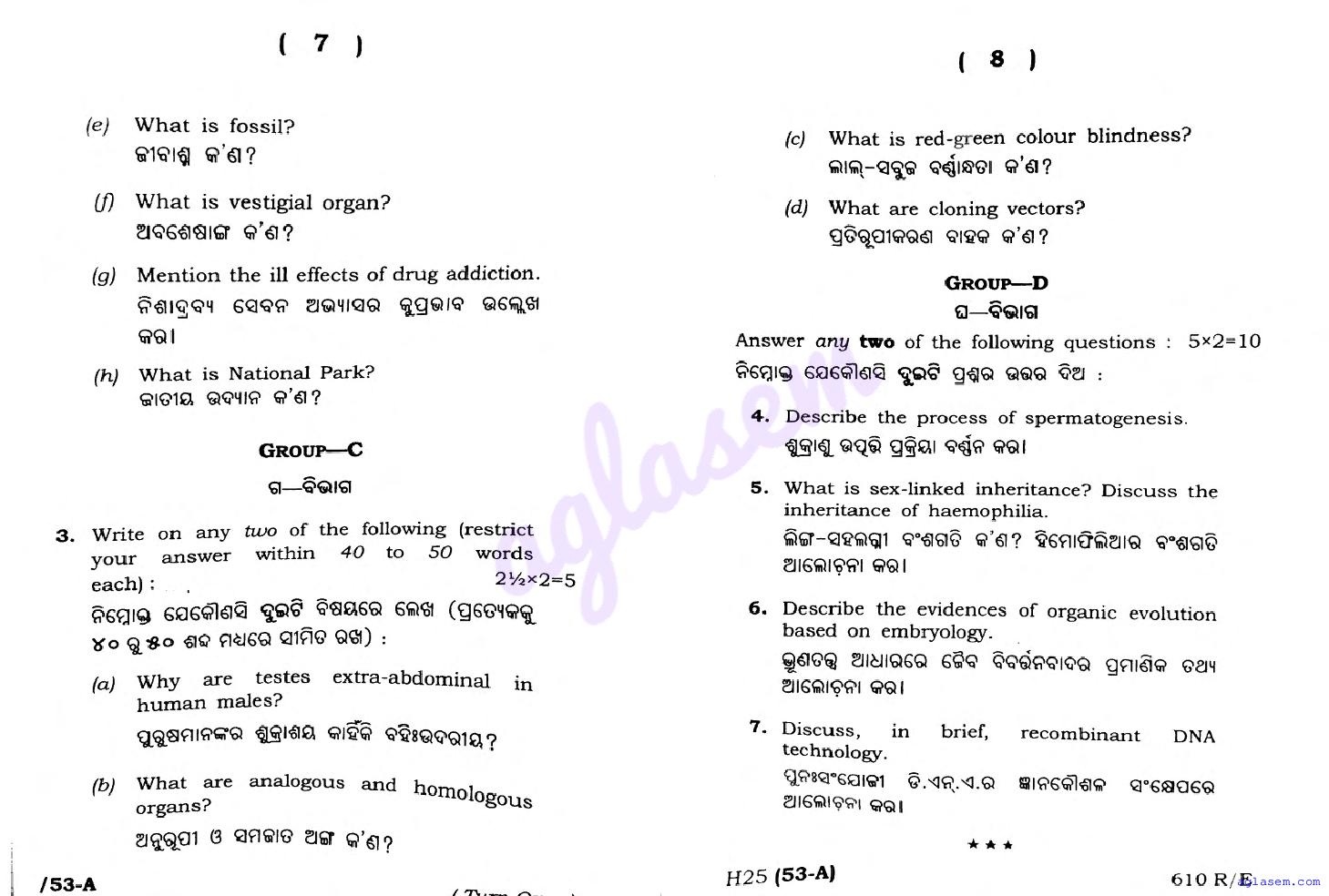 | Educational Resource Here | Odisha Board Previous Year Question Paper of Class 12 Biology Zoology |