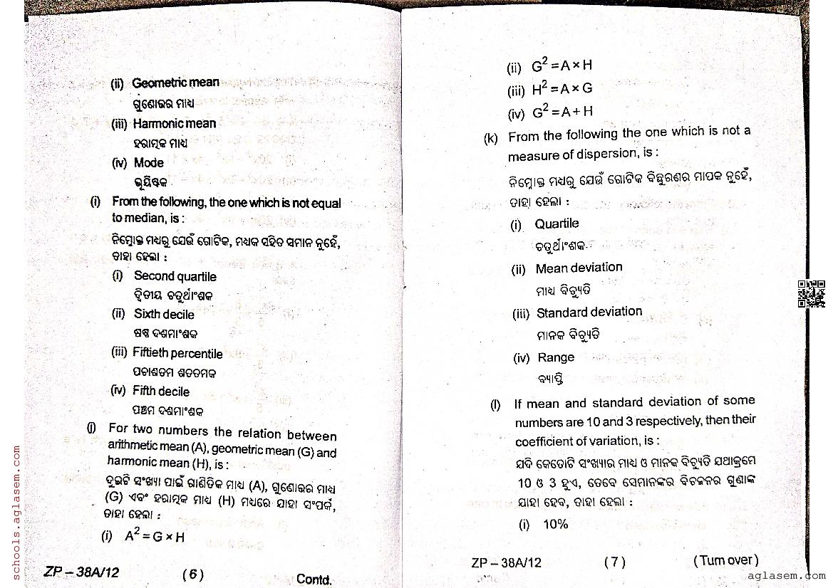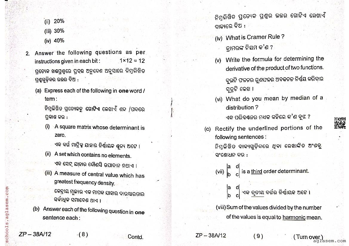 The Odisha Board Exam Question Paper of Class 12 12 Business Mathematics and Statistics is as follows.