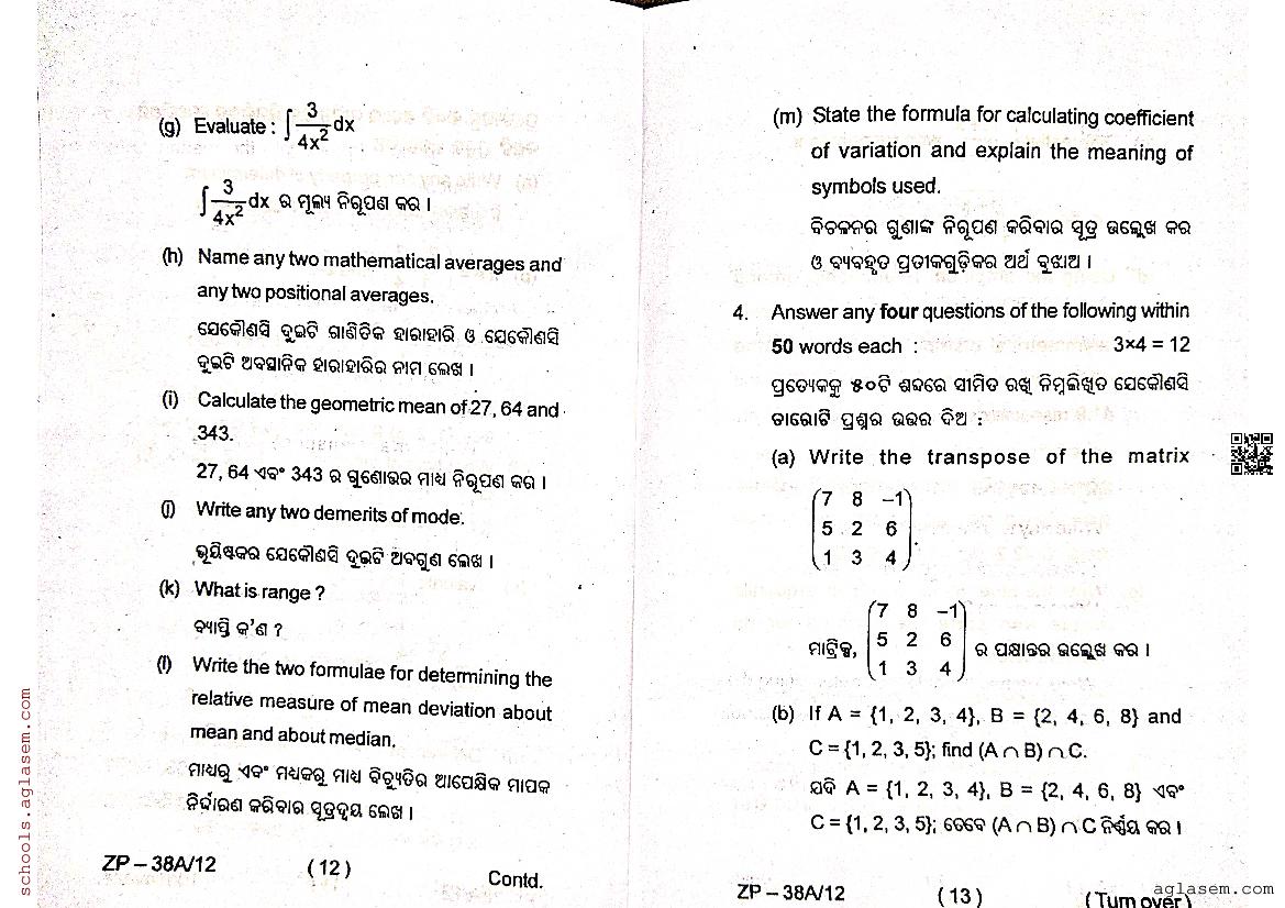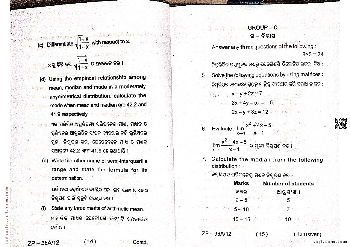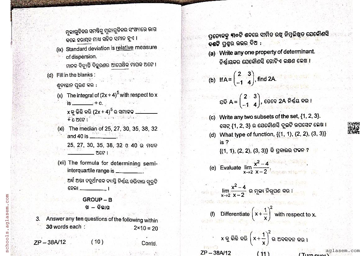 Odisha CHSE Class 12 Business Mathematics and Statistics Question Paper 2024 has been published here at aglasem. You can now download the 12 Business Mathematics and Statistics Question Paper PDF to prepare for your exam. This Odisha 12 Question Paper contains actual questions asked in Business Mathematics and Statistics test in previous year class 12 exams. Therefore it is a very useful study material for Business Mathematics and Statistics subject which helps you score full marks in 12 exams.