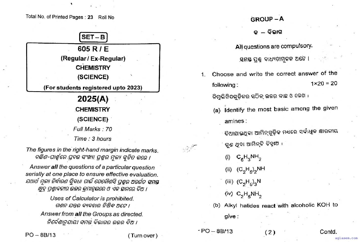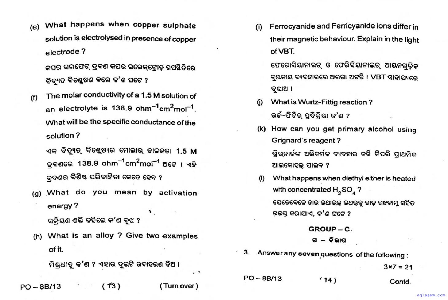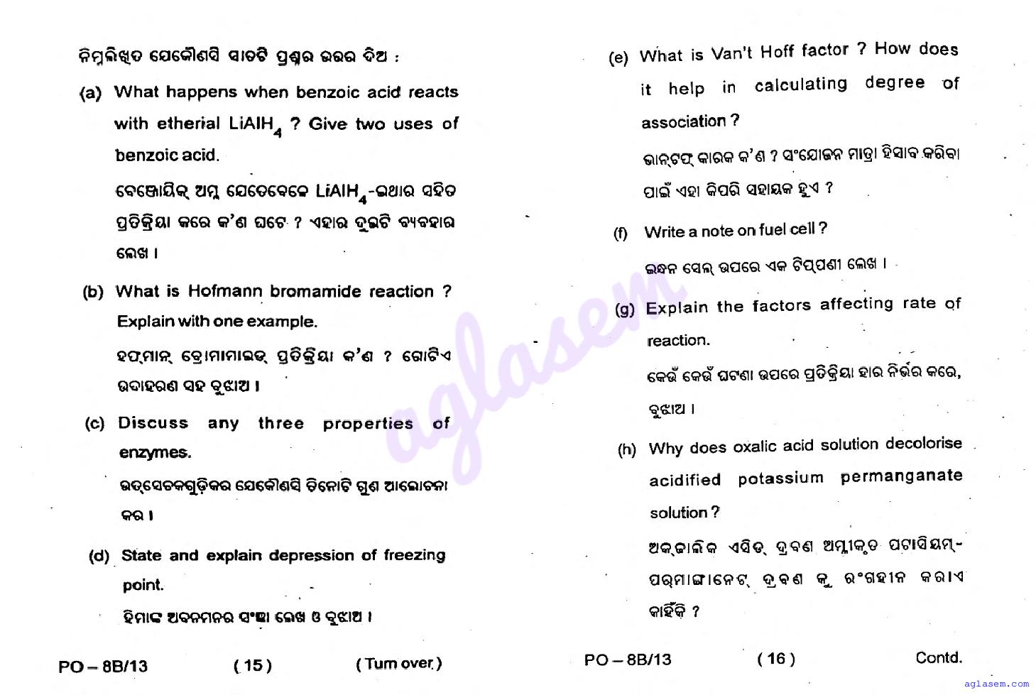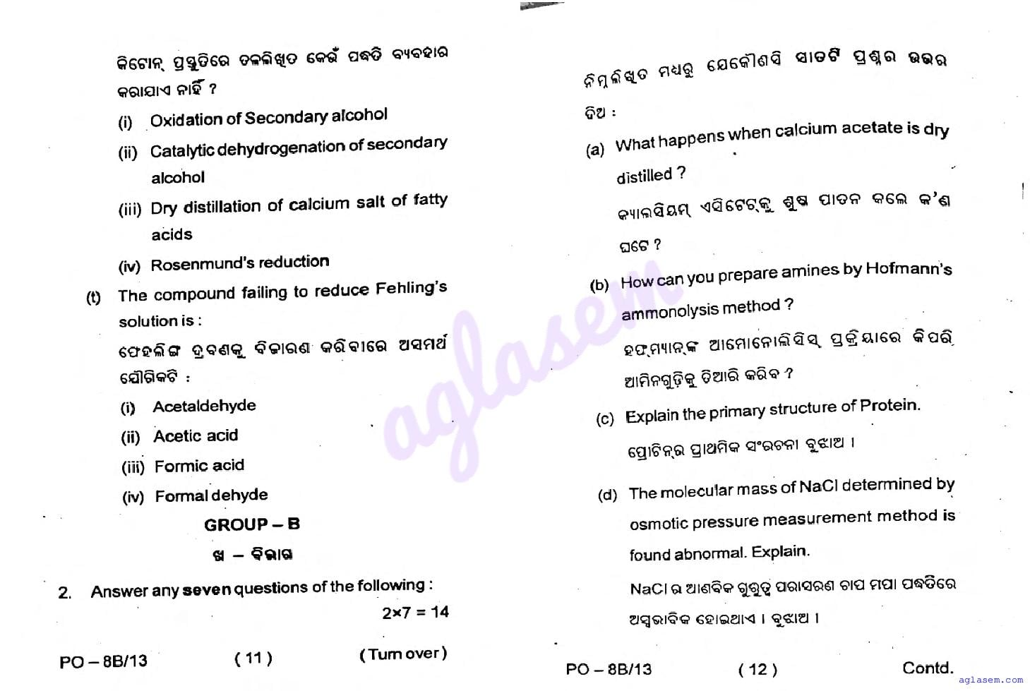 Odisha CHSE Class 12 Chemistry Question Paper 2026 has been published here at aglasem. You can now download the 12 Chemistry Question Paper PDF to prepare for your exam. This Odisha 12 Question Paper contains actual questions asked in Chemistry test in previous year class 12 exams. Therefore it is a very useful study material for Chemistry subject which helps you score full marks in 12 exams.