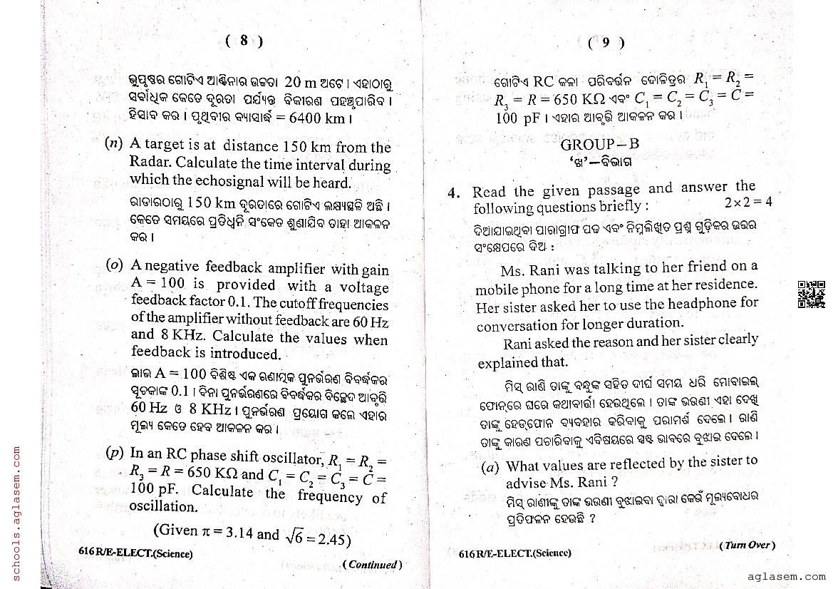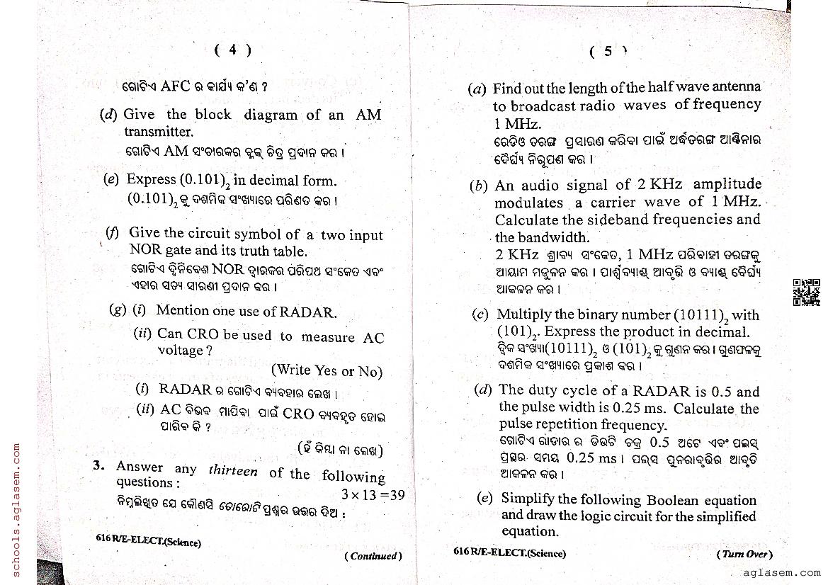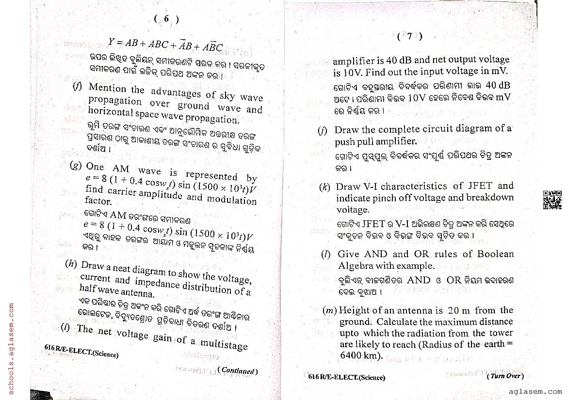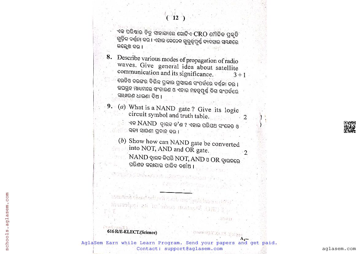 The Odisha Board Exam Question Paper of Class 12 12 Electronics is as follows.