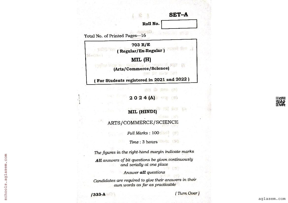 Odisha CHSE Class 12 Hindi MIL Question Paper 2024 has been published here at aglasem. You can now download the 12 Hindi MIL Question Paper PDF to prepare for your exam. This Odisha 12 Question Paper contains actual questions asked in Hindi MIL test in previous year class 12 exams. Therefore it is a very useful study material for Hindi MIL subject which helps you score full marks in 12 exams.