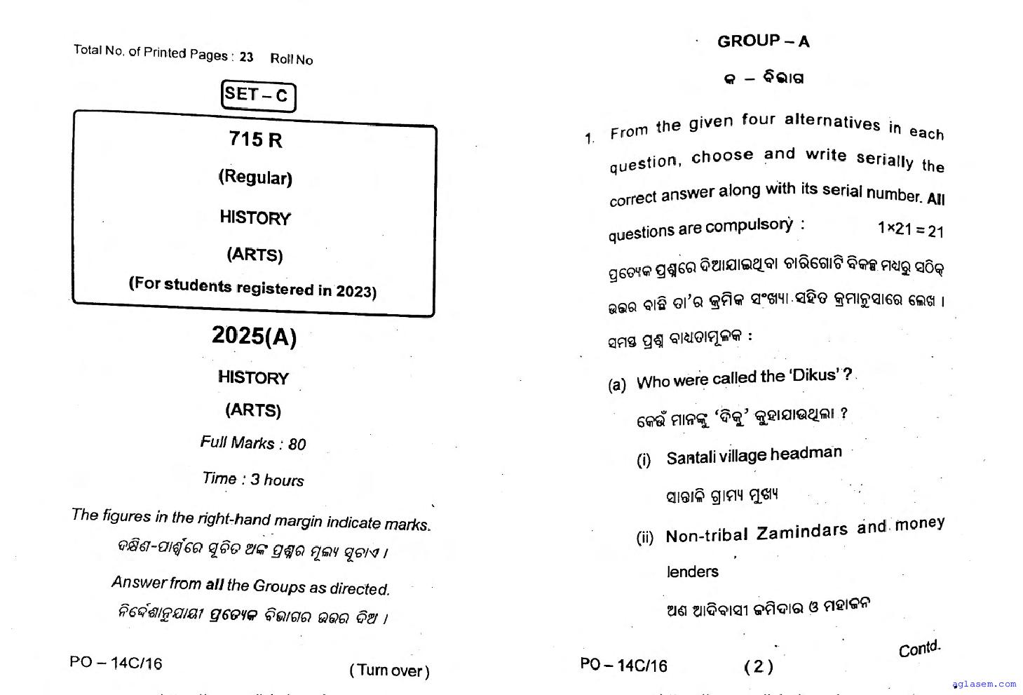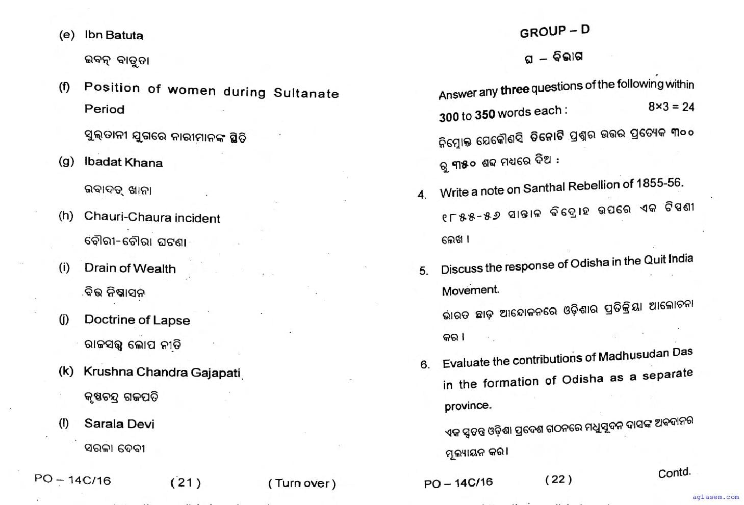 | Educational Resource Here | Odisha Board Previous Year Question Paper of Class 12 History |