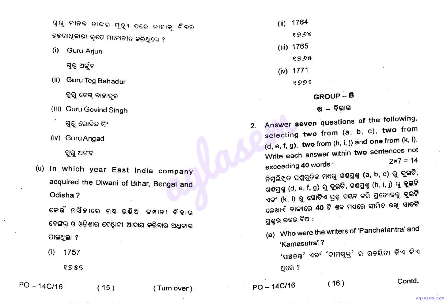 | More Question Papers of This Board | Odisha Board Previous Year Question Papers |