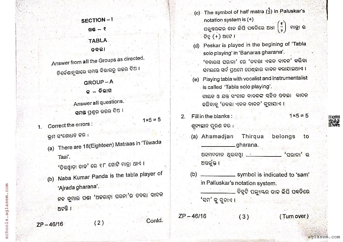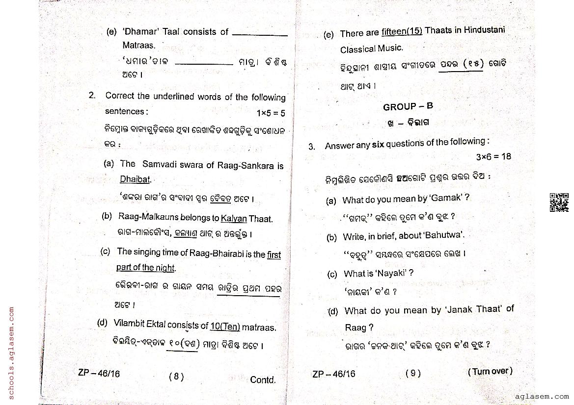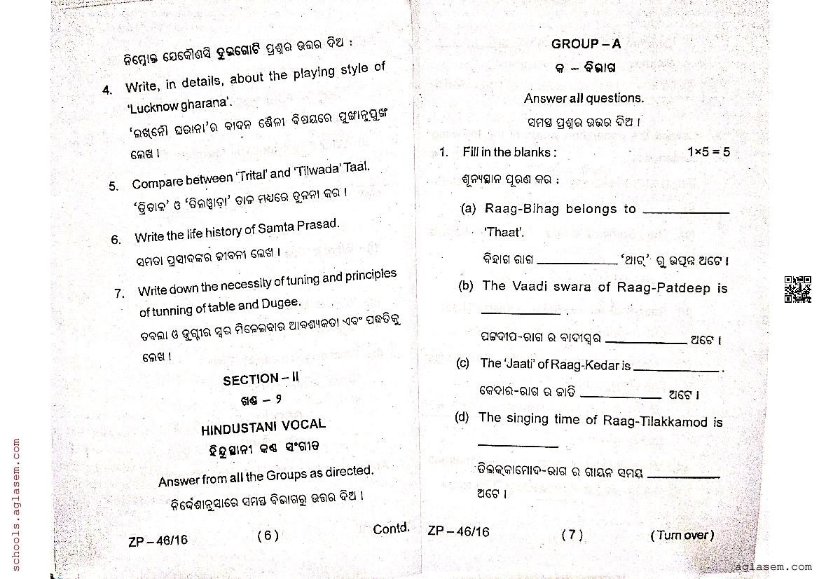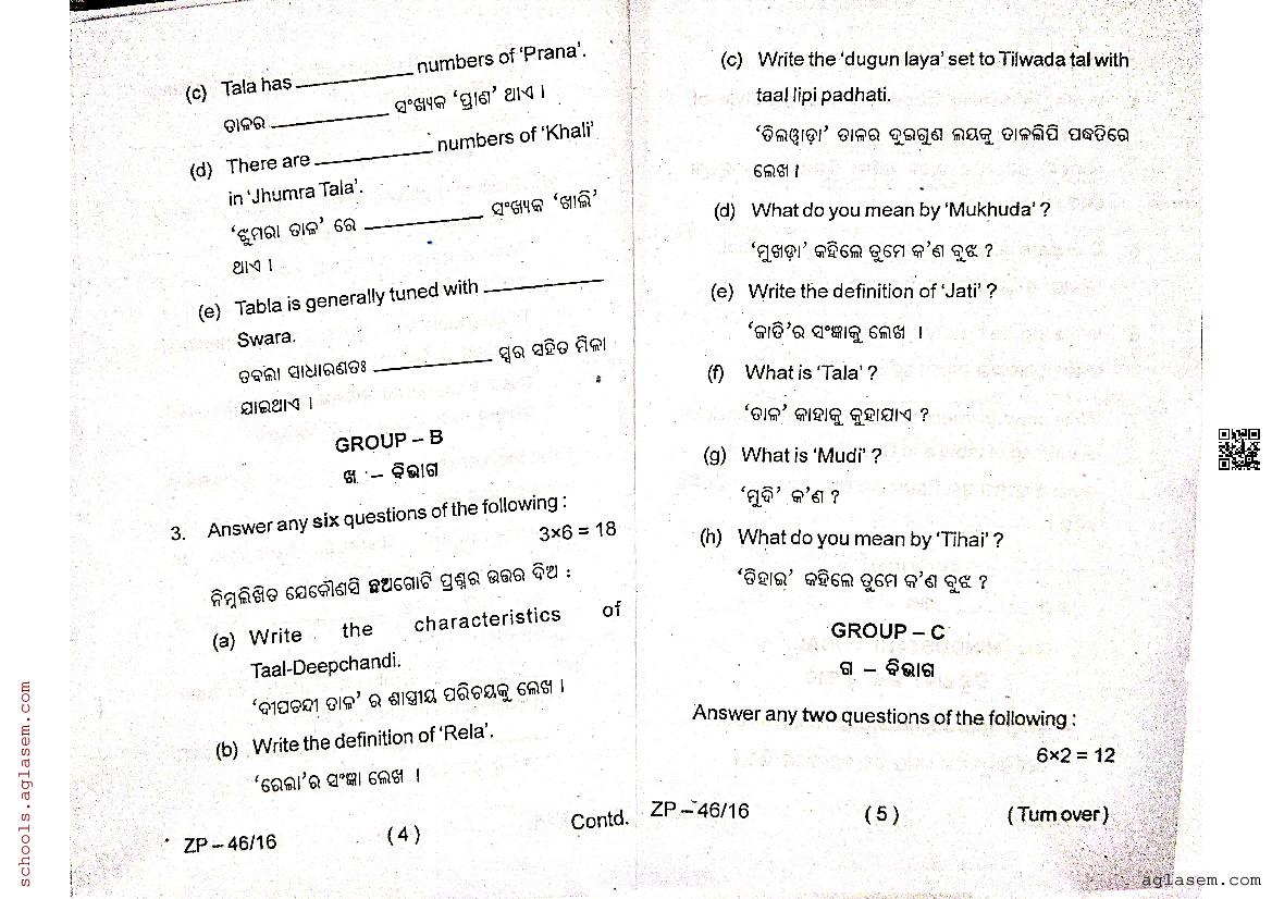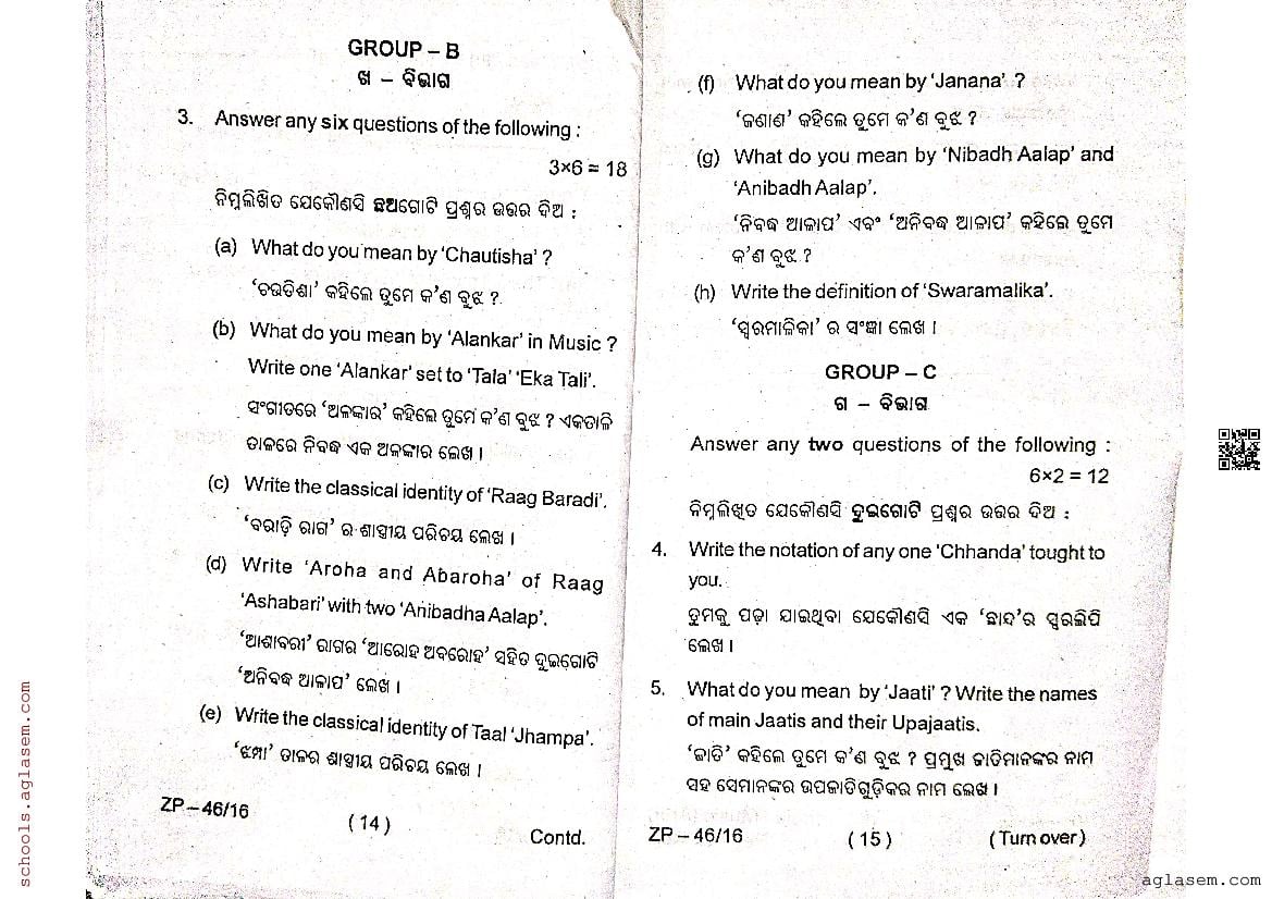 Odisha Class 12 Question Paper 2024 Indian Music View Download