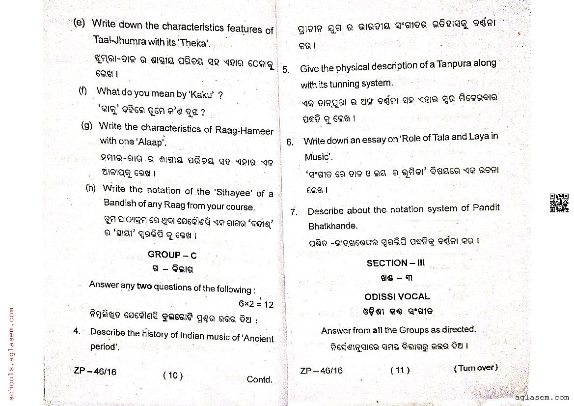 The Odisha Board Exam Question Paper of Class 12 12 Indian Music is as follows.