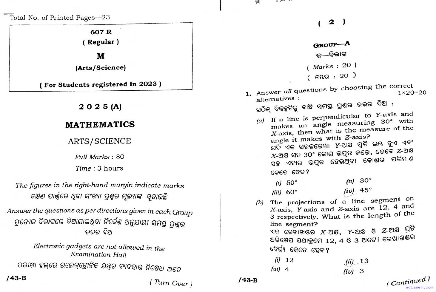 Odisha Class 12 Question Paper 2025 Maths View Download