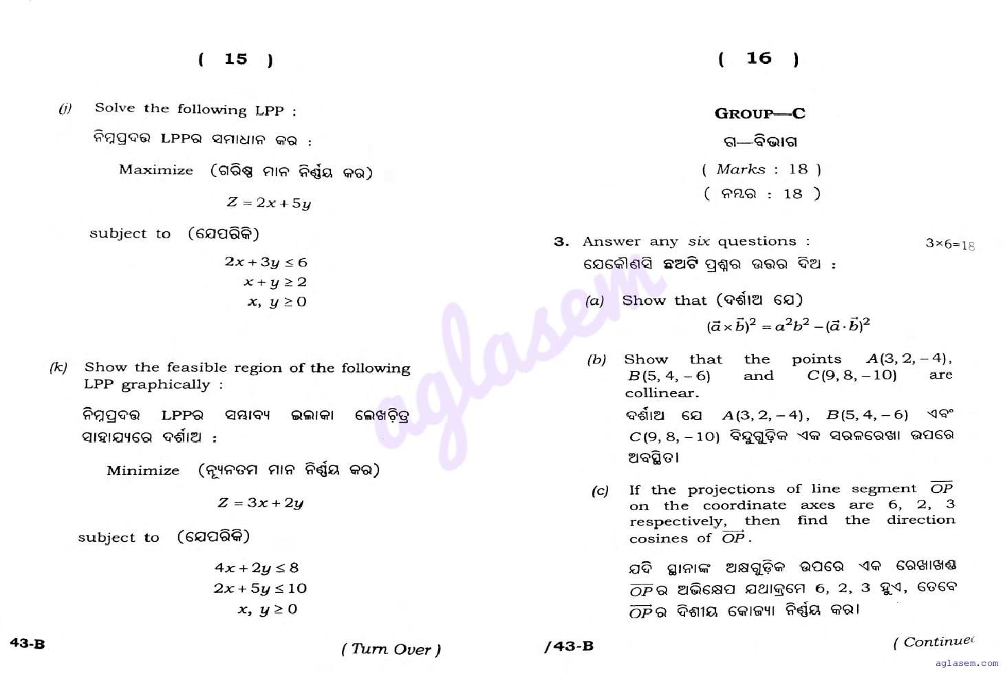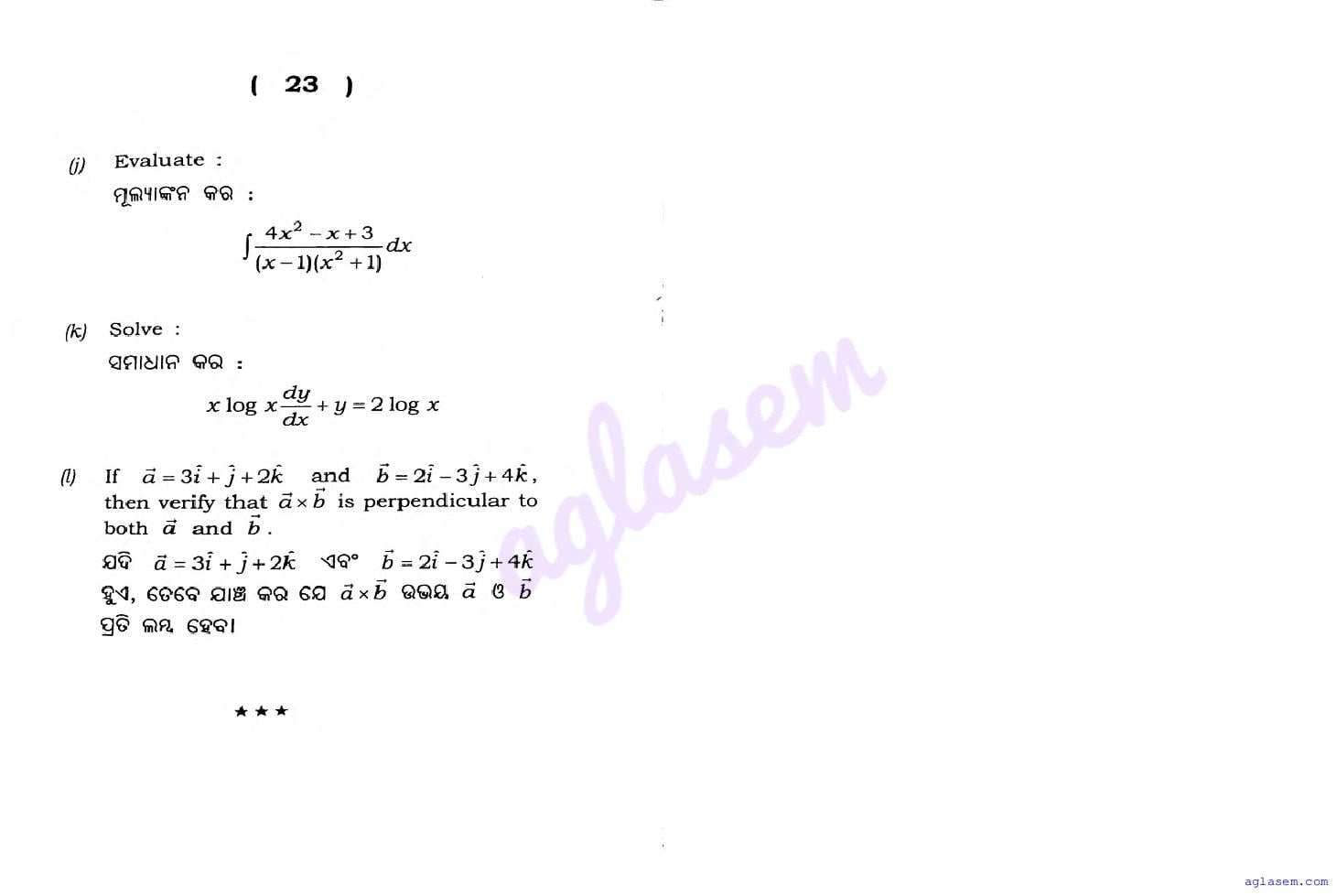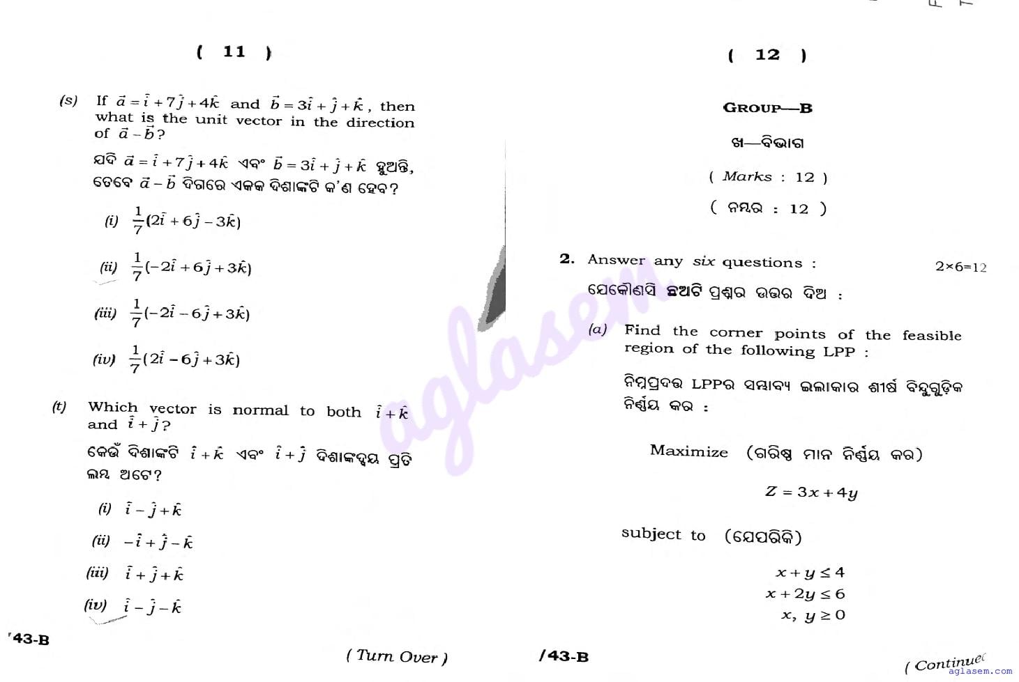 Odisha CHSE Class 12 Maths Question Paper 2026 has been published here at aglasem. You can now download the 12 Maths Question Paper PDF to prepare for your exam. This Odisha 12 Question Paper contains actual questions asked in Maths test in previous year class 12 exams. Therefore it is a very useful study material for Maths subject which helps you score full marks in 12 exams.