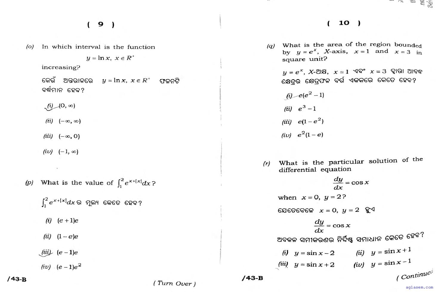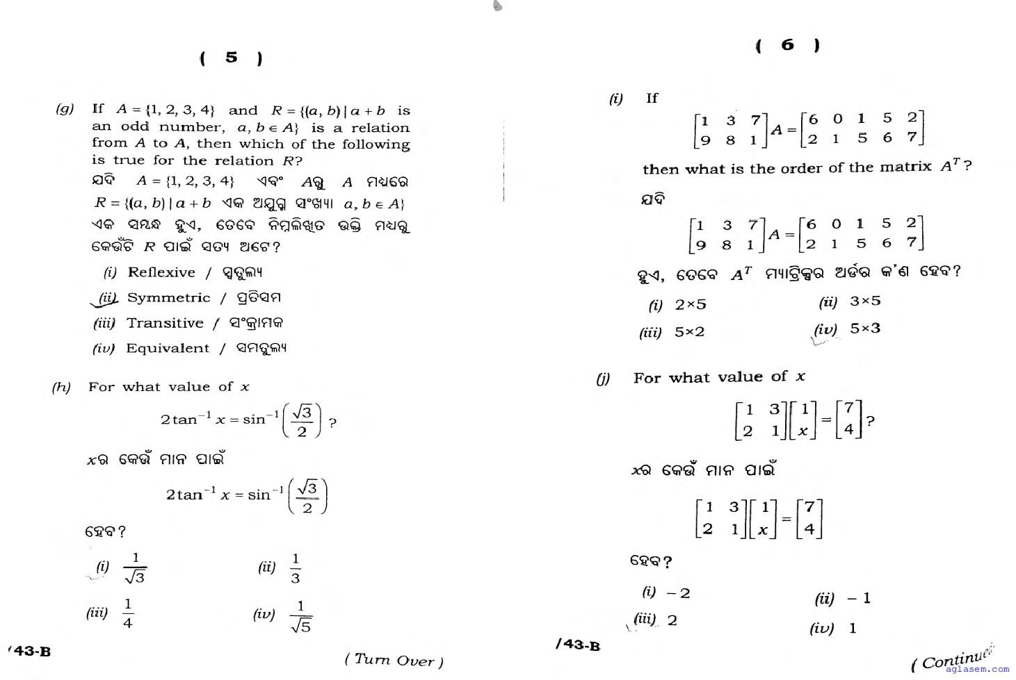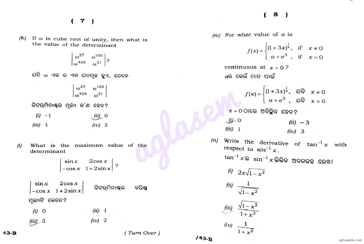 Odisha CHSE Class 12 Maths Question Paper 2026 has been published here at aglasem. You can now download the 12 Maths Question Paper PDF to prepare for your exam. This Odisha 12 Question Paper contains actual questions asked in Maths test in previous year class 12 exams. Therefore it is a very useful study material for Maths subject which helps you score full marks in 12 exams.