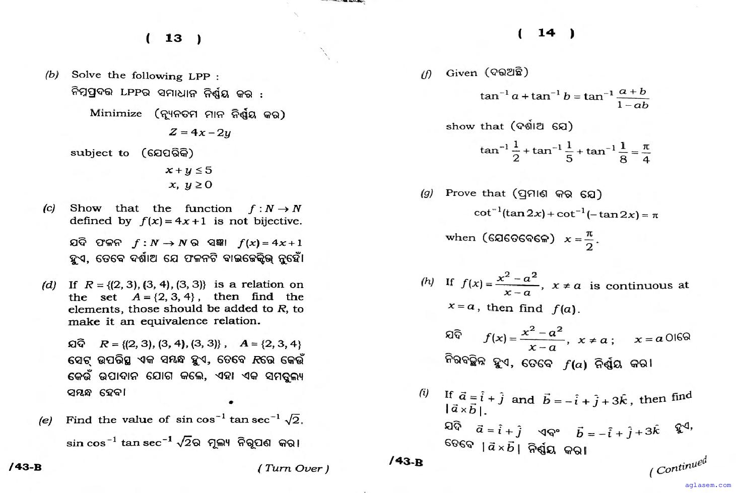 The Odisha Board Exam Question Paper of Class 12 12 Maths is as follows.