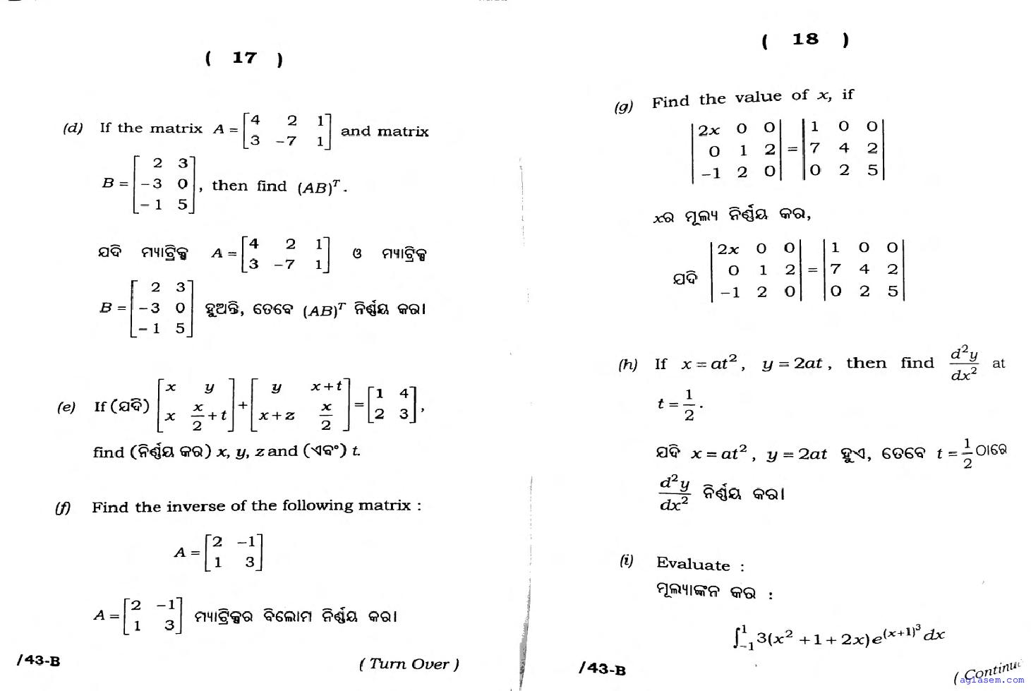 | Educational Resource Here | Odisha Board Previous Year Question Paper of Class 12 Maths |