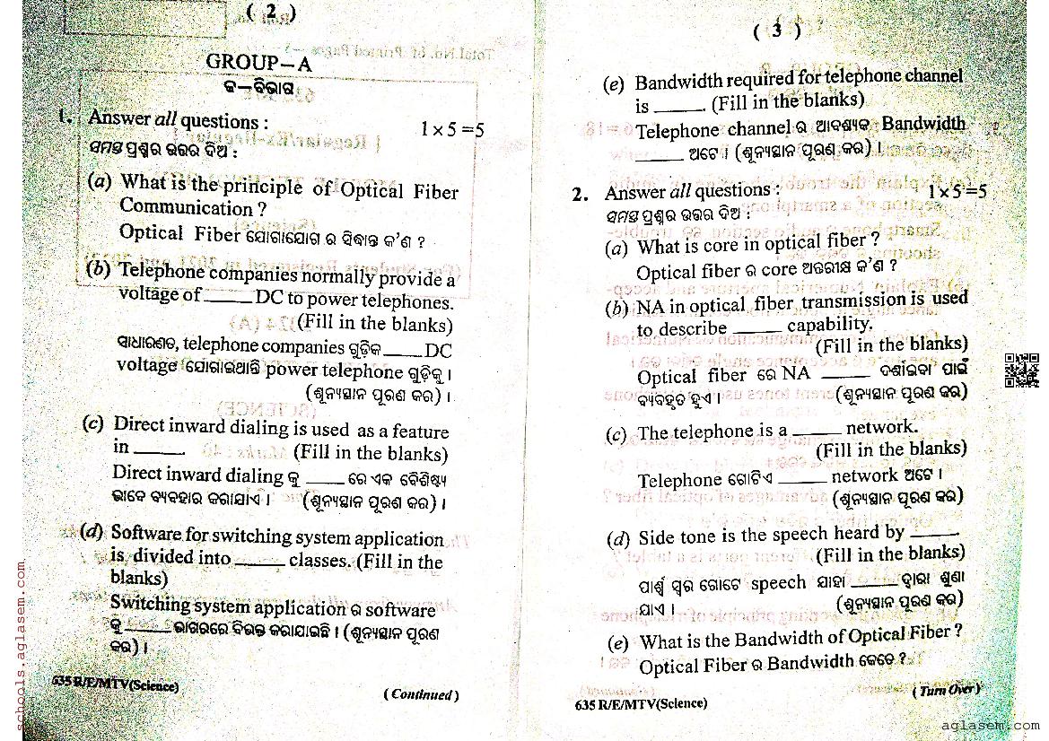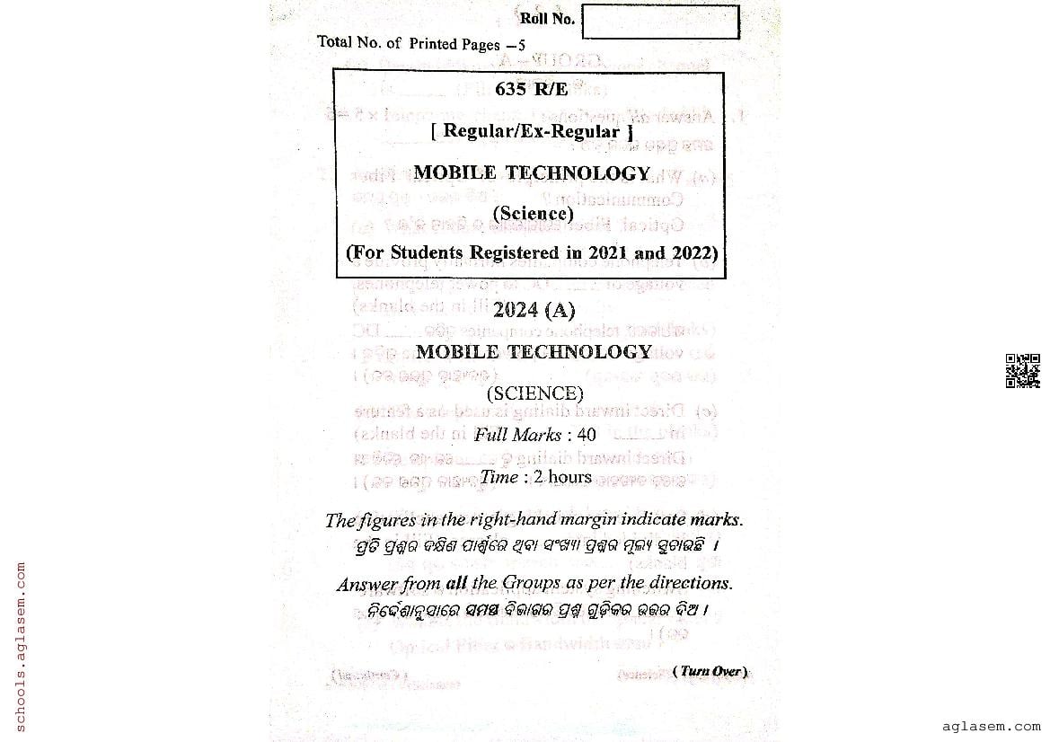 Odisha Class 12 Question Paper 2024 Mobile Technology View Download