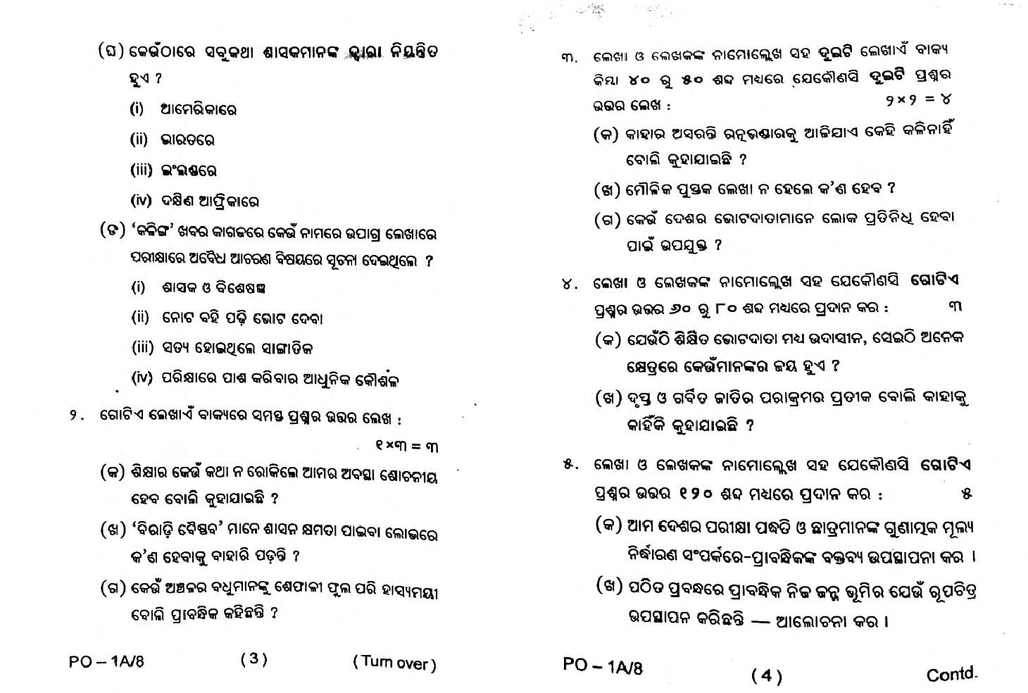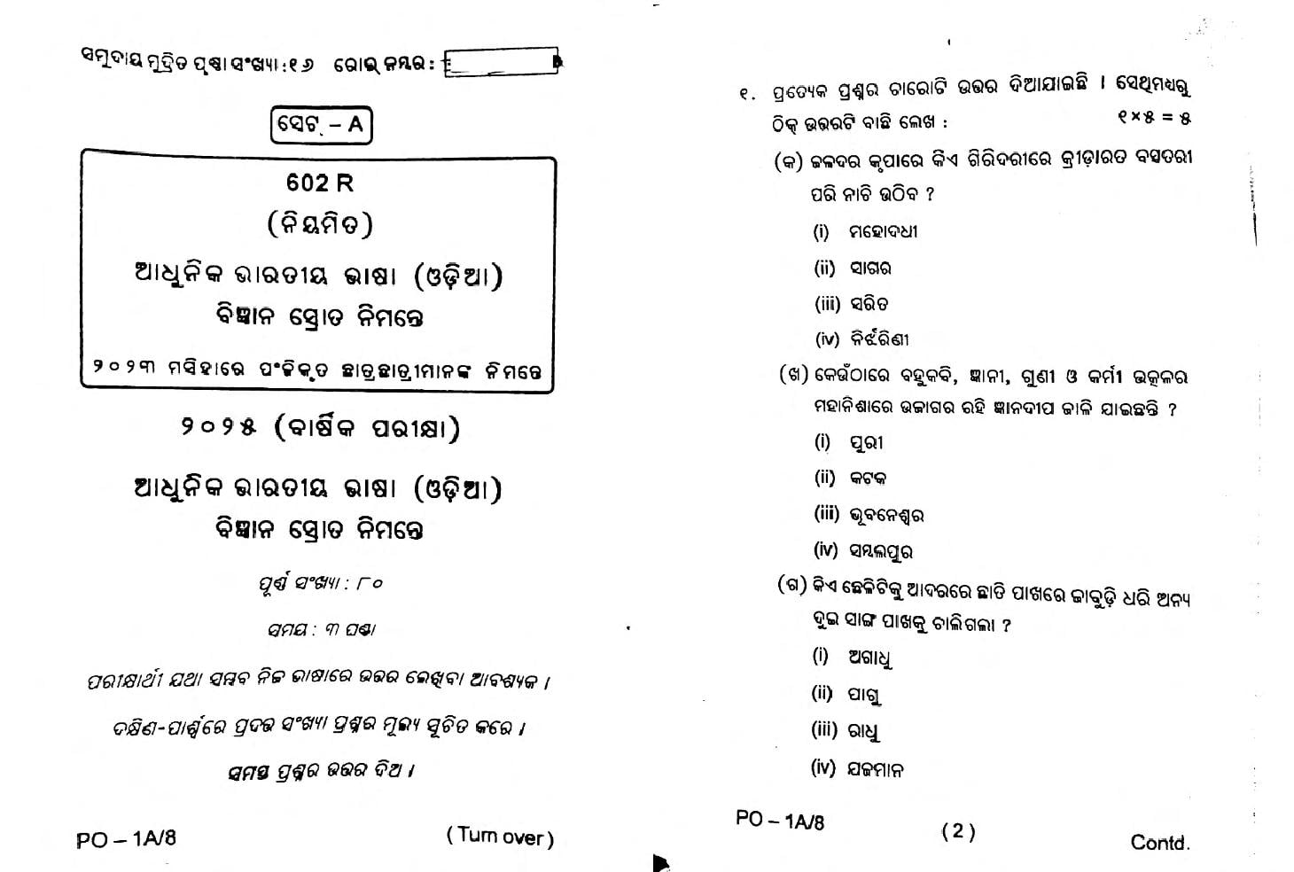 | More Question Papers of This Board | Odisha Board Previous Year Question Papers |