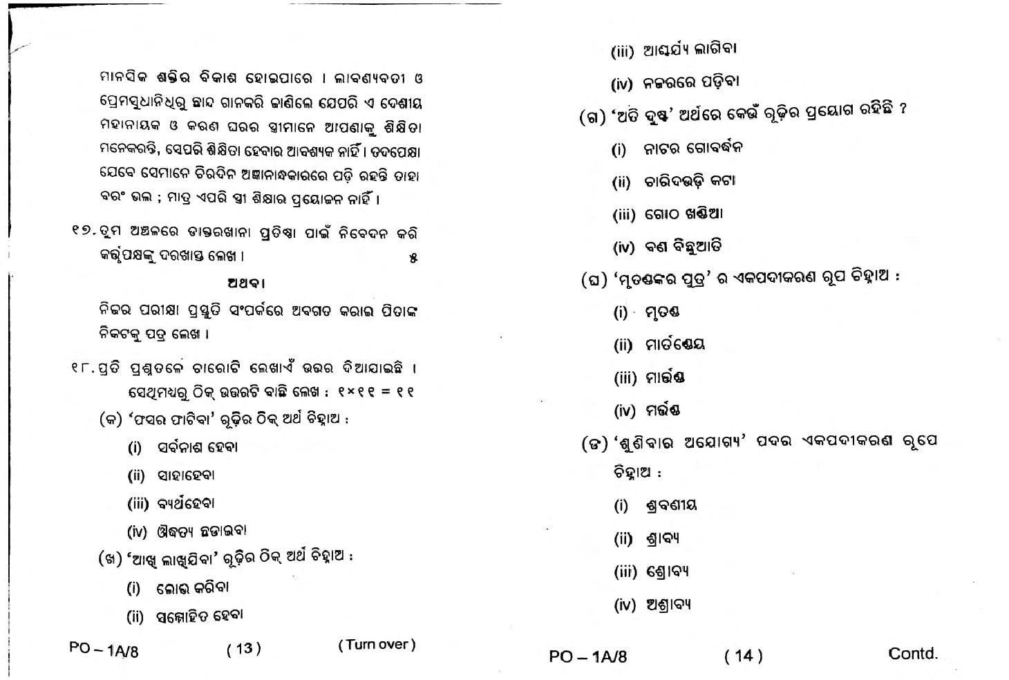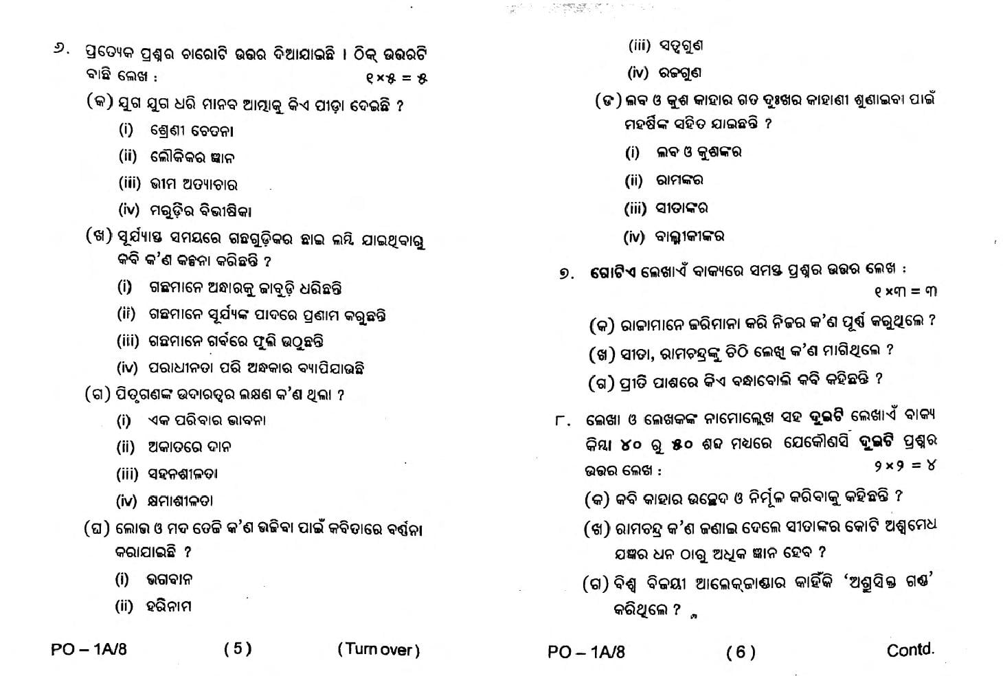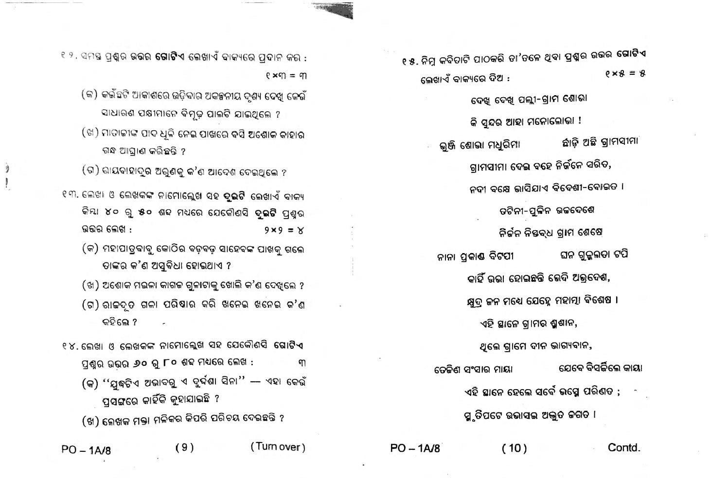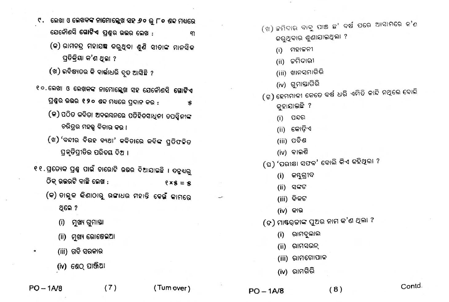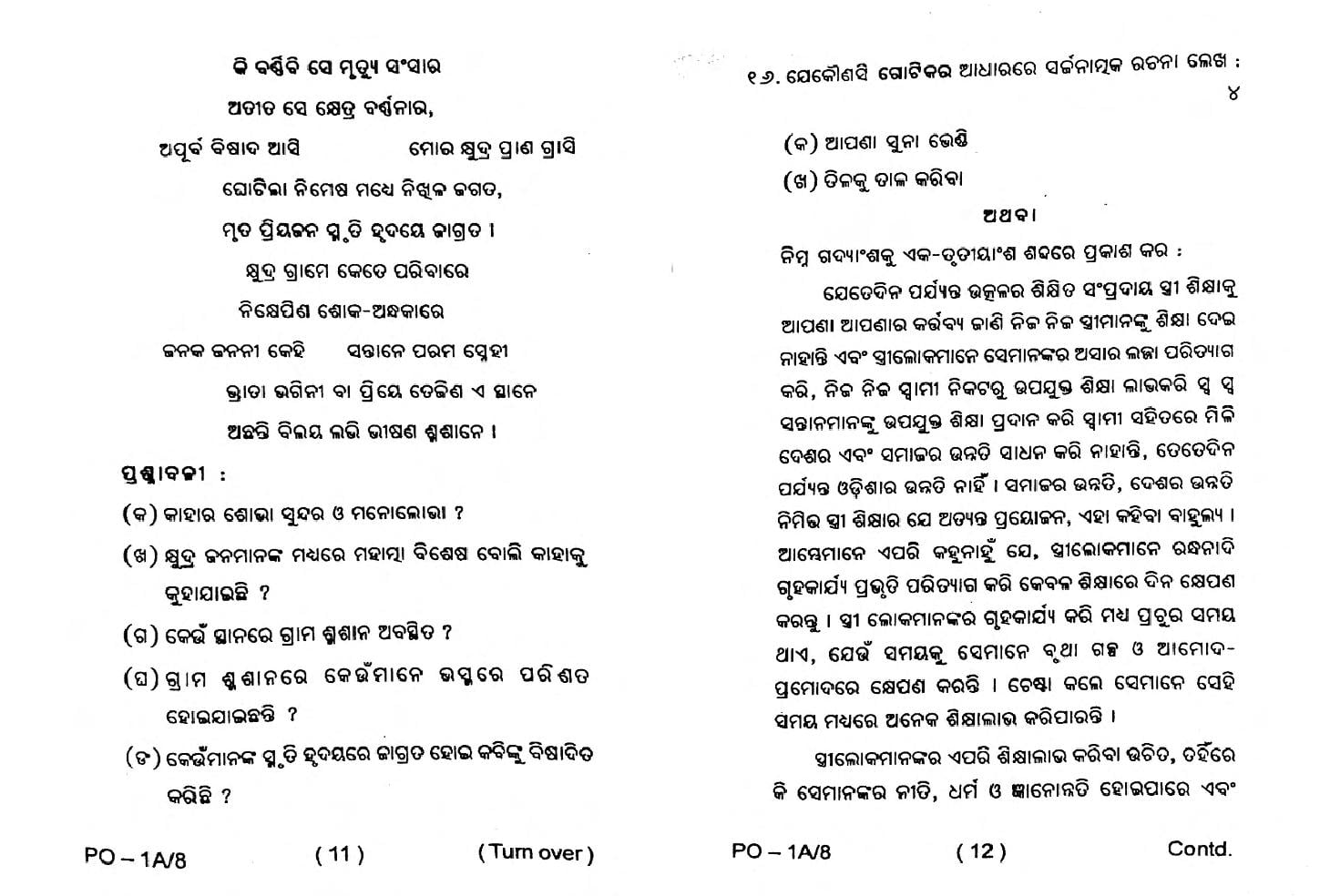 The Odisha Board Exam Question Paper of Class 12 12 Odia is as follows.