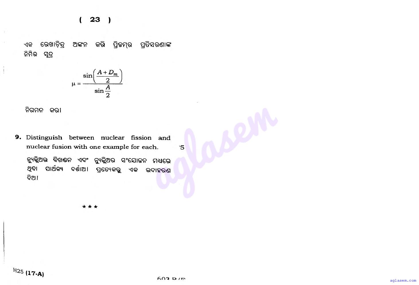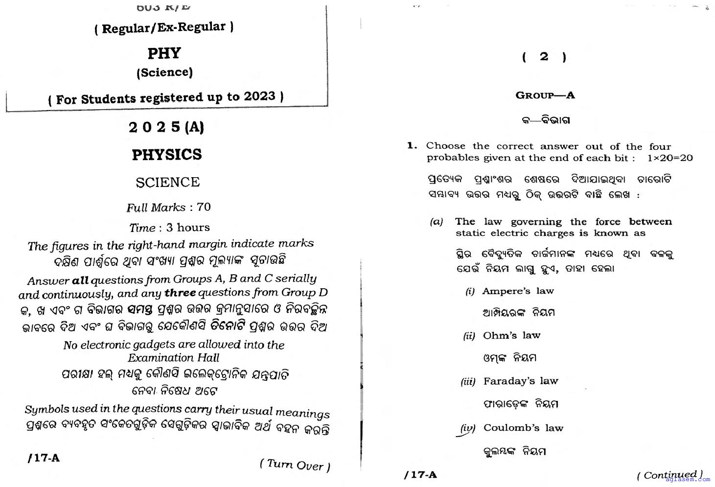 Odisha Class 12 Question Paper 2025 Physics View Download