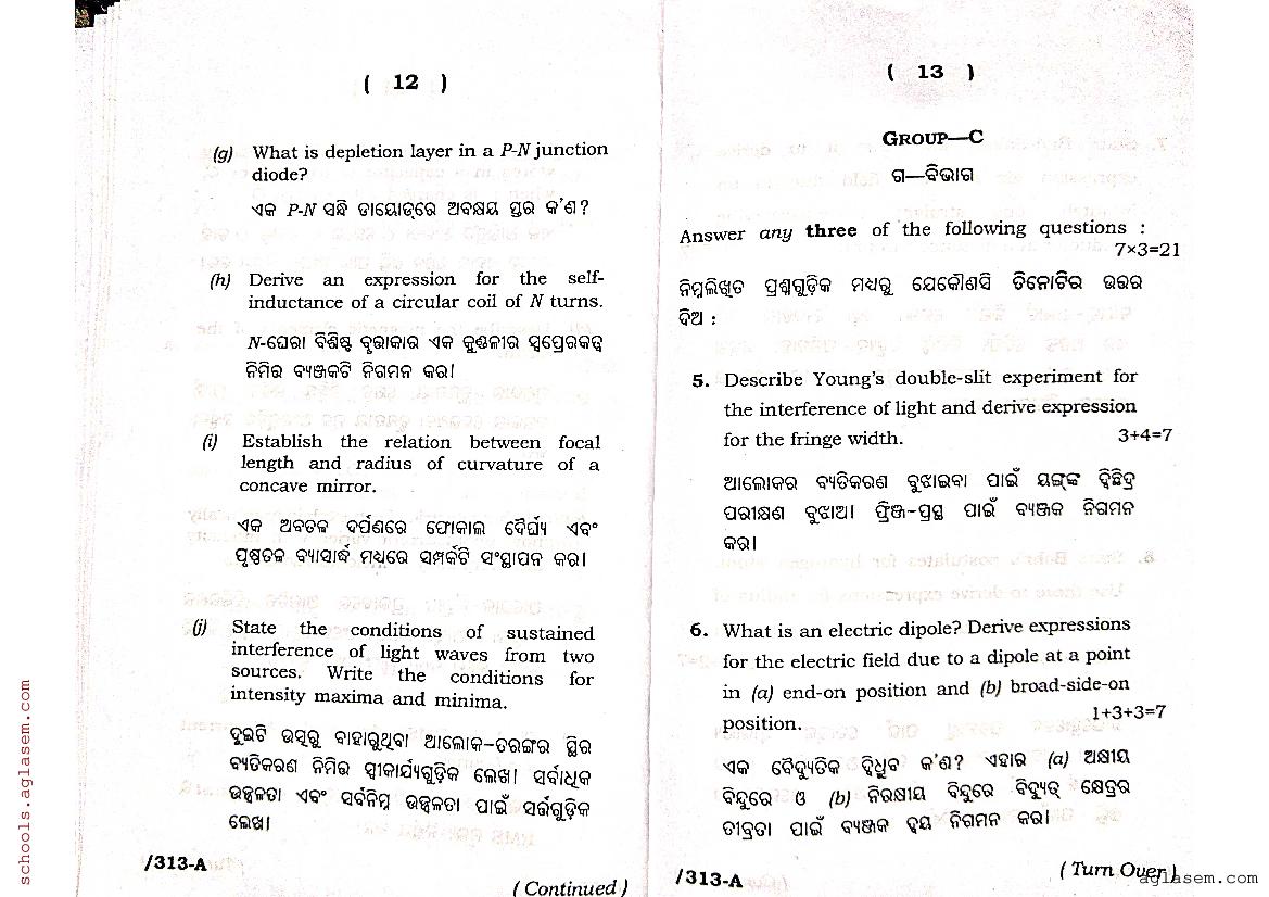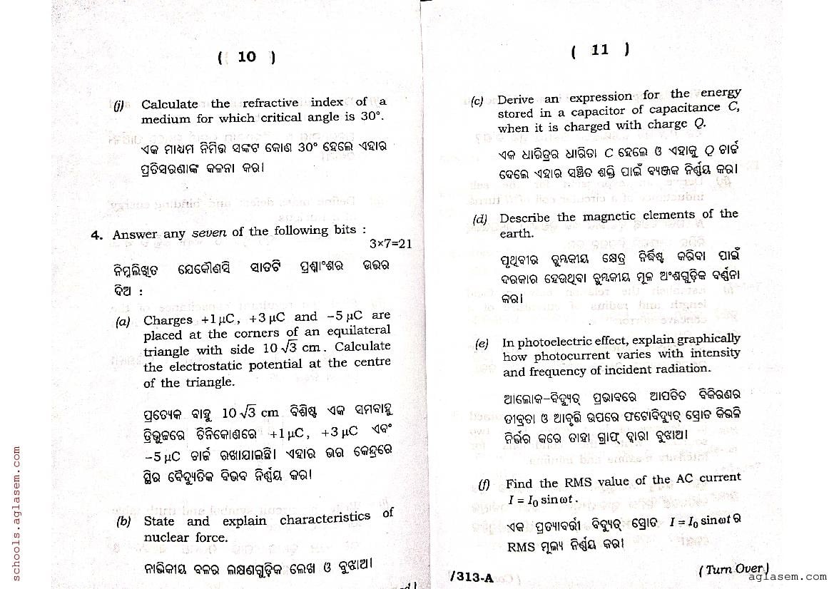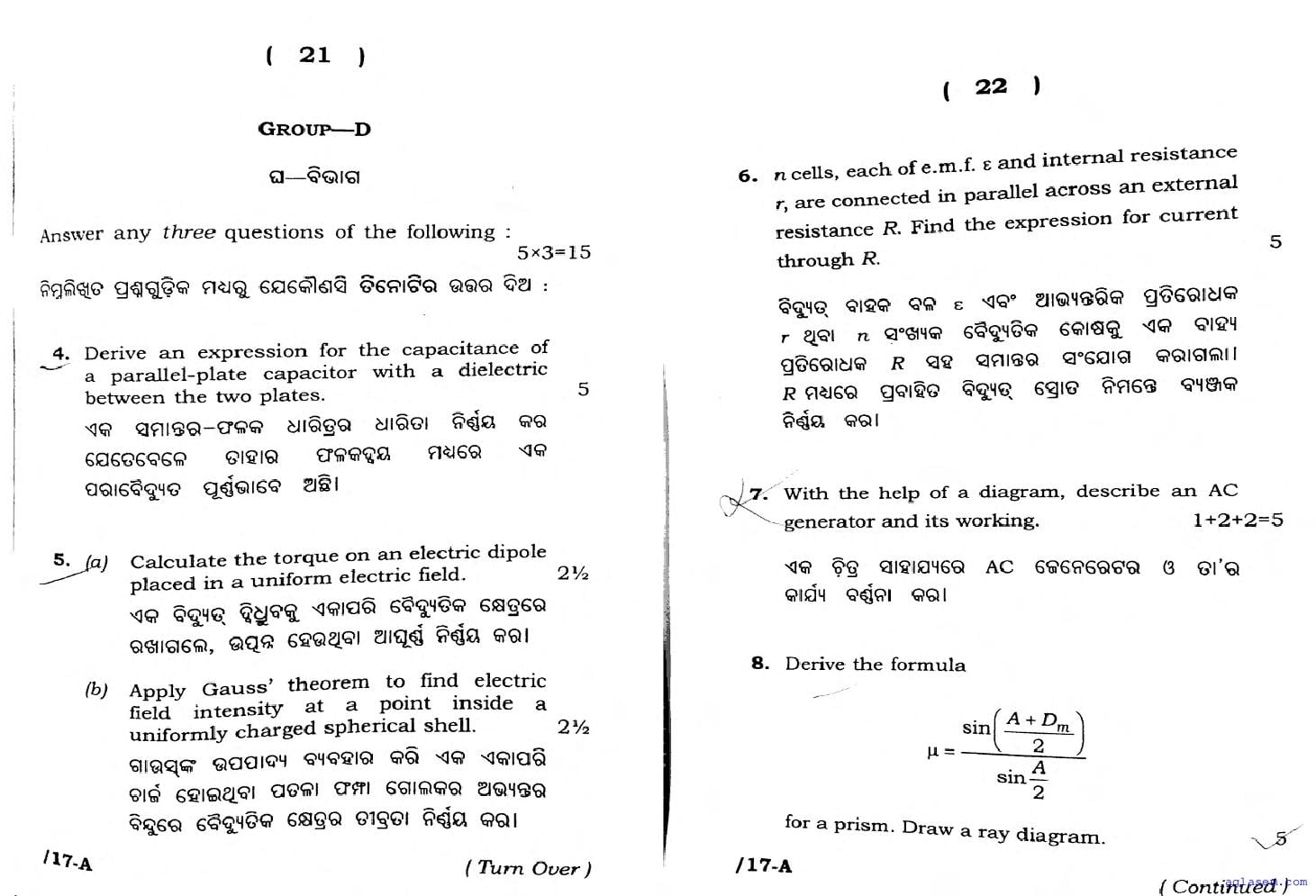| Educational Resource Here | Odisha Board Previous Year Question Paper of Class 12 Physics |